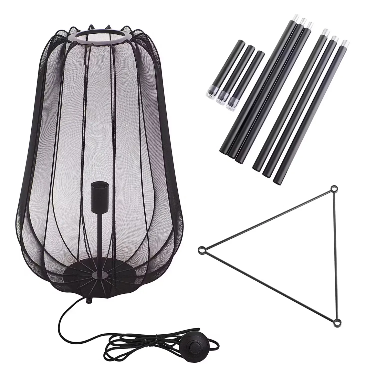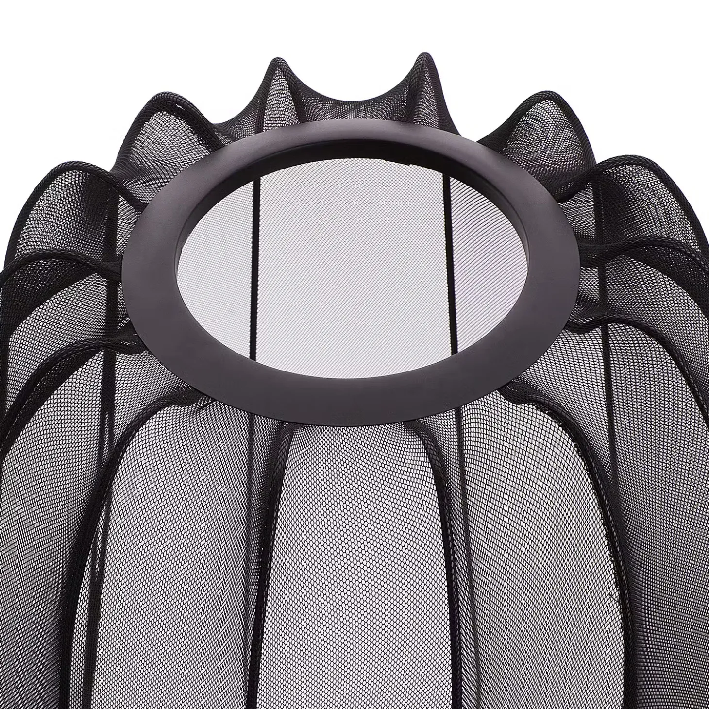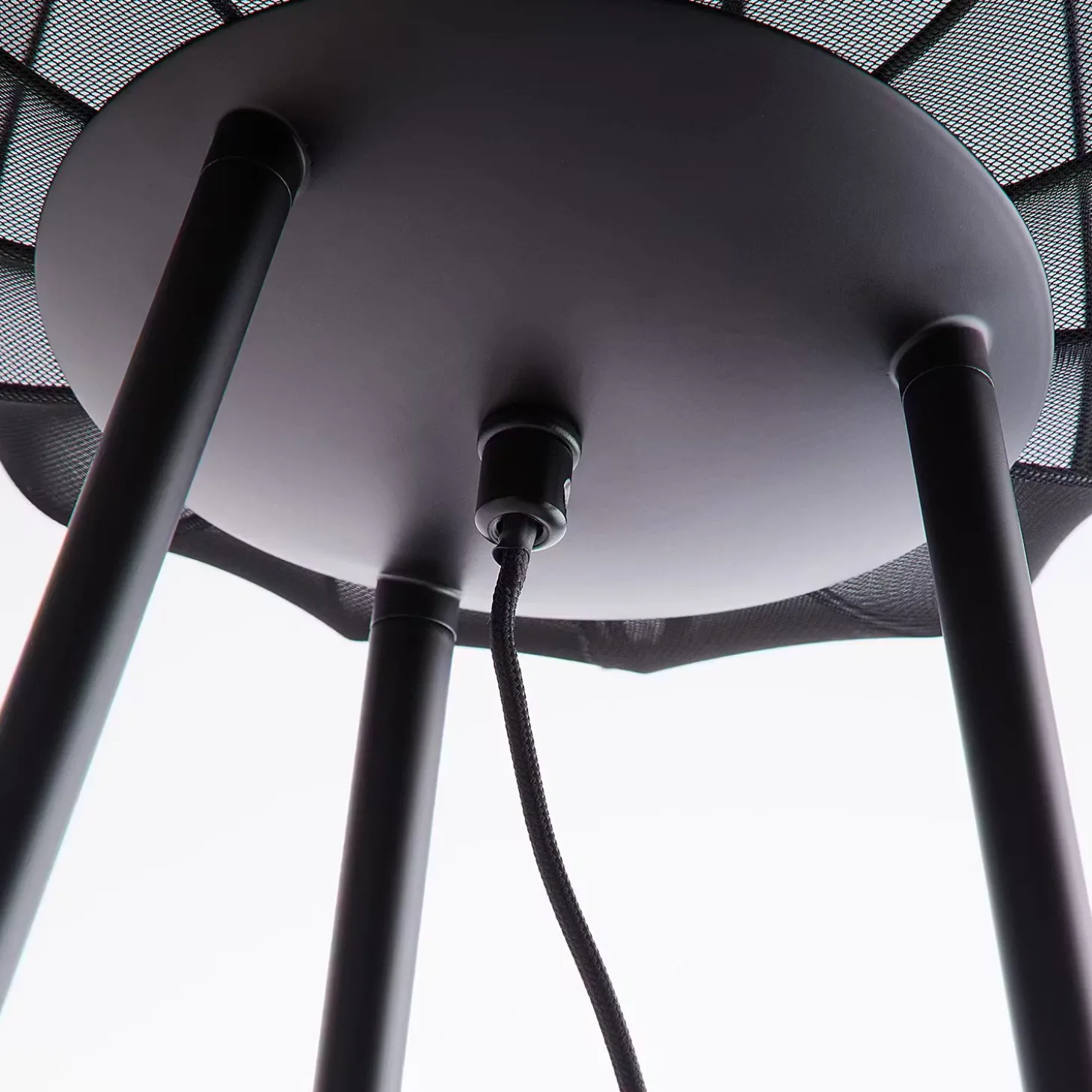 Ein Hauch von Extravaganz umgibt die moderne Amal Stehleuchte. Ihr hoher, geschwungener Schirm ist mit einem transparentem Netzgewebe überzogen und thront auf drei Beinen aus Eisen. Gerade diese Verbindung von exklusivem Design und hochwertiger Materialauswahl verleiht der Stehleuchte eine fast geheimnisvolle Ausstrahlung. In Creme und Schwarz erhältlich, auch als passende Tischleuchte und Hängeleuchte.