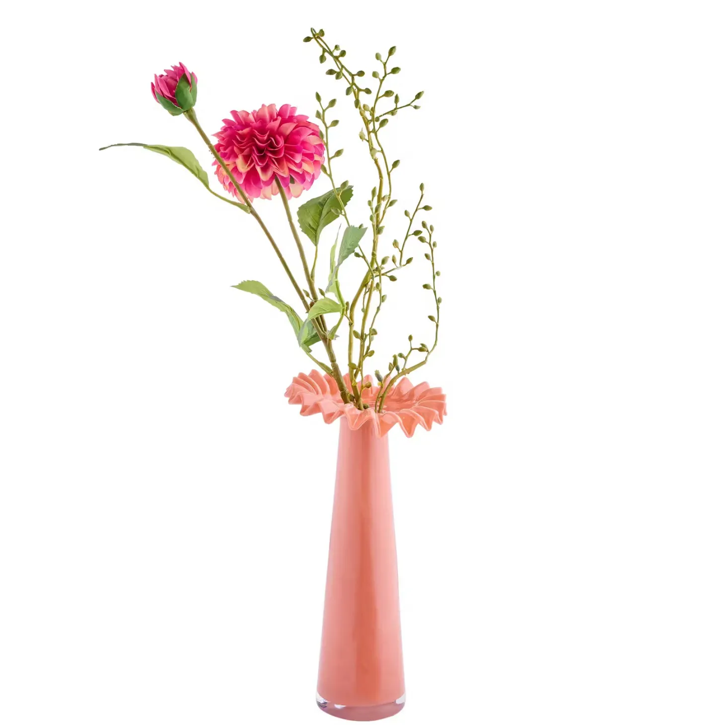 Anmutig wie eine zarte Blume präsentiert sich die Anemone Vase aus Glas. Ihr schmale, nach oben zulaufende Form wird getoppt von einem hübschen Kragen. Da braucht es nur noch ein paar Zweige und Bluten – und schon blüht deinem Zuhause ein schöner Blickfang. Erhältlich in zwei Varianten, ideal auch zum Kombinieren.