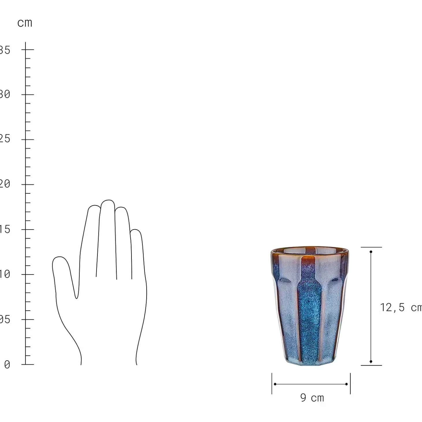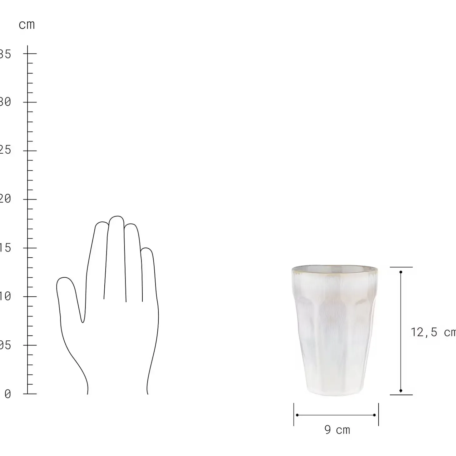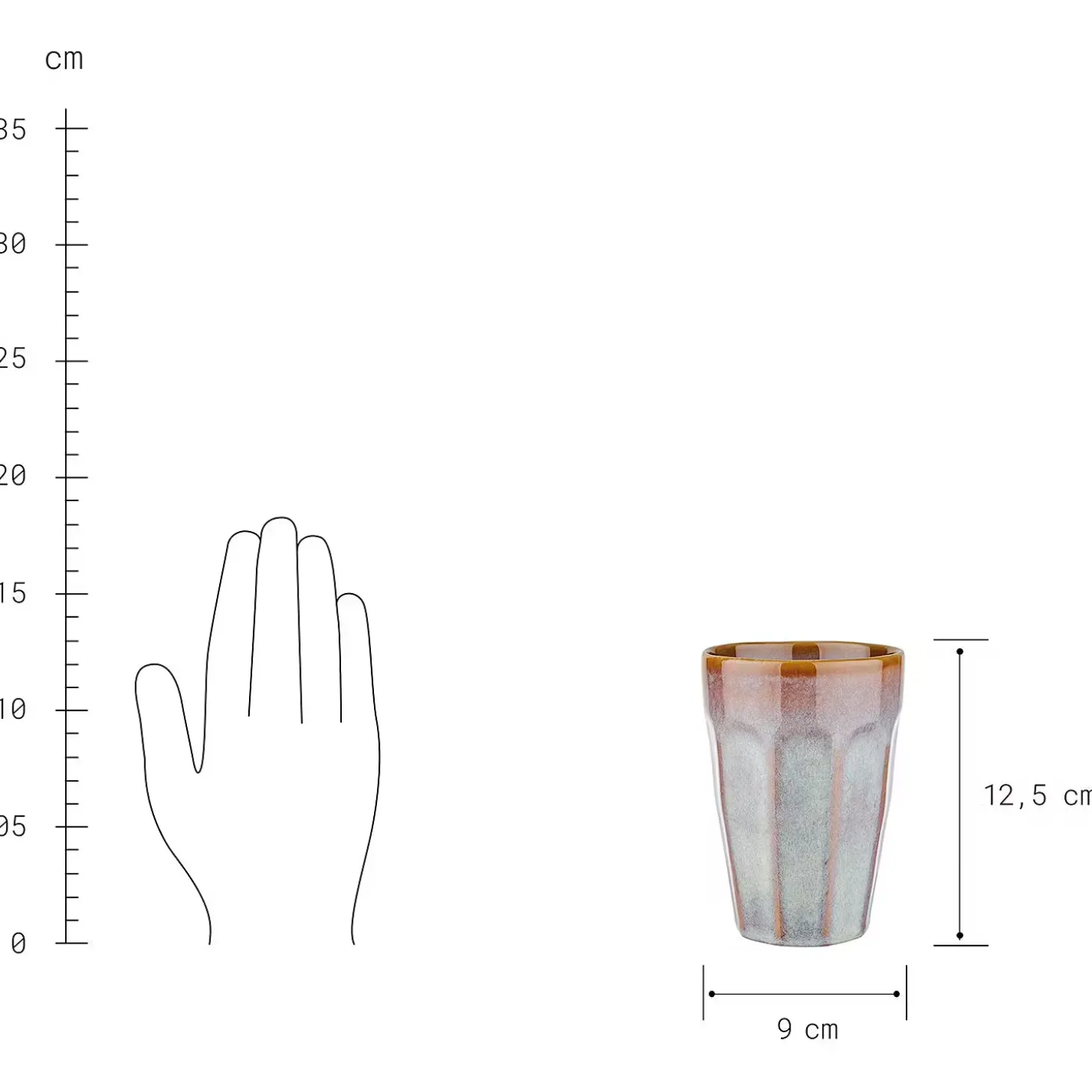 - Weitere Maße: Tasse ohne Henkel 330ml Ø9,5cm H13cm