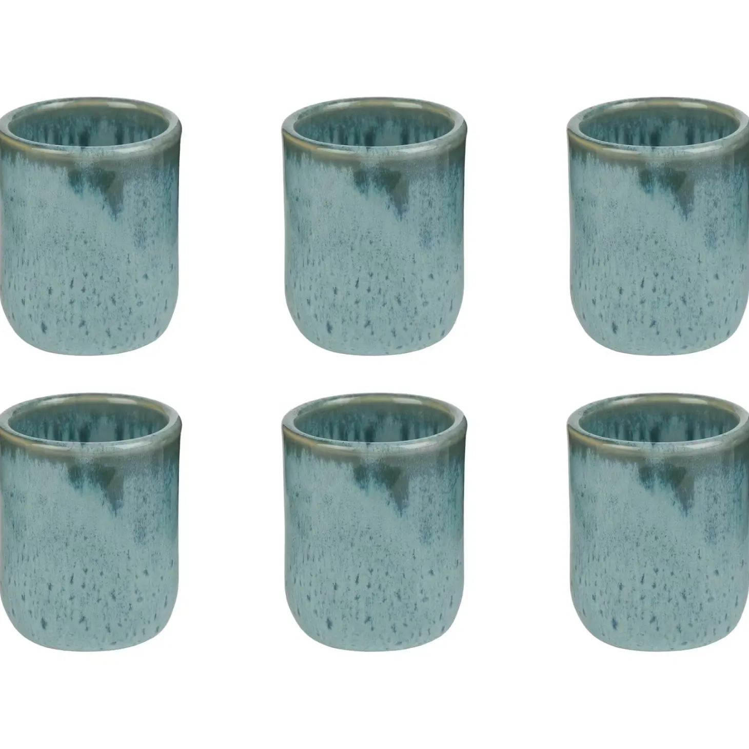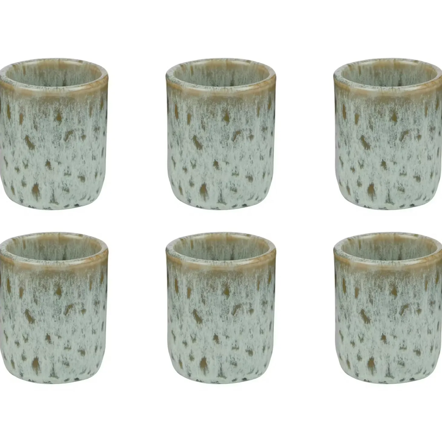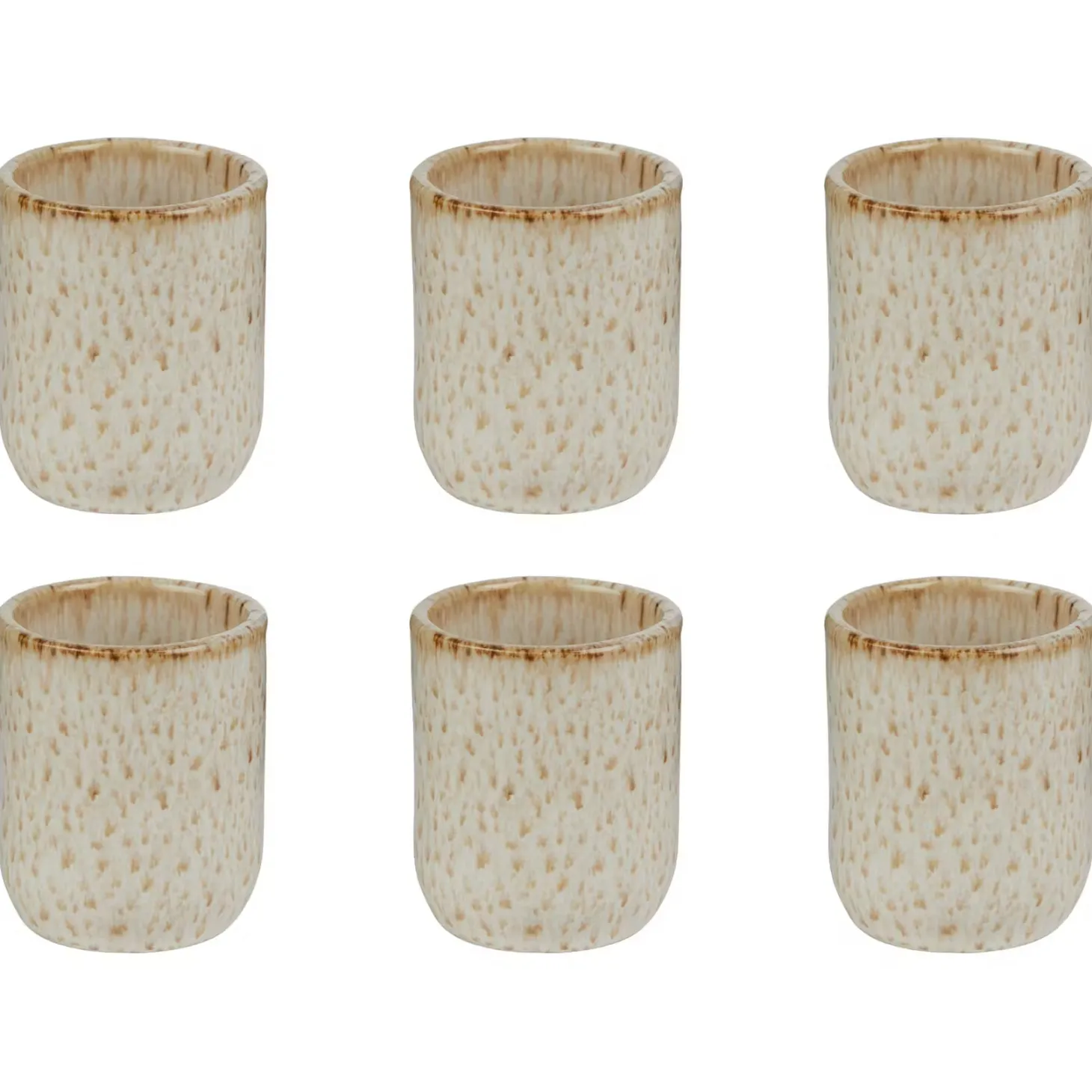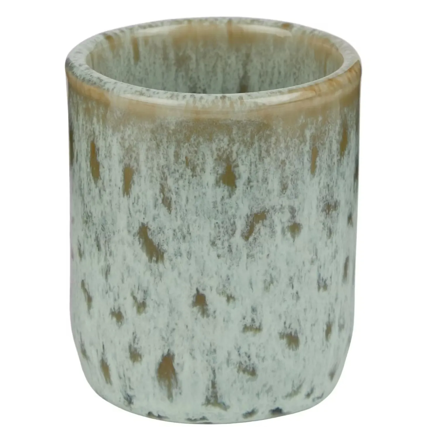 Bei der Bom Dia Espressotasse aus Steinzeug verbinden sich die reduzierte Form ohne Henkel und die gesprenkelte, organisch wirkende Glasur zu einem modernen, selbstbewussten Look. Damit passt die kleine Tasse auf den im natürlich Stil gedeckten Tisch, gerne auch in Kombination mit Naturmaterialien wie Holz, Korb und Rattan. In verschiedenen Farbvarianten erhältlich, zudem gibt es passende Tassen.