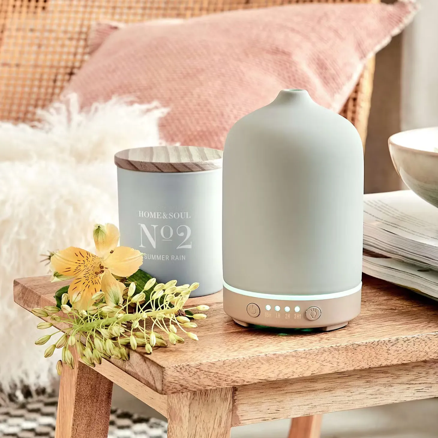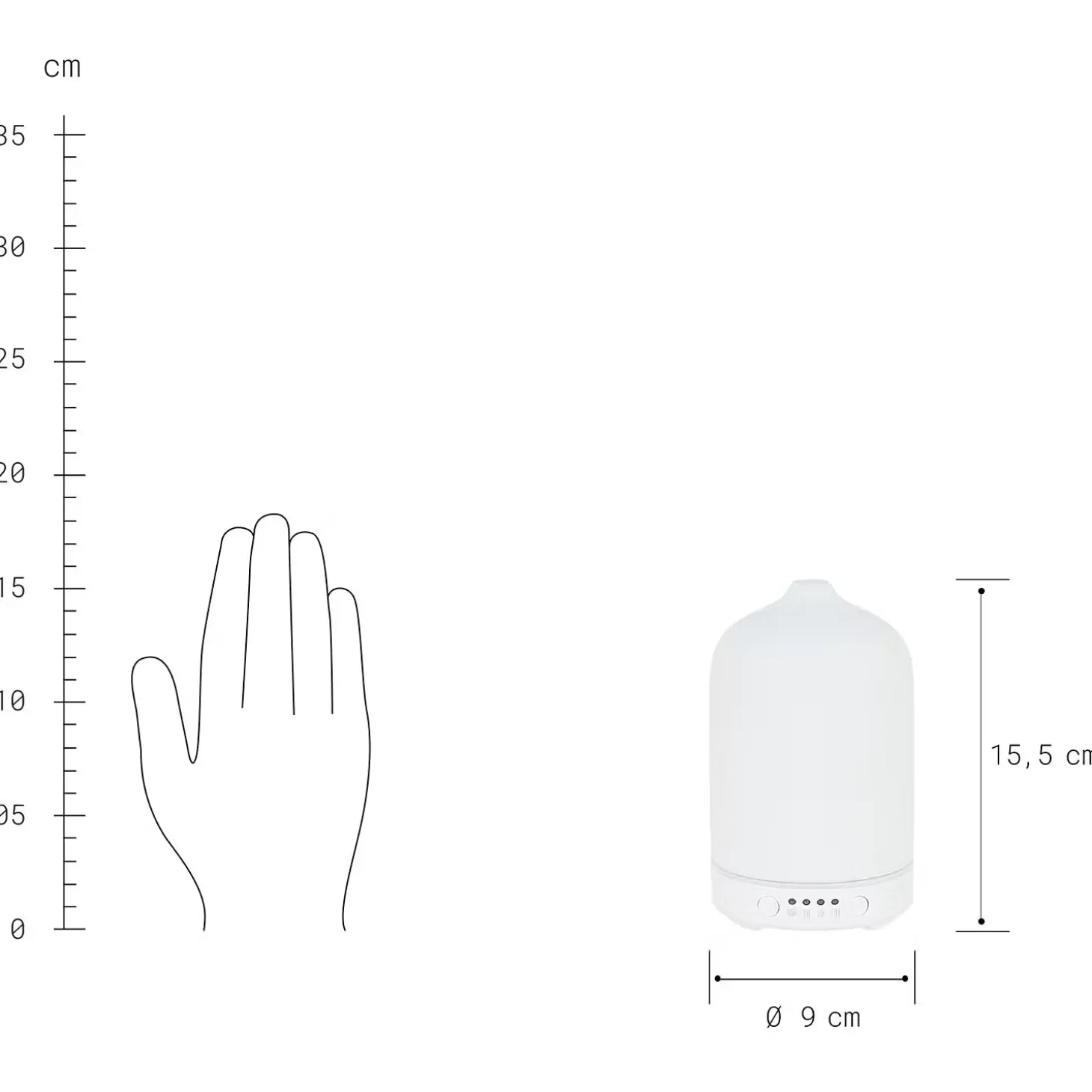 Der Cloud Nine Aroma Diffuser mit Keramikabdeckung eignet sich hervorragend, um Ihr Zuhause mit einem verwöhnenden Duft nach ätherischen Ölen zu erfüllen. Einfach den Wassertank bis zur Markierung befüllen, einige Tropfen des gewünschten Aroma-Öls dazugeben, den Diffusor starten und sich von dem angenehmen Duft verzaubern lassen. Um das Verwöhn-Erlebnis noch vollkommener zu gestalten, schalten Sie einfach die Lichtfunktion ein. Über die sieben einstellbaren LED-Farben kreieren Sie die perfekte Wohlfühlatmosphäre.