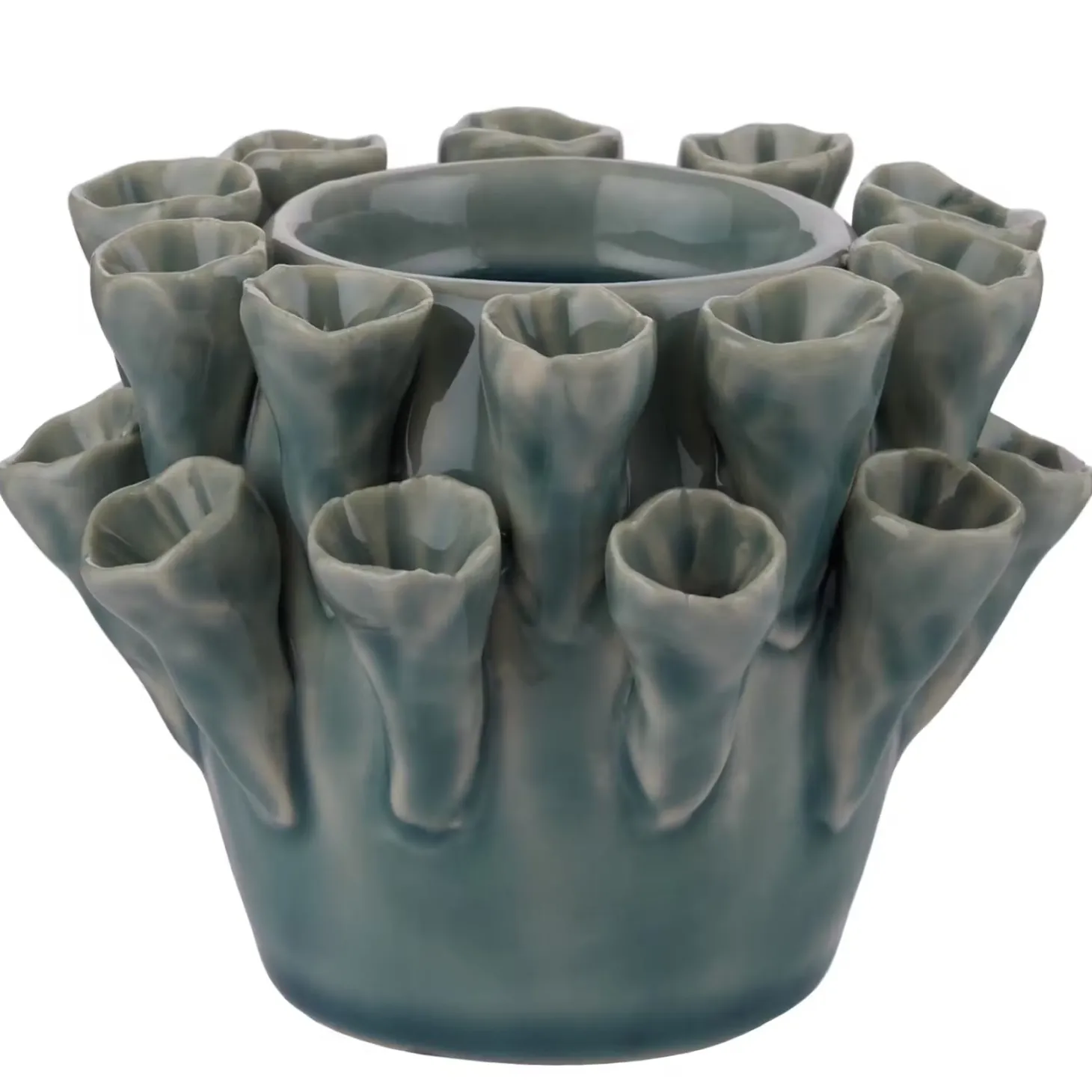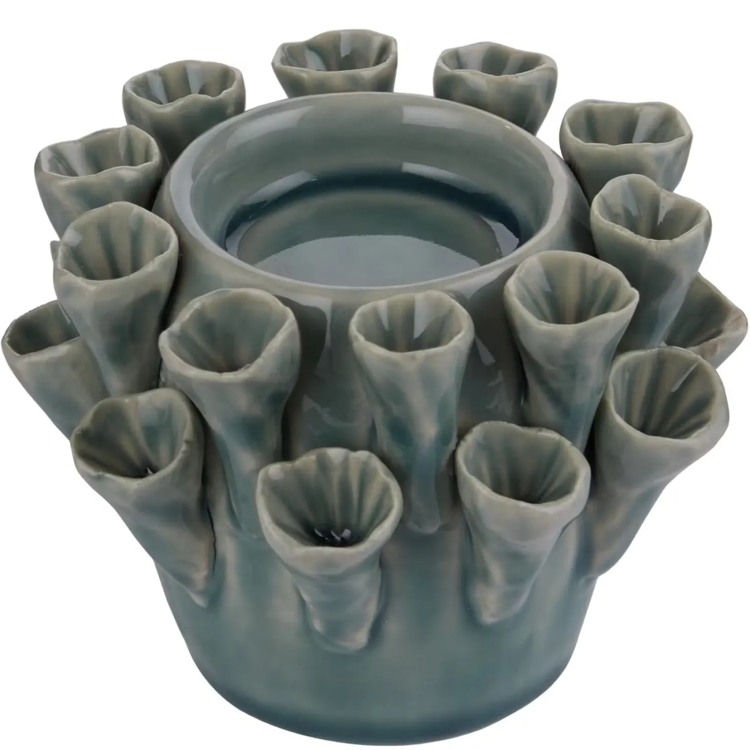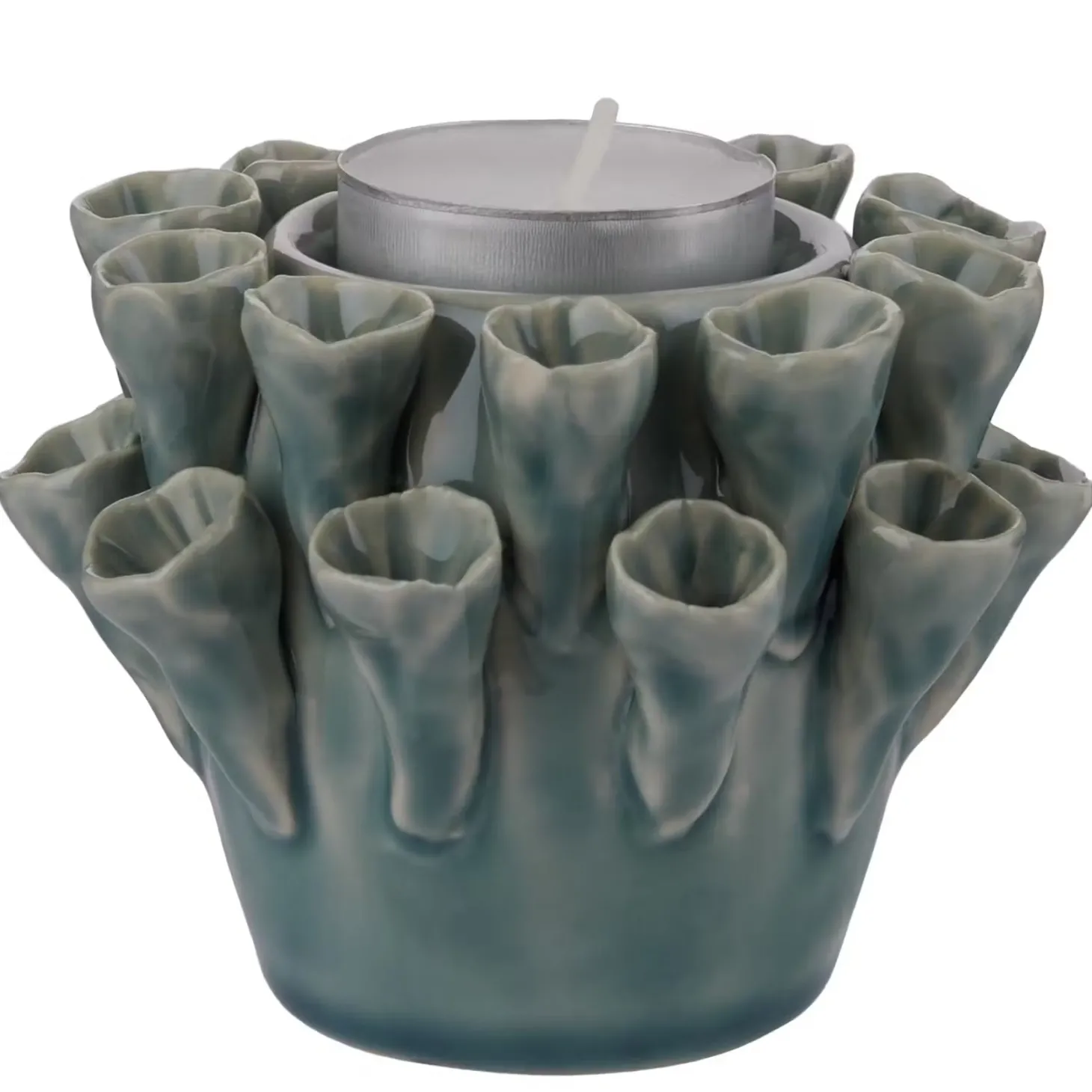 Inspiriert von maritimen Formen aus der Unterwasserwelt ist der Coral Keramik Teelichthalter aus Steinzeug. Sein organisches Design und der schöne Petrol-Ton machen den Teelichthalter zu einem spannenden Deko-Objekt, etwa für den gedeckten Tisch oder deinen Wohnbereich.