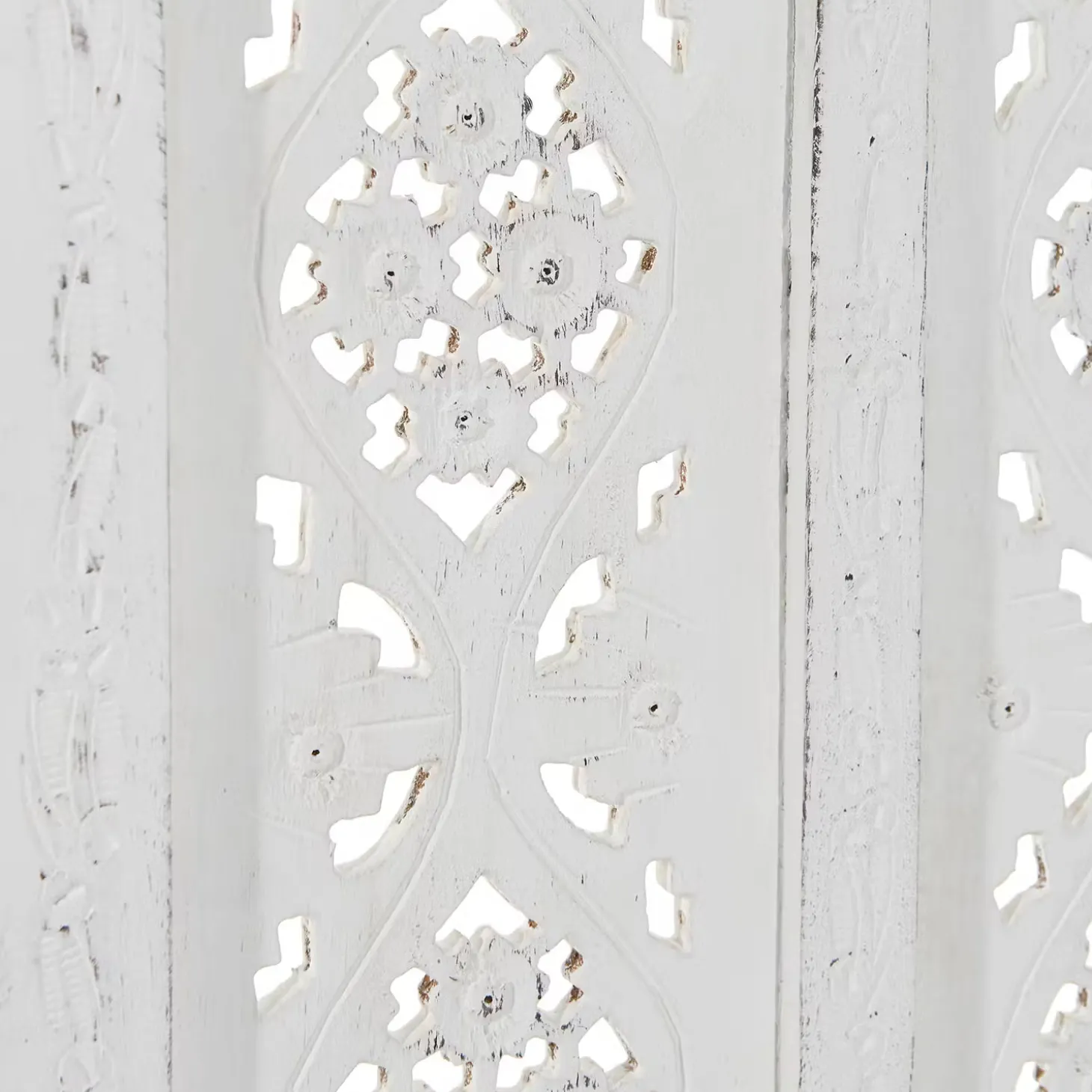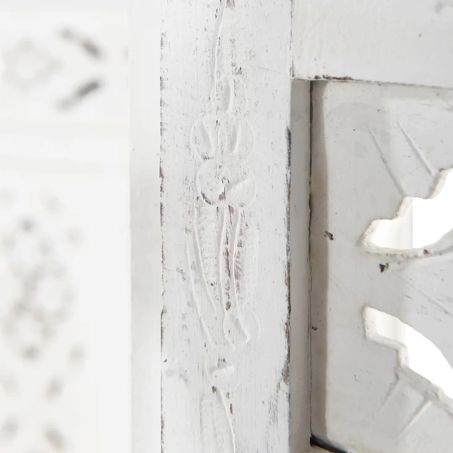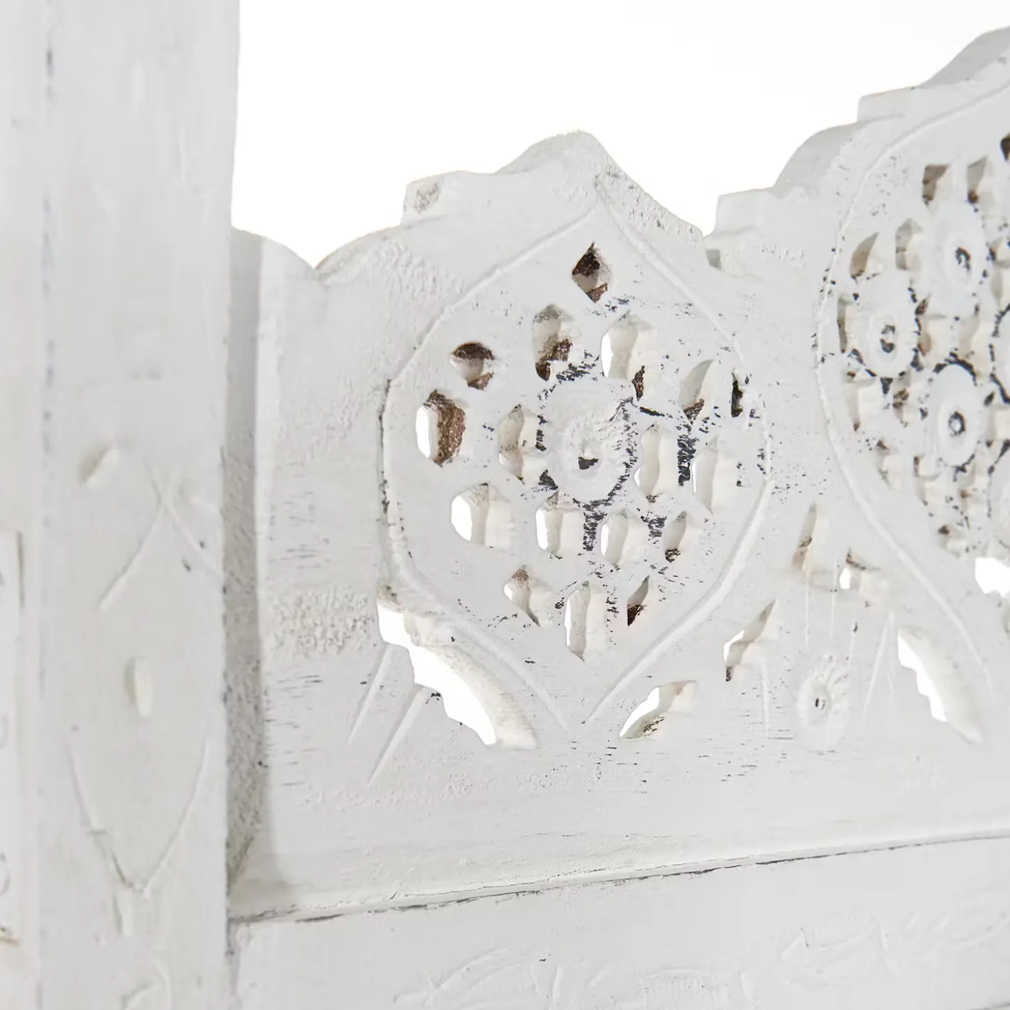 Als stamme er aus einer spanischen Finca, einer italienischen Villa oder einer portugiesischen Posada: Unser weißer Estella-Paravent mit femininen Ornamenten versehen, präsentiert sich charmant nostalgisch und aufwändig gearbeitet. Mit Liebe für das Detail. Denn er wurde von Hand gefertigt und bemalt. Ob als Raumteiler, als Sichtschutz oder Dekoelement: Der Paravent im Vintage-Look ist vielseitig nutzbar und weist zu dem einen modernen Shabby-Chic-Stil auf.