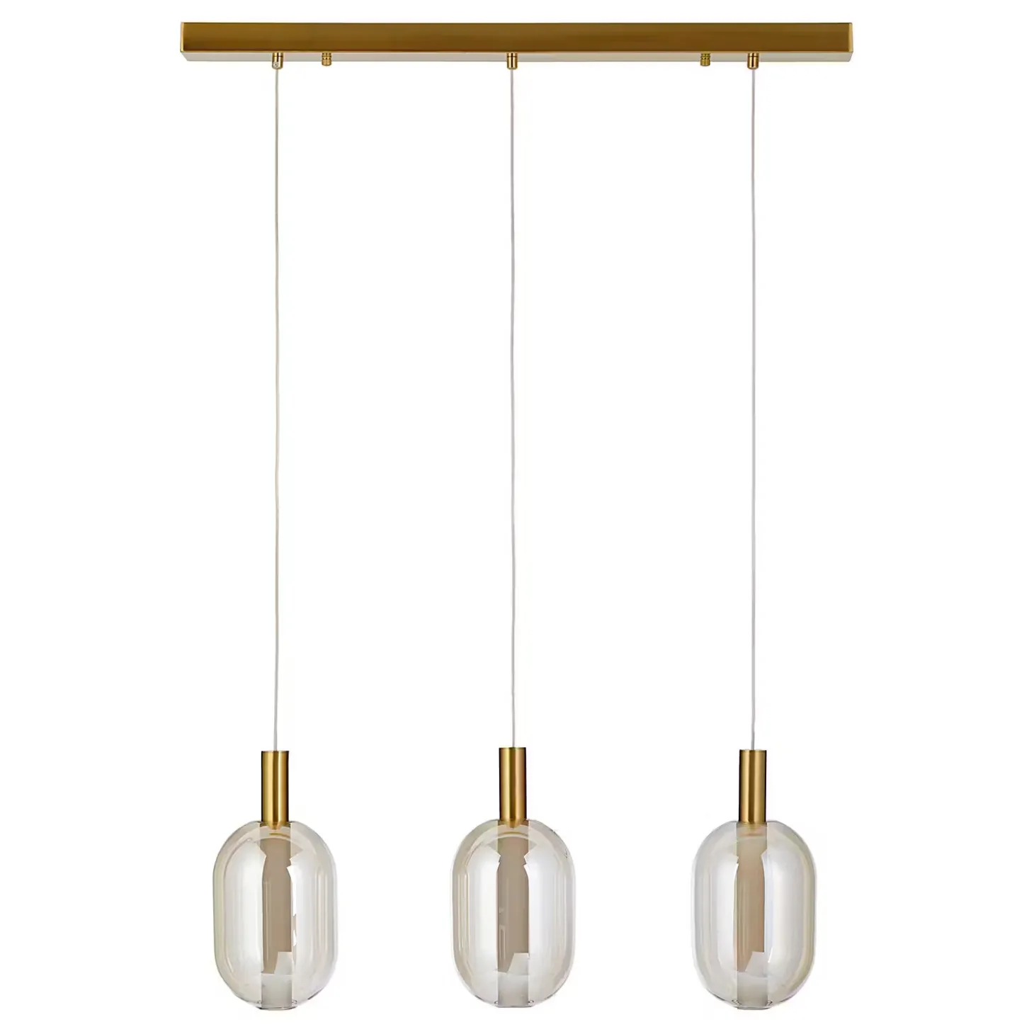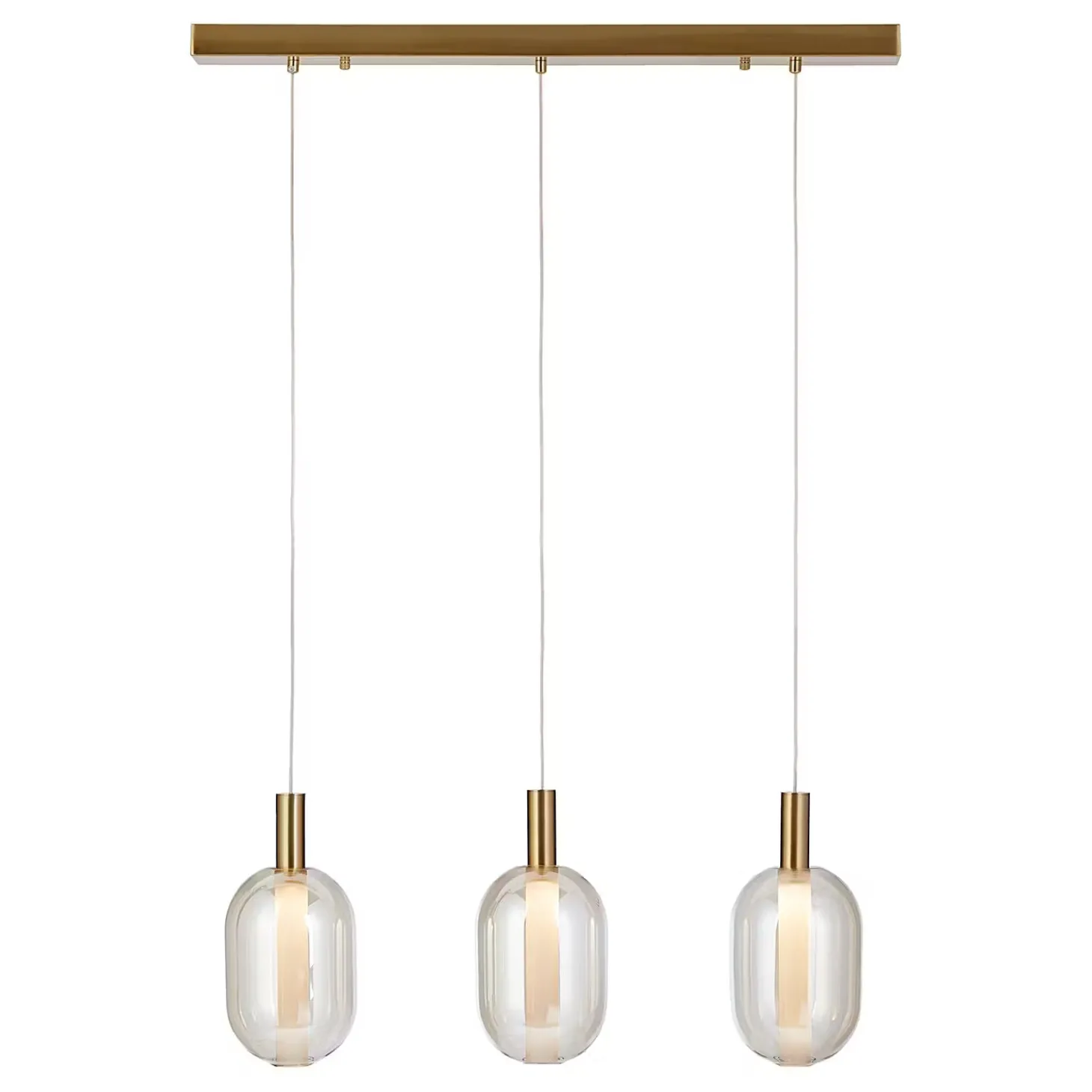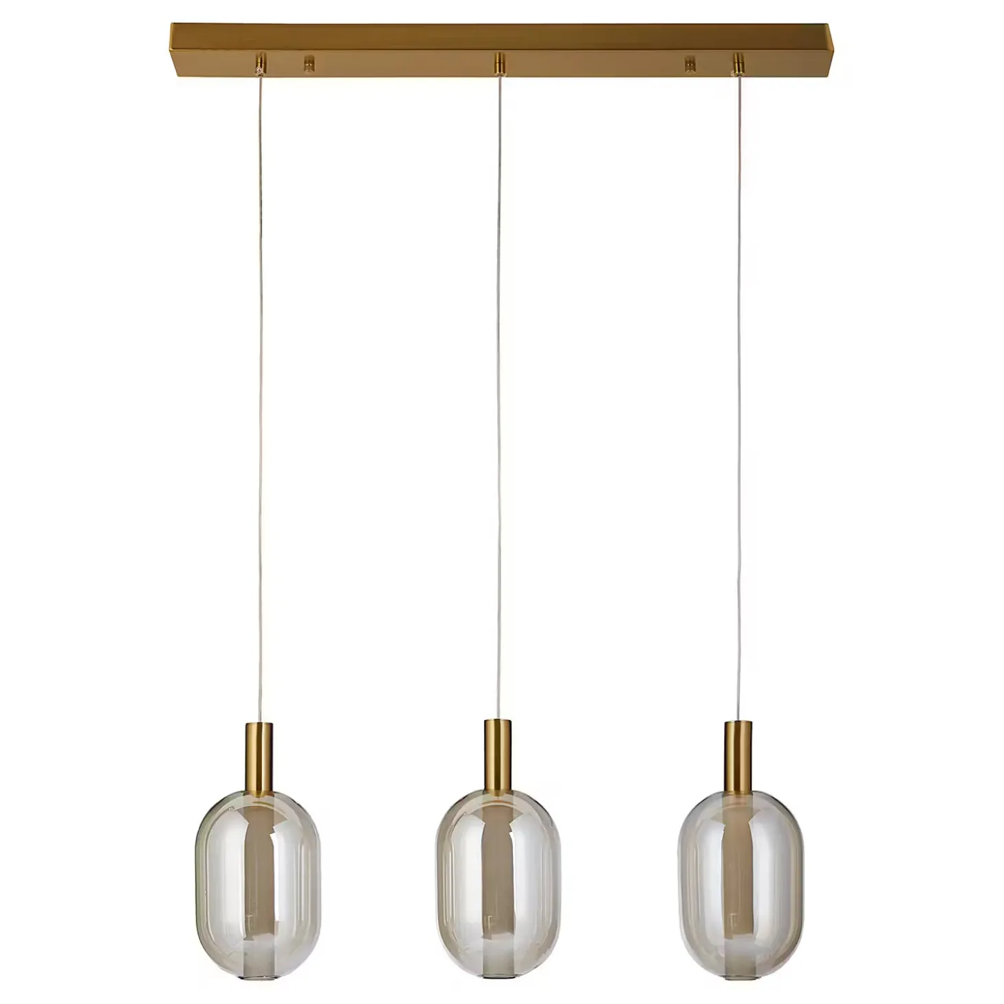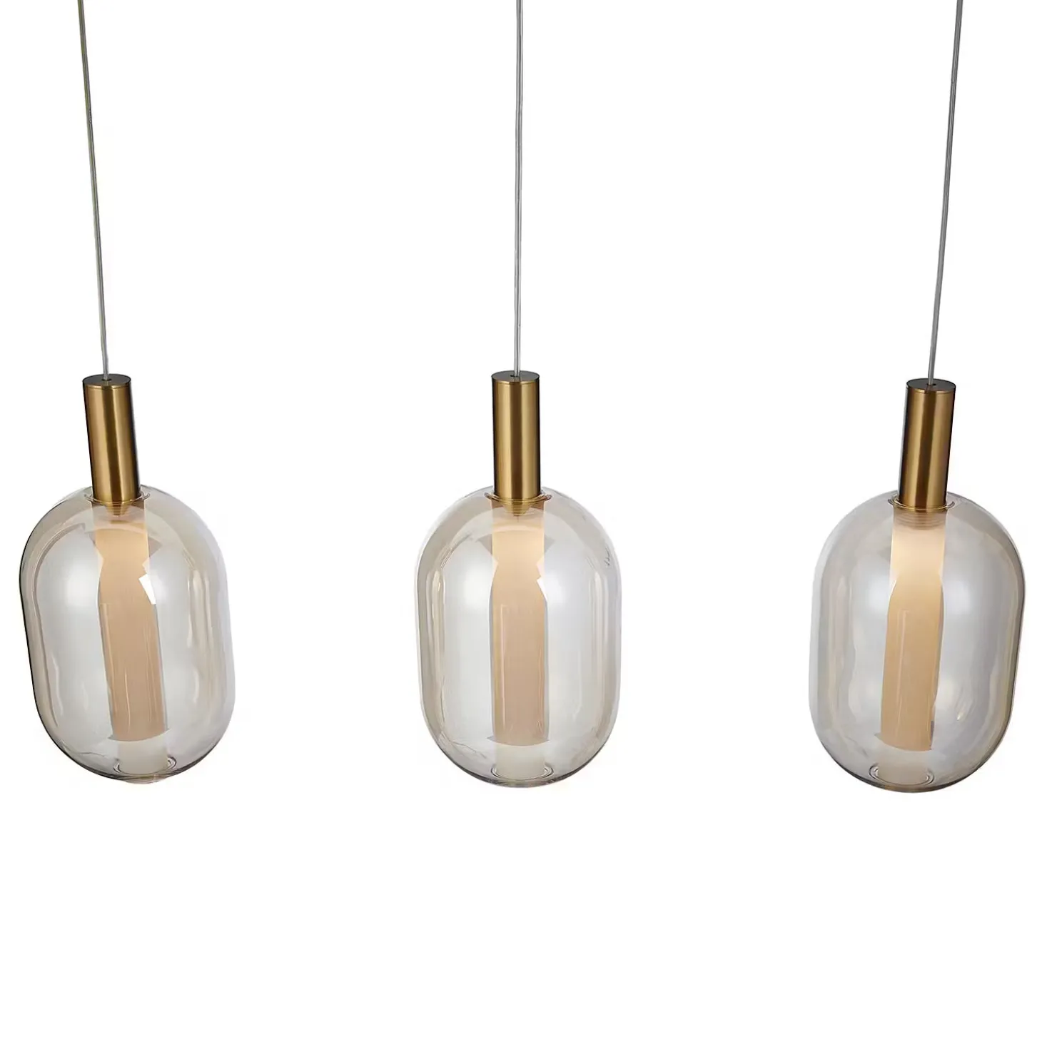 Die Exemplar Pendelleuchte 3-flammig gold hat es in sich: In die Glaskugeln sind stabförmige Leuchtmittel integriert, die optisch nach oben durch eine goldfarbene Aufhängung verlängert werden. So reduziert dieses Design auch ist, so maximal ist doch der Effekt, vor allem durch die goldfarbenen Akzente. So ergänzt du deine moderne Einrichtung stilsicher um einen eleganten Blickfang. In verschiedenen Varianten erhältlich.