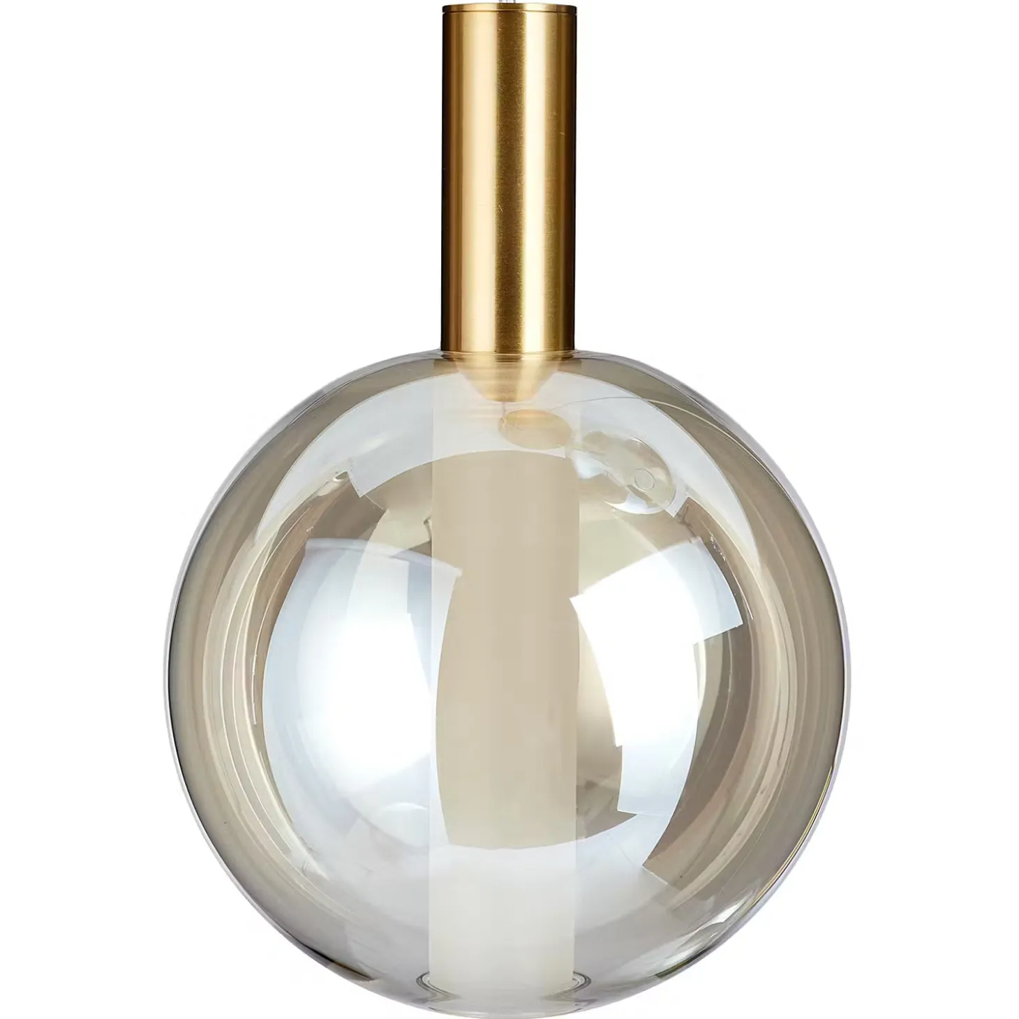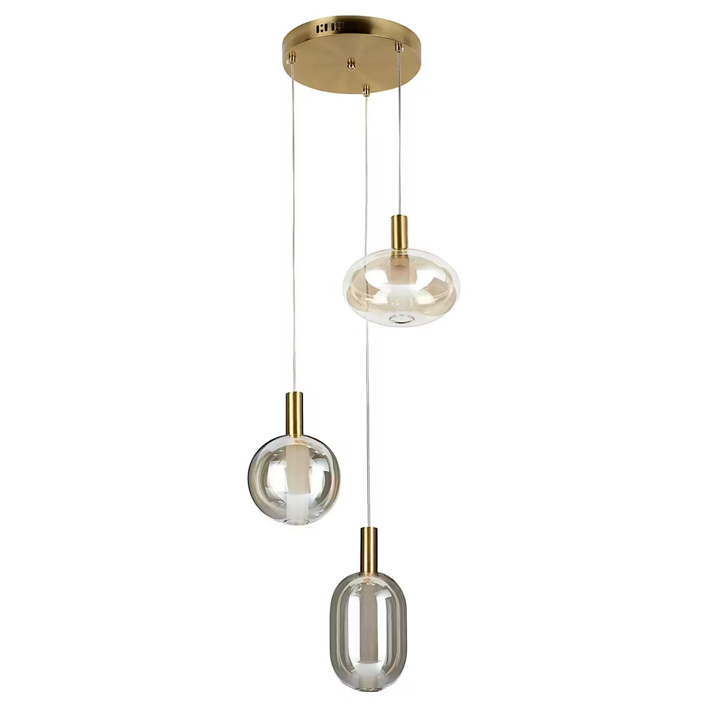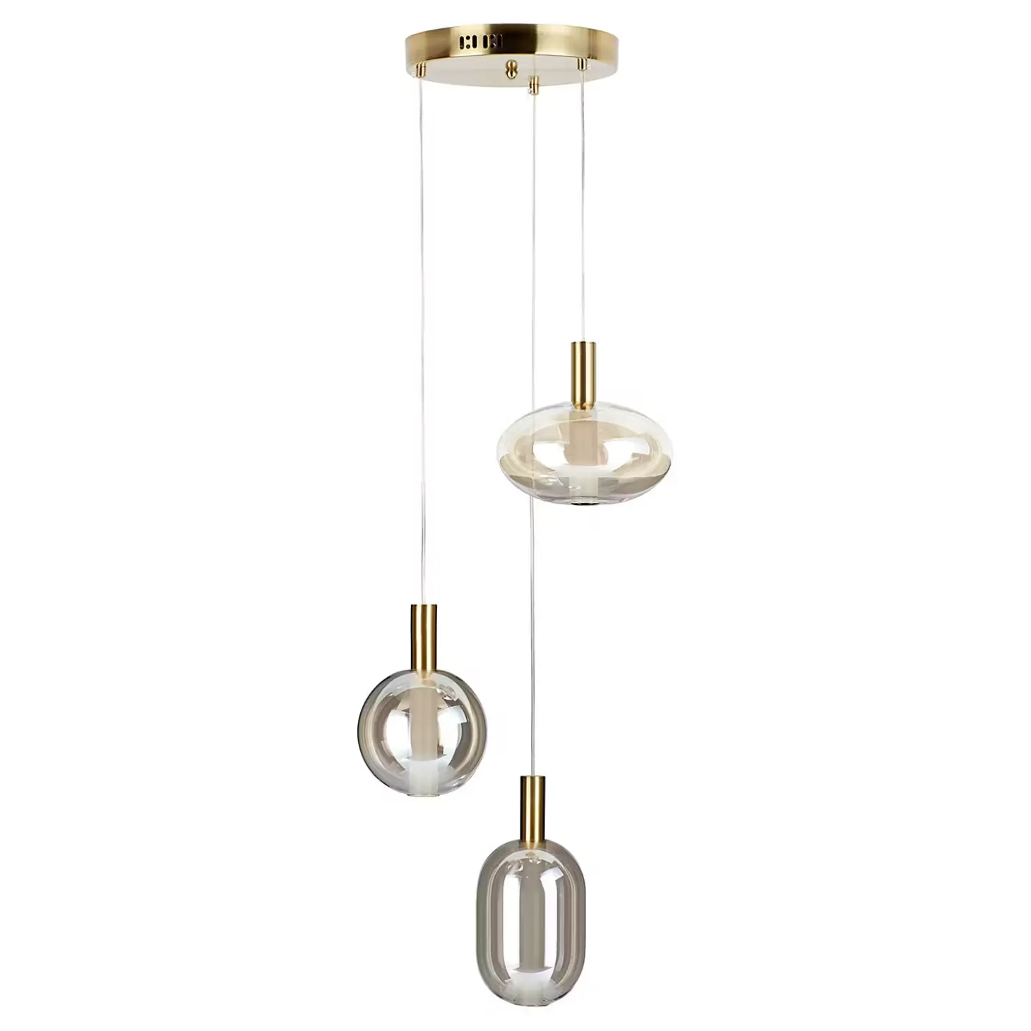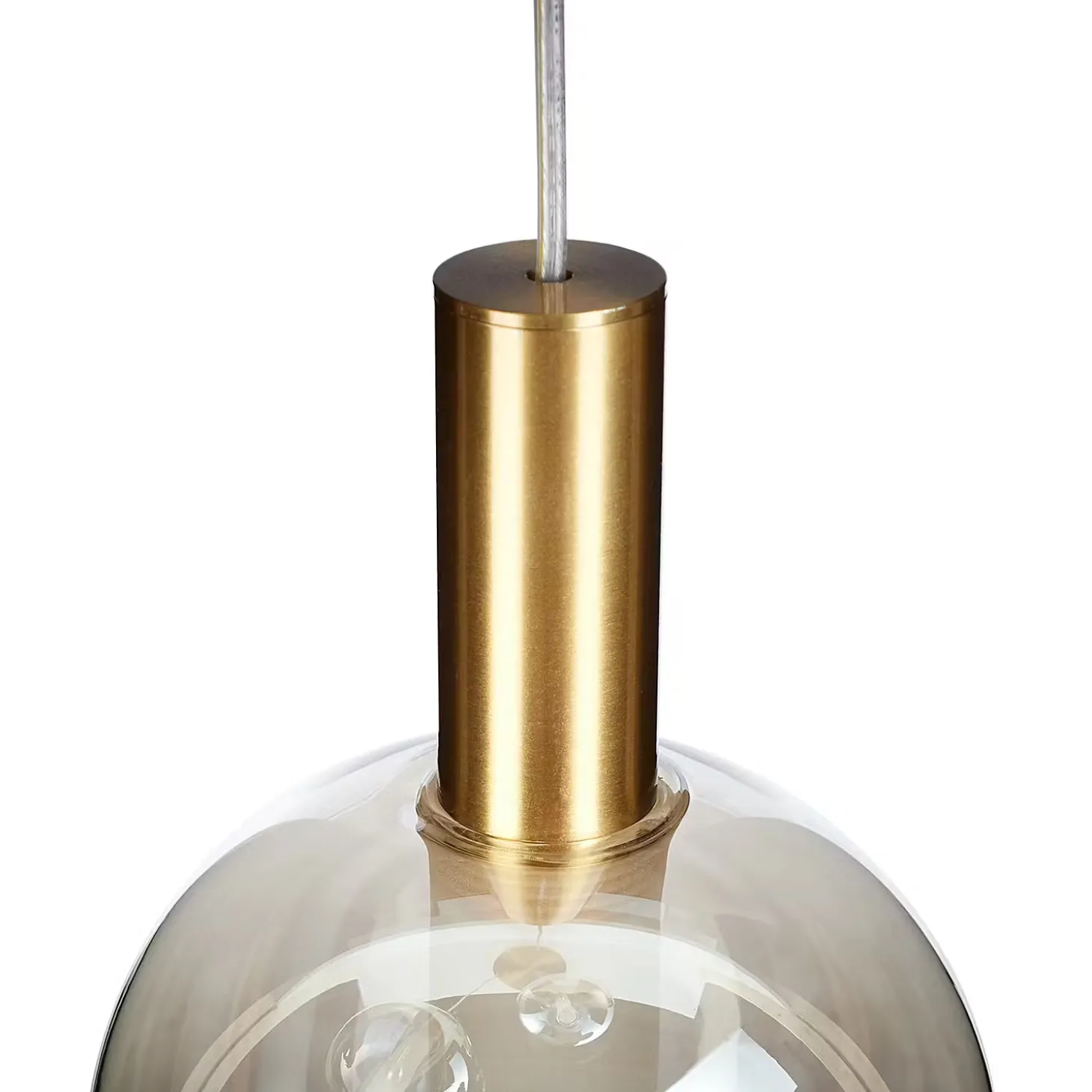 Die Exemplar Pendelleuchte 3-flammig rund hat es in sich: In die Glaskugeln sind stabförmige Leuchtmittel integriert, die optisch nach oben durch eine goldfarbene Aufhängung verlängert werden. So reduziert dieses Design auch ist, so maximal ist doch der Effekt, vor allem durch die goldfarbenen Akzente. So ergänzt du deine moderne Einrichtung stilsicher um einen eleganten Blickfang. In verschiedenen Varianten erhältlich.