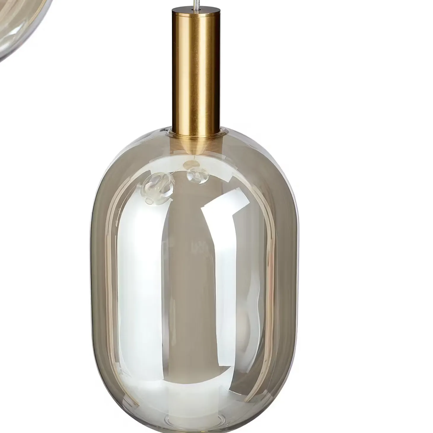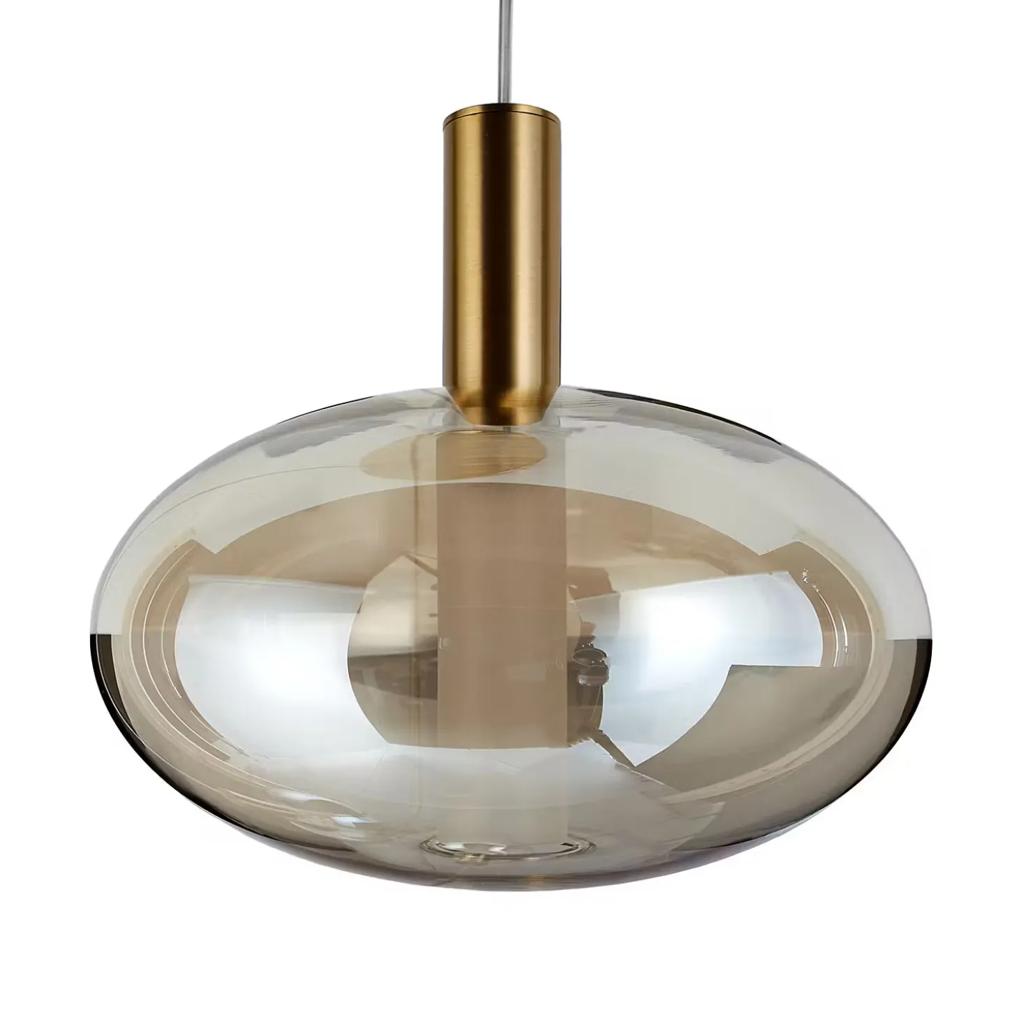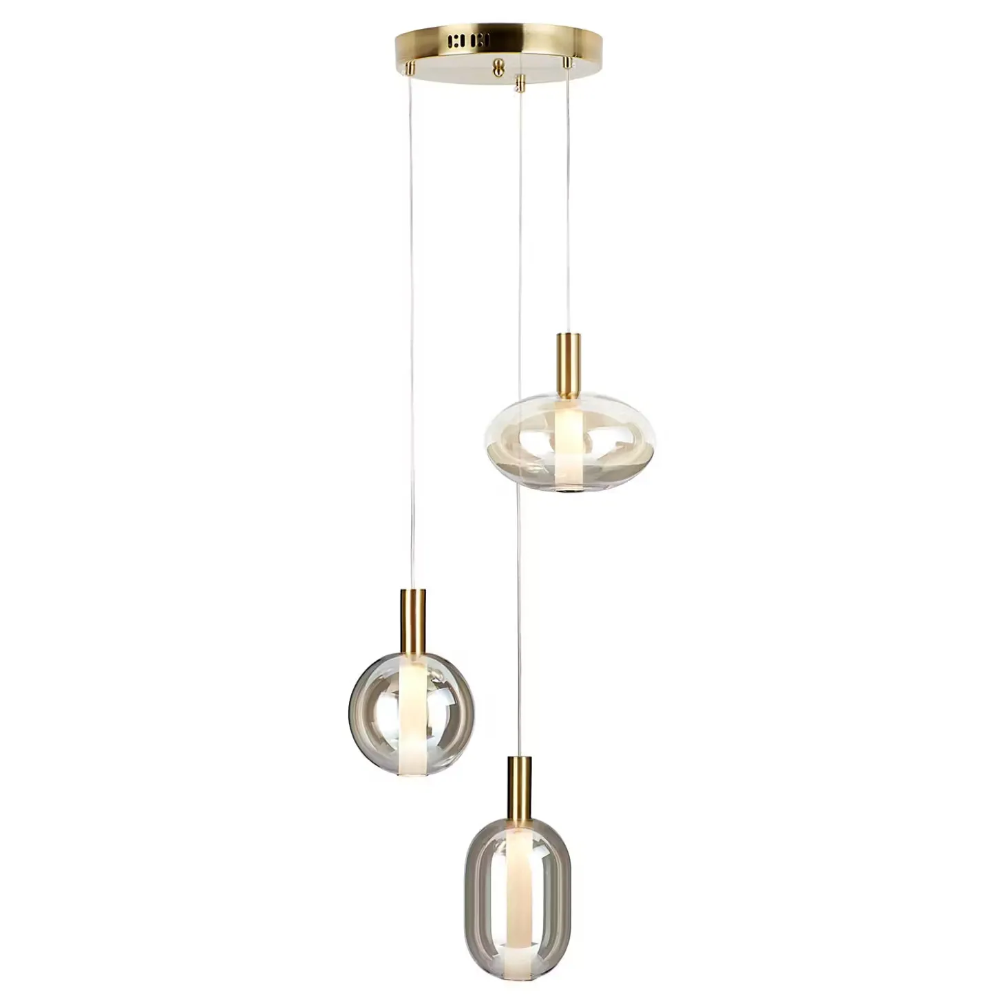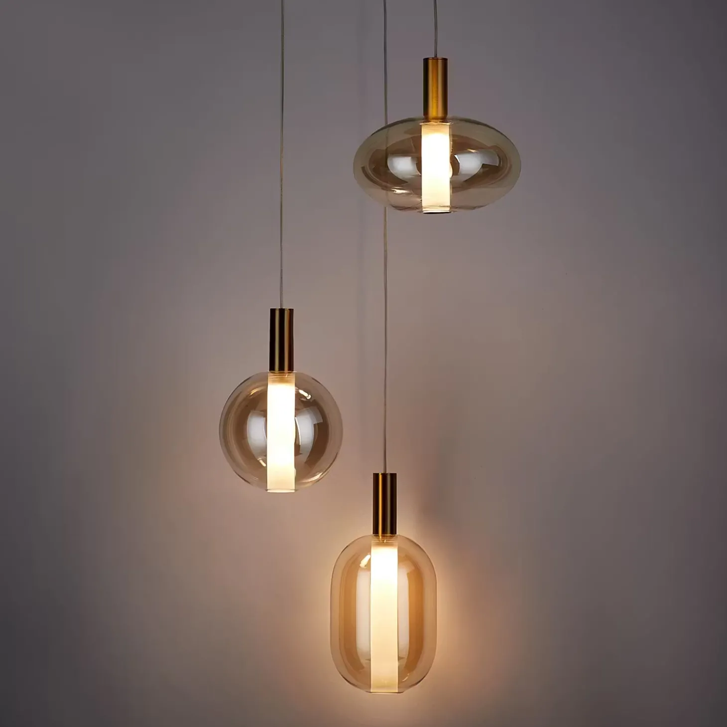 Die Exemplar Pendelleuchte 3-flammig rund hat es in sich: In die Glaskugeln sind stabförmige Leuchtmittel integriert, die optisch nach oben durch eine goldfarbene Aufhängung verlängert werden. So reduziert dieses Design auch ist, so maximal ist doch der Effekt, vor allem durch die goldfarbenen Akzente. So ergänzt du deine moderne Einrichtung stilsicher um einen eleganten Blickfang. In verschiedenen Varianten erhältlich.