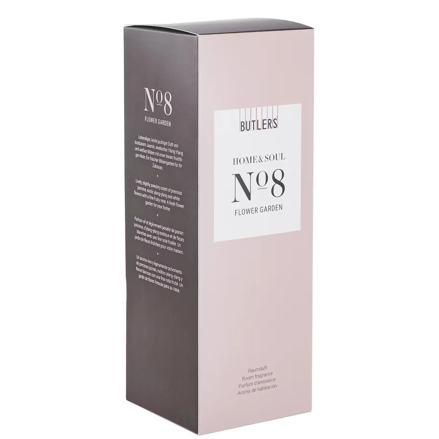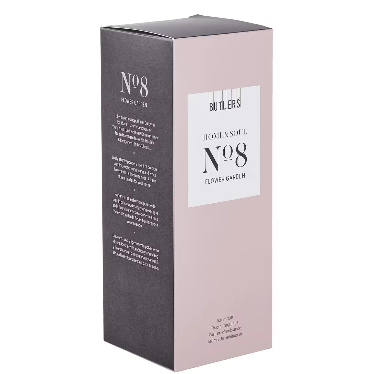 „Blume der Blumen“ heißt Ylang-Ylang auf Indonesisch. In dem Home & Soul Raumduft Flower Garden sind es diese exotischen Blüten, gepaart mit knackigem Rhabarber und fruchtigen Noten von Apfel und Pfirsich, die Ihr Zuhause in einen frischen Blütengarten verwandeln. In einer weiteren Größe erhältlich. Verschiedene Dufterlebnisse hat Butlers für Sie in Raumdüften der Home & Soul Serie eingefangen. In der französischen Parfümstadt Grasse aufwändig komponiert und in Deutschland sorgfältig hergestellt, erfüllen die Flakons Ihr Zuhause mit einem sinnlichen Hauch – von aromatisch frisch bis blumig, von belebend-würzig bis betörend.