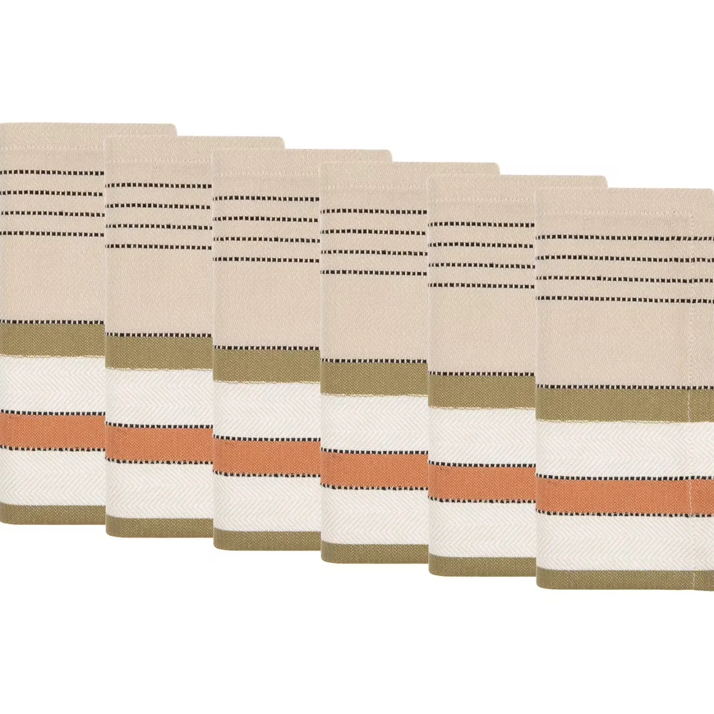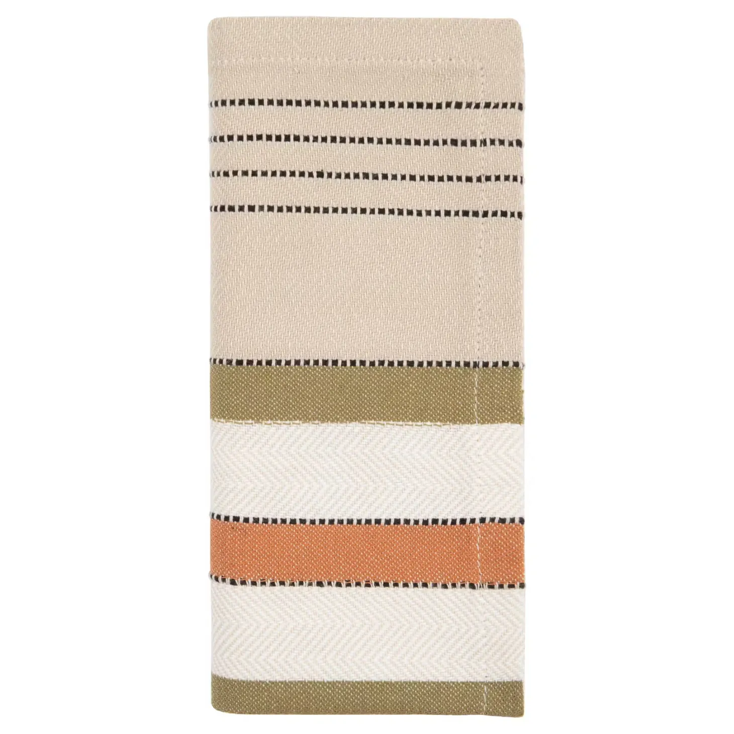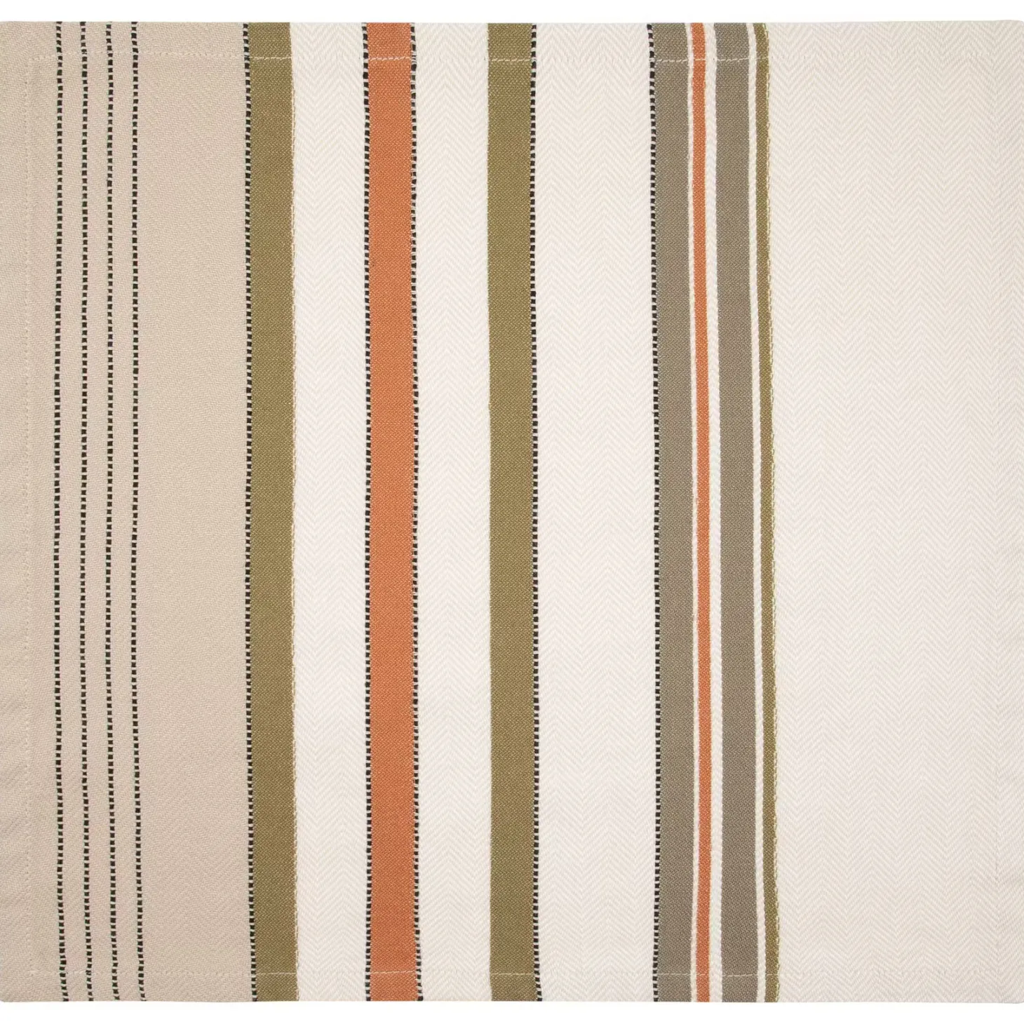 Ein gewebtes Streifenmuster und harmonische Creme-, Grün- und Orangetöne zeichnen die modernen Inner Stoffservietten 41 x 41 cm aus. Diese hochwertige Tischwäsche ist aus reiner Baumwolle gefertigt und alltagstauglich, da sie bei 30 Grad in der Maschine gewaschen werden kann. So kannst du mit der Inner Tischdecke dein tägliches Abendessen und ebenso dein Sonntagsfrühstück wohnlich aufwerten. Aus der Inner-Serie sind Tischdecken in weiteren Größen, Tischläufer und Servietten erhältlich.