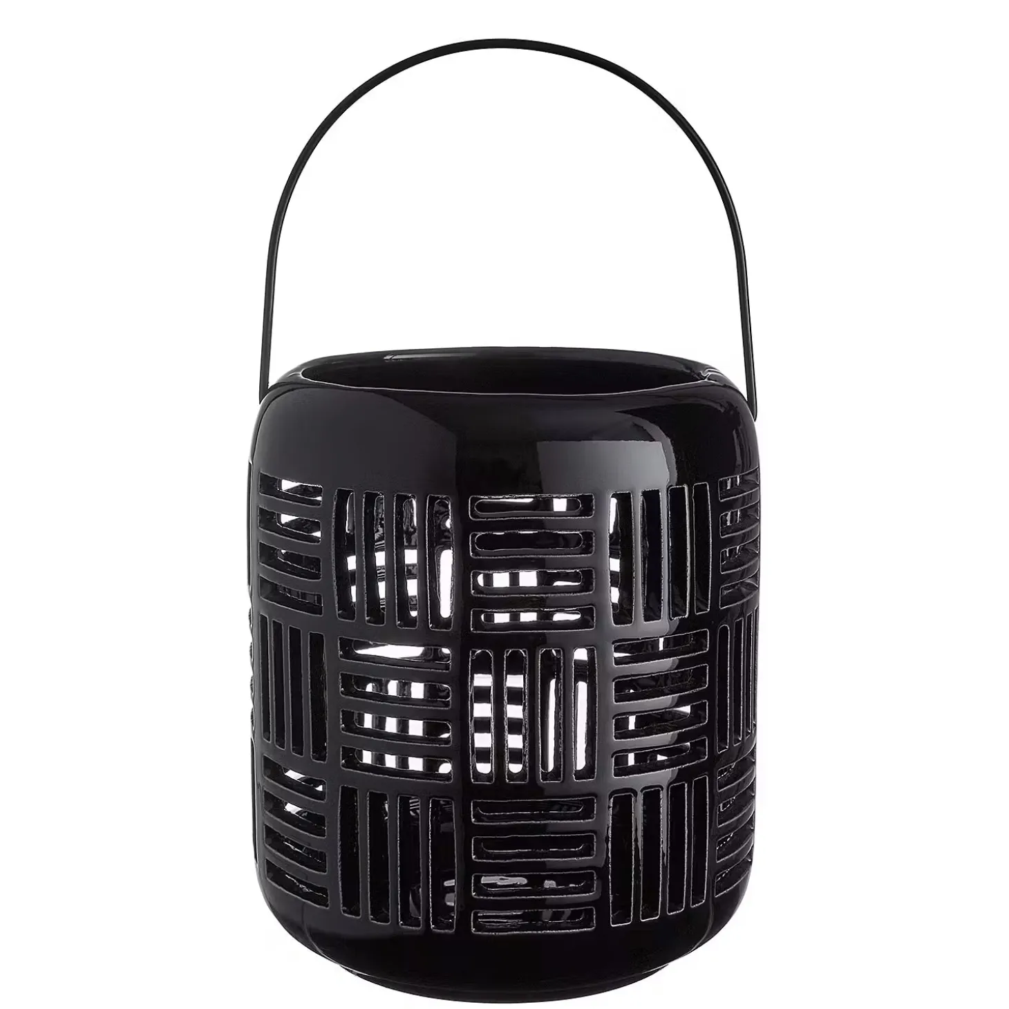 Schlichtes japanisches Design trifft den lässigen Skandi-Look bei der Japandi Keramik Laterne aus schwarzem Steinzeug. Ihr geometrisches Muster lässt das Kerzenlicht schön durchschimmern, wodurch eine stimmungsvolle Beleuchtung entsteht. Ideal, um mit sanftem Licht Akzente zu setzen oder die gedeckte Tafel effektvoll zu erhellen.