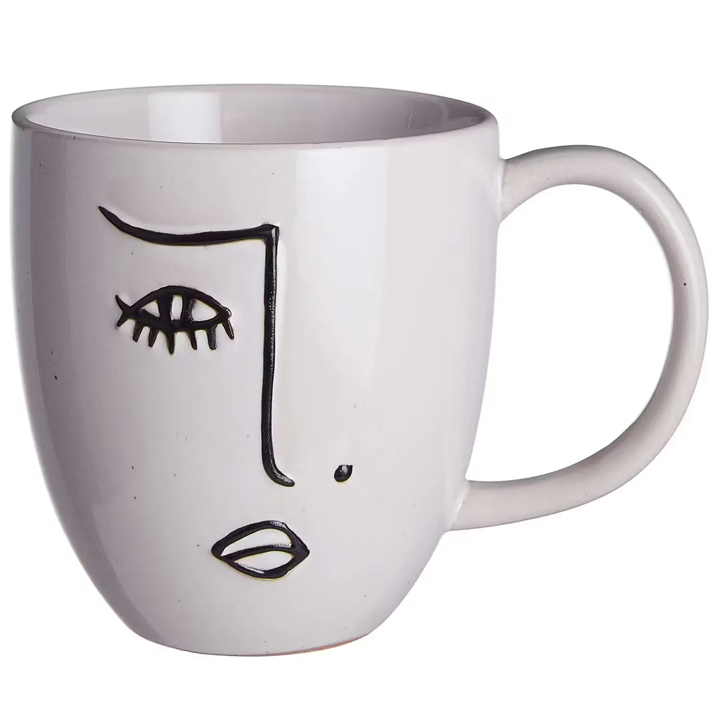 Trendig trinken: Die Line Art Tasse mit Gesicht aus Steinzeug greift das angesagte Line Art Design auf. Dank klassischem Schwarz-Weiß und minimalistischem Look ist die moderne Tasse leicht zu kombinieren, zum Beispiel mit Geschirr mit reaktiver Glasur. So bringen Sie ganz einfach immer wieder Abwechslung auf den gedeckten Tisch.
