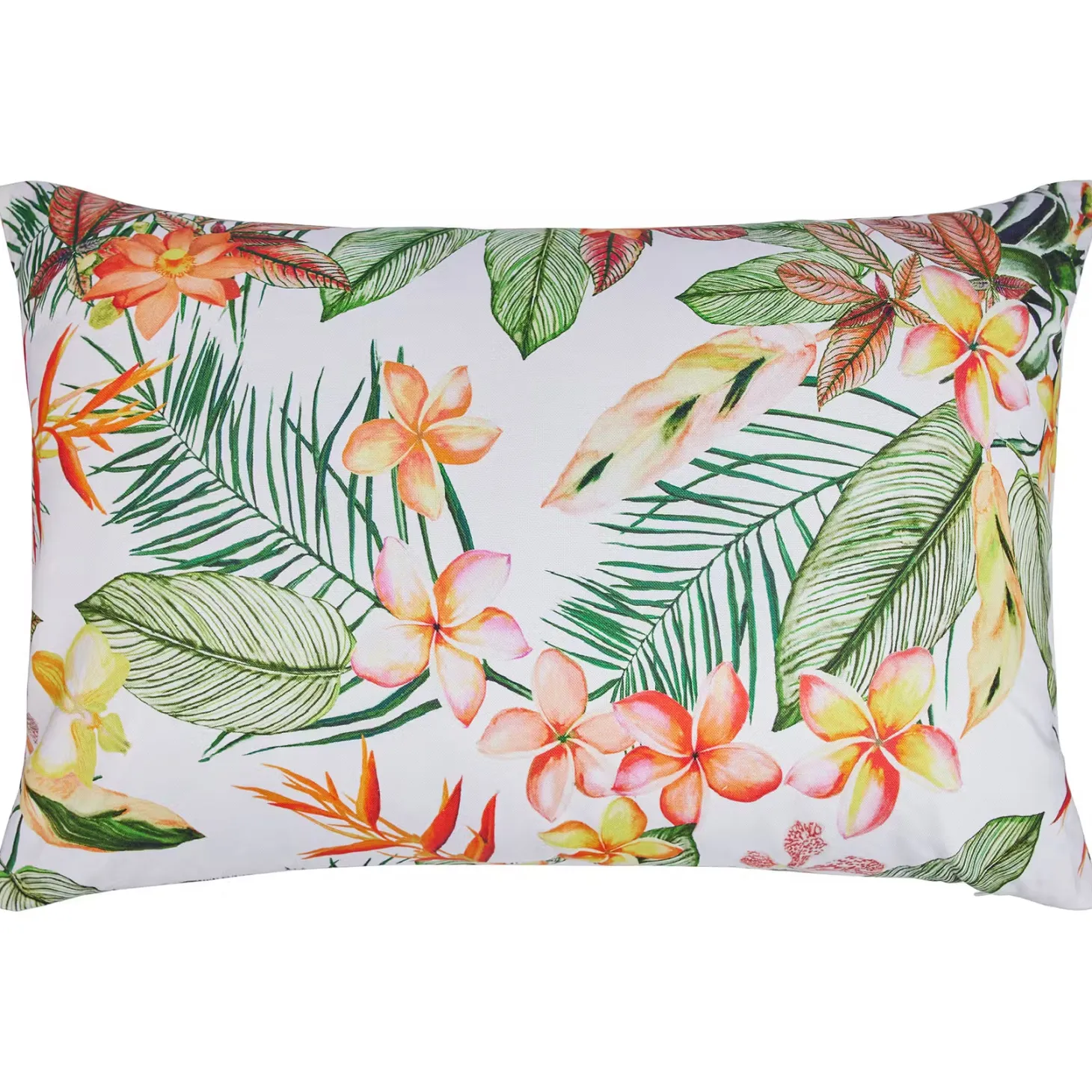 Sommer, Tropen, exotische Pflanzen – alles das fängt das Lombok Kissen in seinem trendigen Dessin ein. Farblich ist es dabei eher hell und in warmen, natürlichen Tönen gehalten, so dass es sich vielseitig kombinieren lässt. Abnehmbarer Bezug aus reiner Baumwolle, mit Reißverschluss. Füllung aus Polyester. In einer weiteren Größe erhältlich.