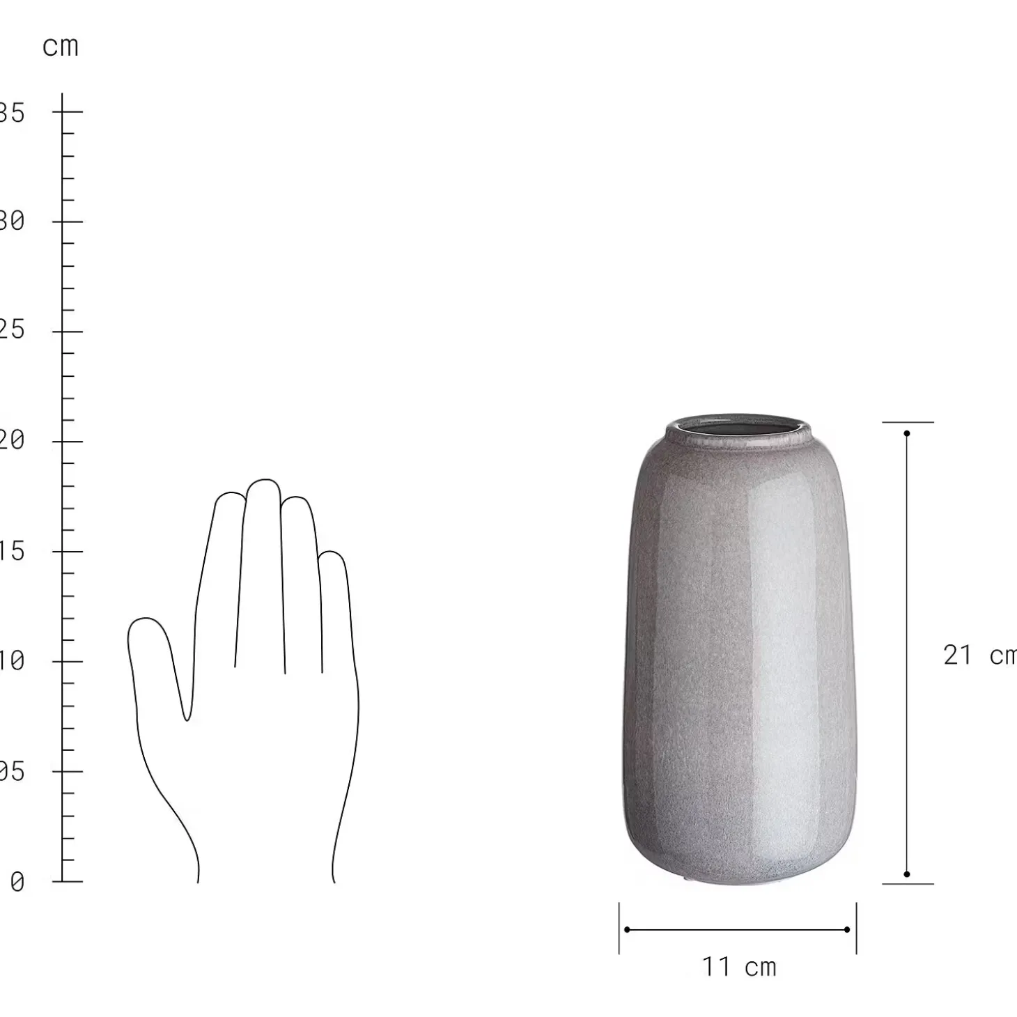 - Weitere Qualitätsmerkmale: Kompakte 21 cm Höhe und angesagtes Grau: Die Lou glasierte Keramik Vase hat alles, was sich moderne Tischdekos und stilvoll eingerichtete Wohnungen wünschen. Einfach einen Bund getrocknete Gräser in die Vase geben, auf dem gedeckten Tisch oder einer Kommode präsentieren – fertig ist der stylishe Hingucker.