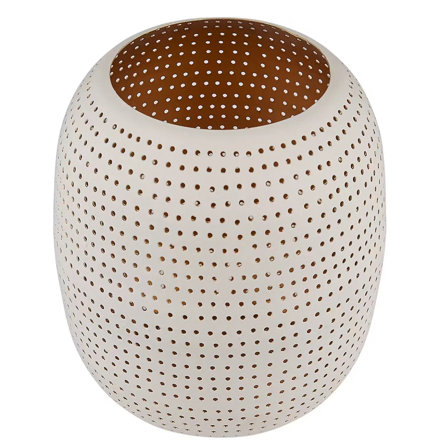 Aus Eisen gefertigt, mit vielen kleinen Öffnungen versehen und in Weiß gehalten: Das Luminous Windlicht in zeitloser Form ist ein echter Allrounder, wenn es ums Dekorieren, Kombinieren und Inszenieren geht. Heute wertest du damit deinen Frühstückstisch auf, morgen unterstreichst du mit dem Windlicht die gemütliche Stimmung in deinem Wohnzimmer und übermorgen schaffst du einem behaglichen Lichtakzent auf deinem Balkon – und das alles mit ein und demselben Windlicht.