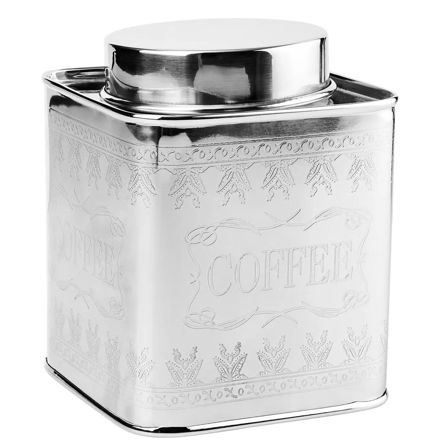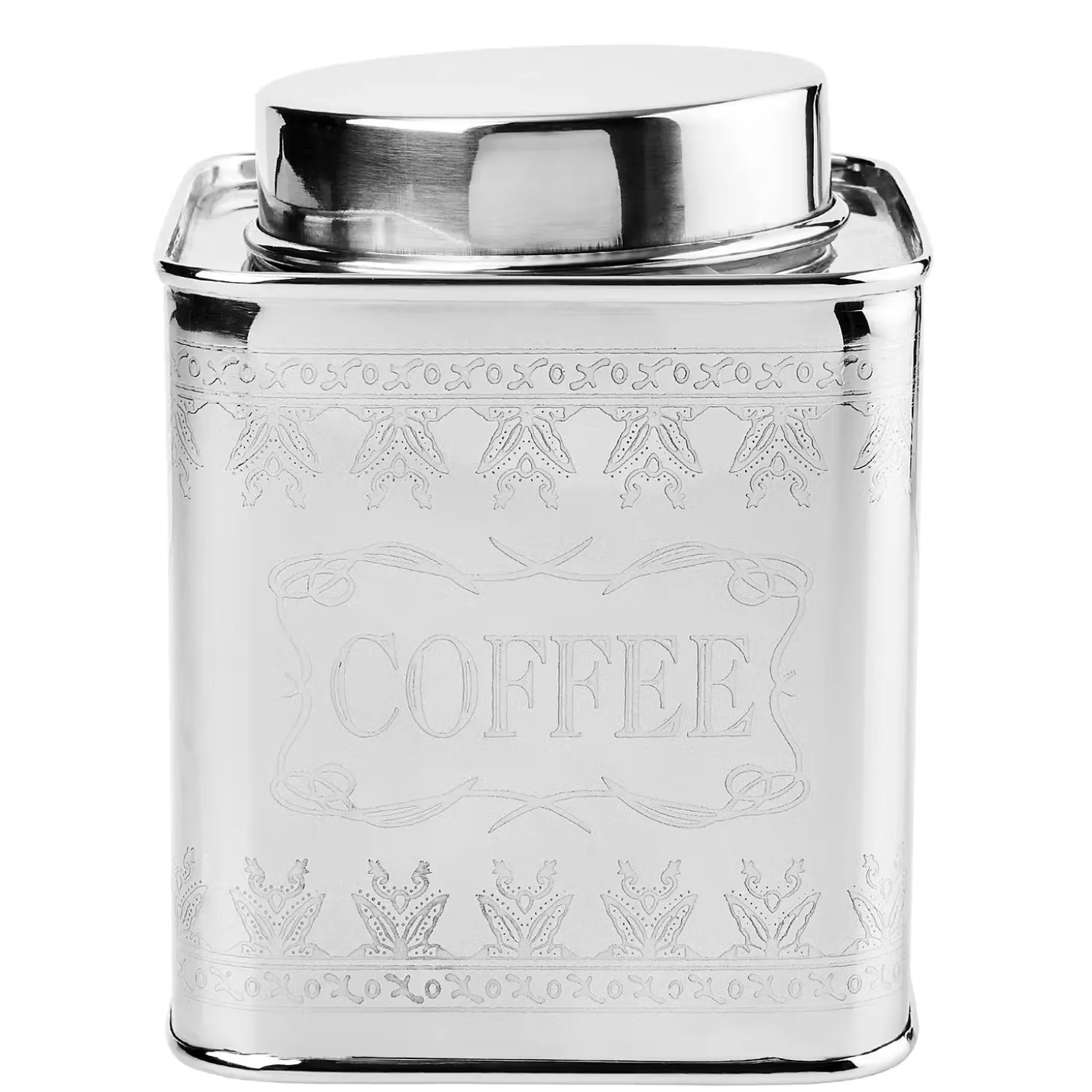 Das historische England lässt grüßen: Die Serie Miss Sophie bringt silbrigen Glanz und einen Hauch von Tradition in Ihre Küche. In der guten alten Zeit galten solche Utensilien, in denen man sich spiegeln konnte, als ein Beweis der perfekten Haushaltsführung. Heuten zeugen sie zumindest von gutem Geschmack und zeitlosem Stil. Dose mit abnehmbarem Deckel, handgraviert mit Schrift und Ornament. Weitere Dosen erhältlich.