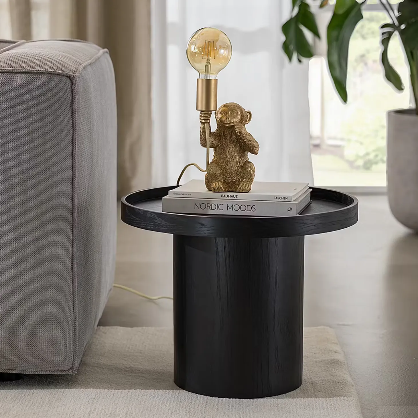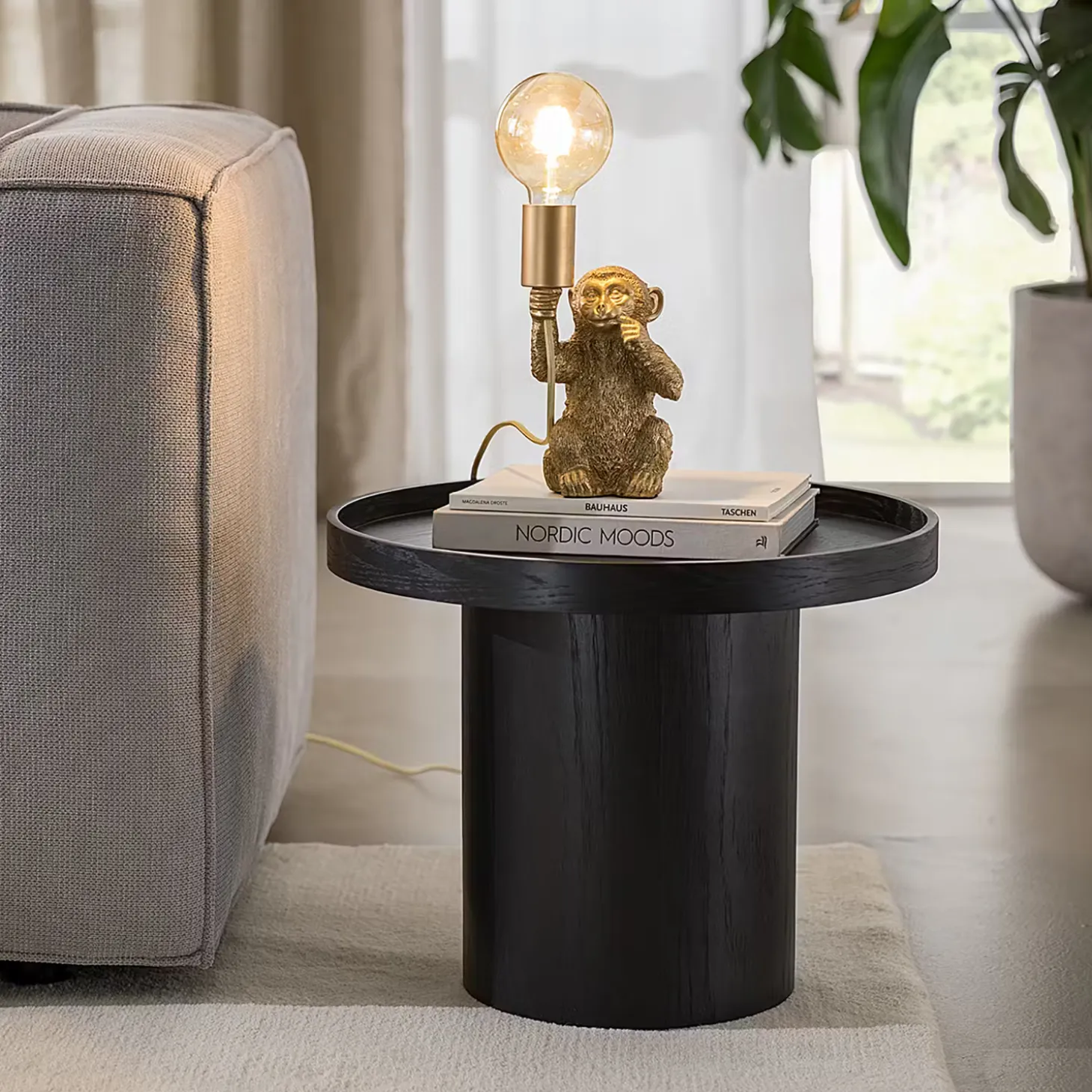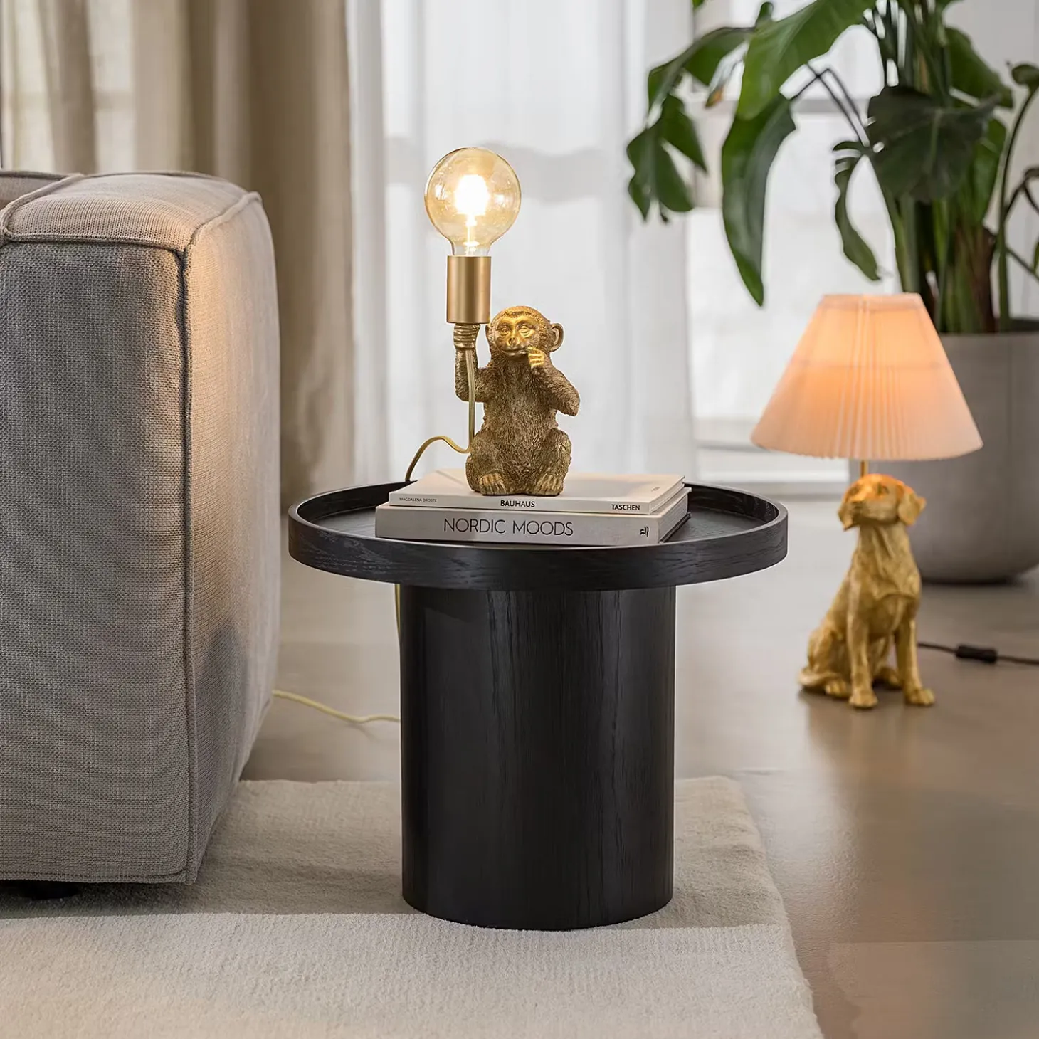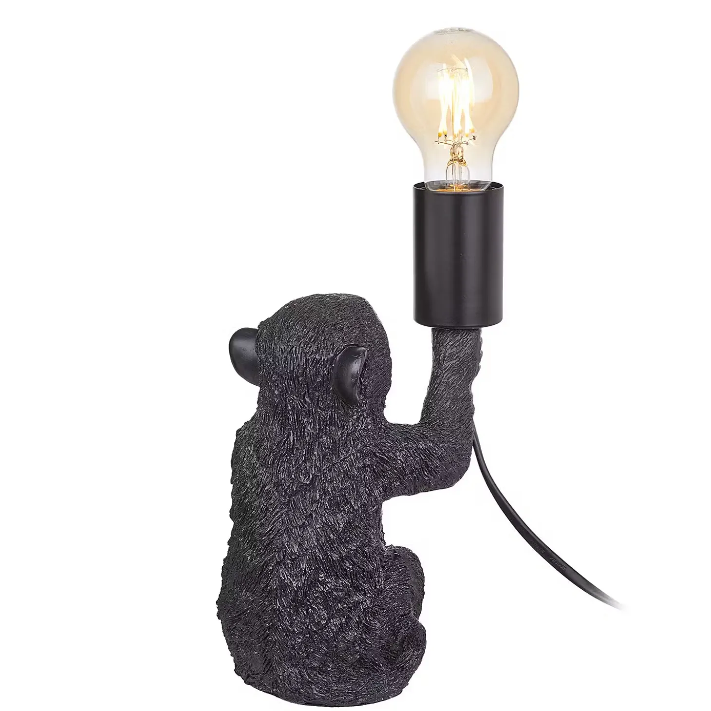 Außergewöhnliche Tierleuchten wie die Monkey Town Tierleuchte Affe sind ein raffiniertes Accessoire, das deinem Zuhause Persönlichkeit verleiht. Mit einem leicht provokanten Augenzwinkern bringt diese Tischlampe in Form eines sitzenden Affen deinen selbstbewussten Stil zum Ausdruck – z.B. als Blickfang im Wohnzimmer. Mit Textilkabel in passender Farbe und Kippschalter. Erhältlich in Gold und in Schwarz.