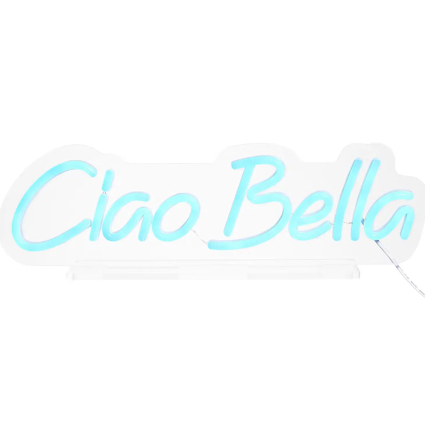 In Sachen trendige Deko geht die hellblau-farbene Neon Vibes LED Leuchte Ciao Bella mit USB-Kabel mit leuchtendem Beispiel voran. Ob in Küche, Flur oder Wohnbereich – der leuchtende Schriftzug auf transparentem Acryl setzt gerade bei dämmrigen Licht ein lässiges Zeichen. Dank USB-Anschluss ist die Leuchte im Neon-Look dabei ganz flexibel, was den Standort anbetrifft. Überall wo Powerbank, Laptop oder Steckdosenadapter verfügbar sind, kann die LED-Leuchte strahlen. Weitere Varianten erhältlich.