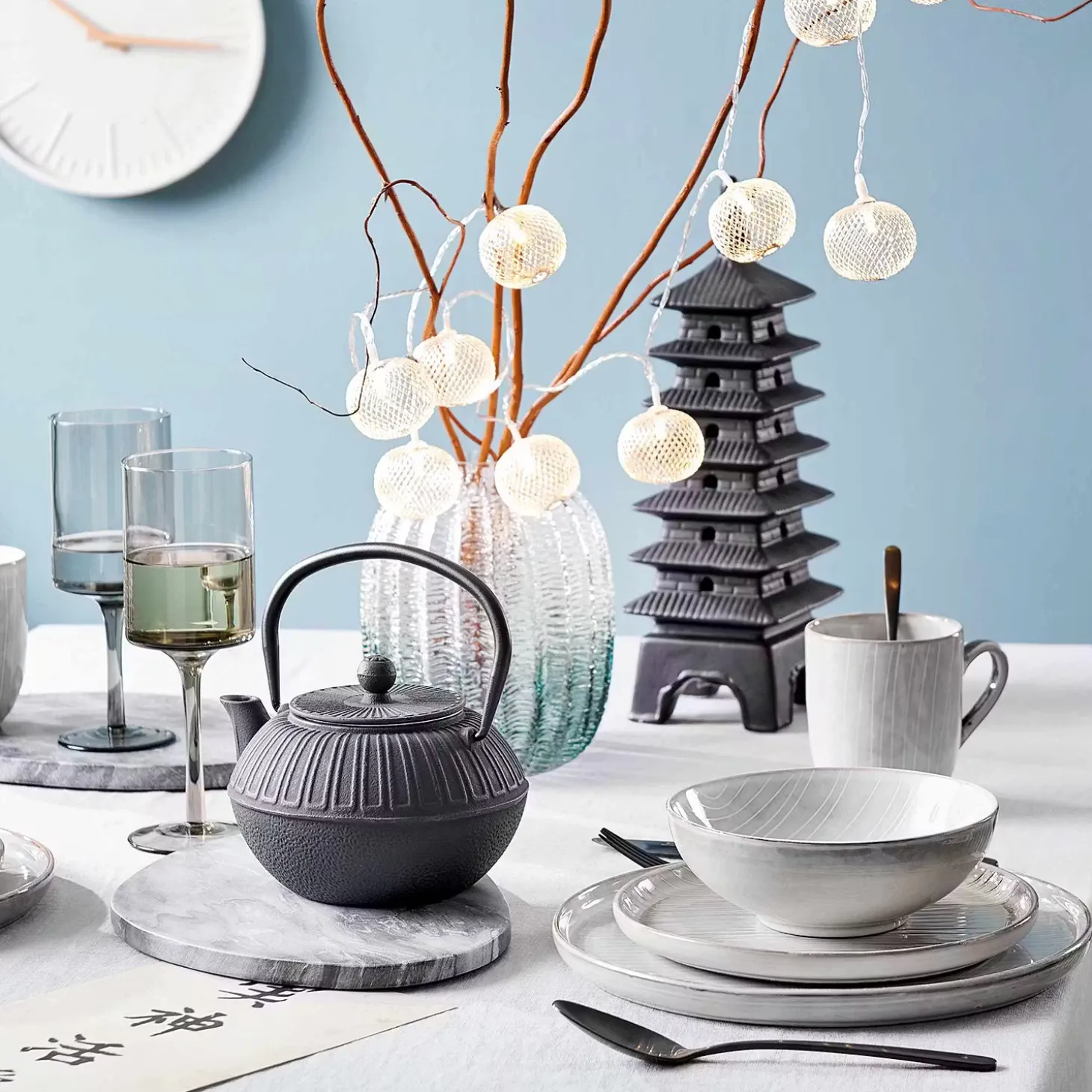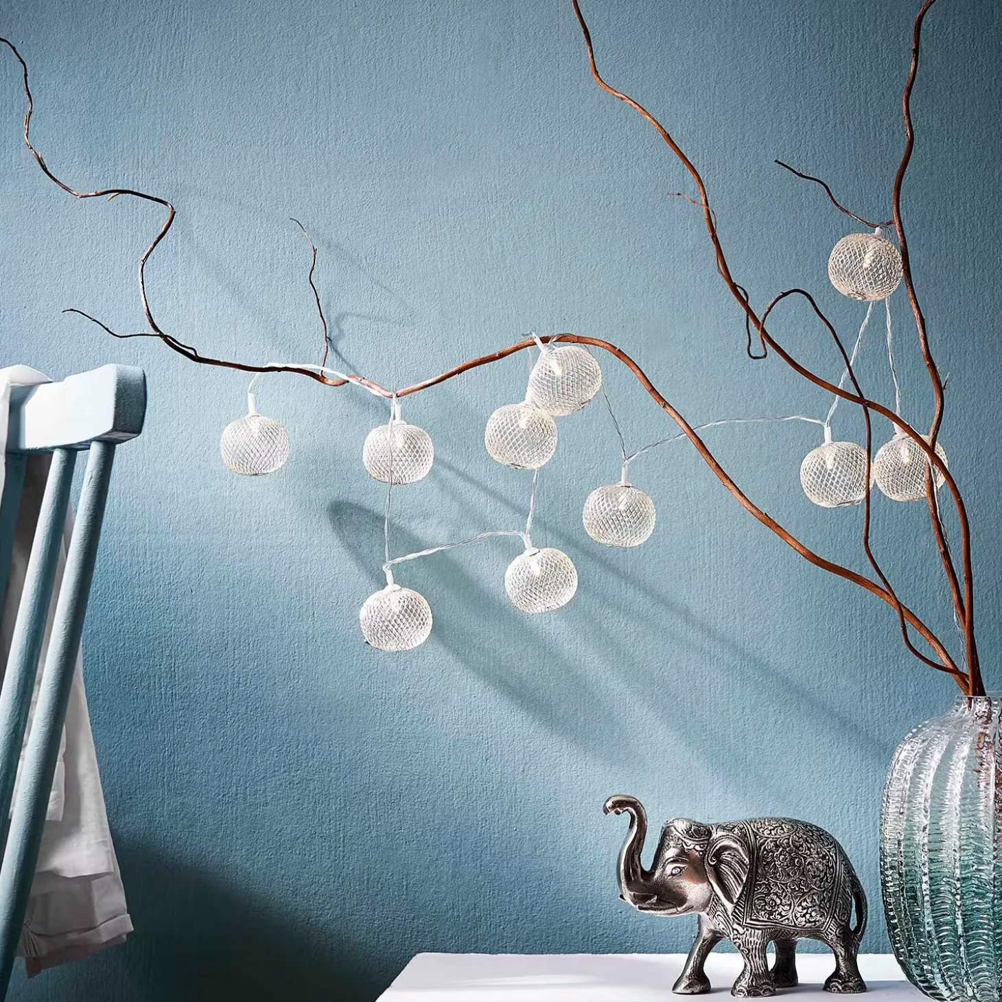 Was den Asia Style betrifft, geht die Osaka Lichterkette mit USB-Batteriefach dekorativ voran: 10 Lichter in filigranen Metallbällen setzen warm weiße Akzente in Ihrem Zuhause, z. B. im Schlafzimmer oder im Wohnbereich. Betrieben mit 2 x AA Batterien, lässt sich die Lichterkette stimmungsvoll auch auf dem gedeckten Tisch arrangieren oder nutzen, um z. B. einen Spiegel zu erhellen.