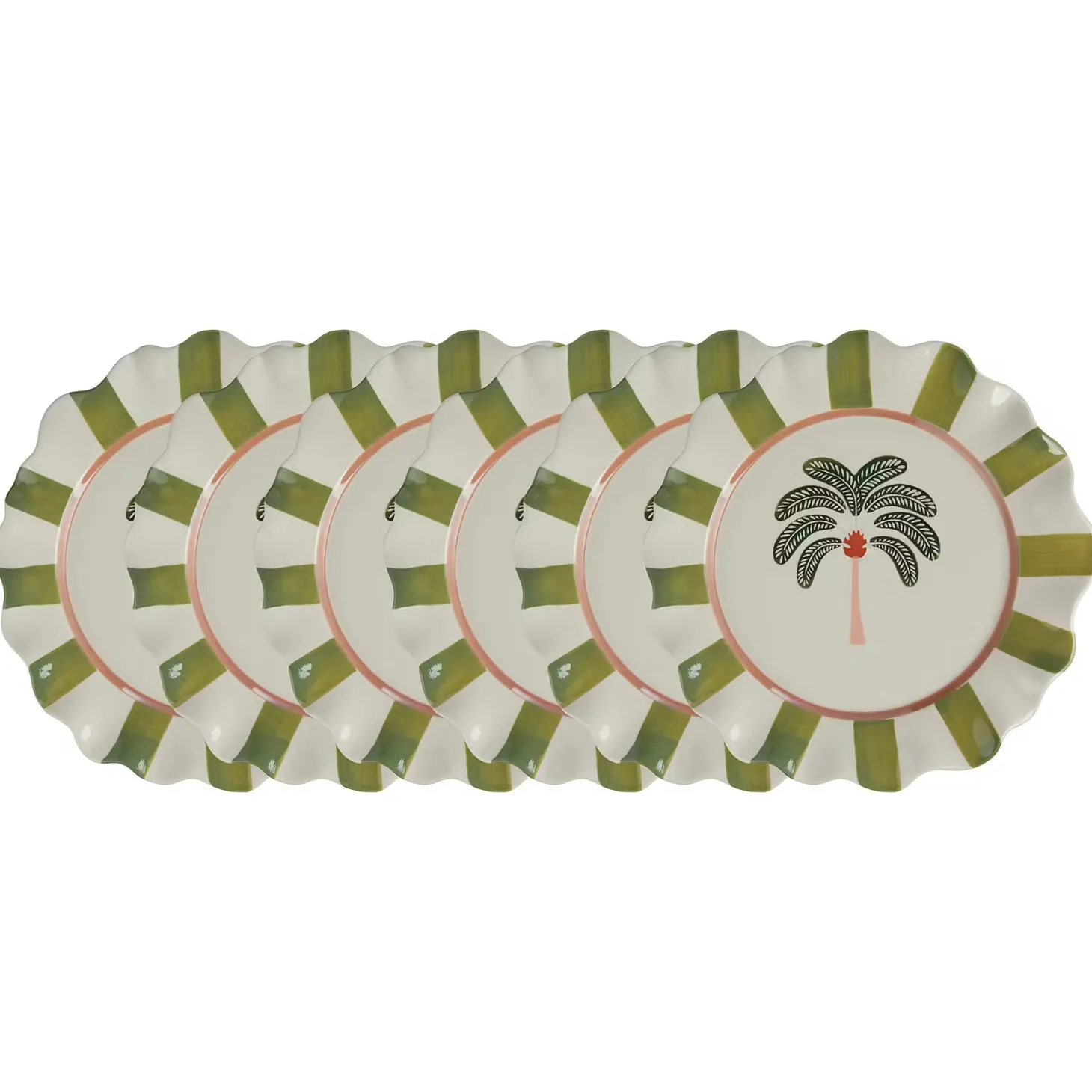 Jetzt wird’s tropisch: Der Palacio Teller mit Palme im 6er-Set ist aufwändig handbemalt – mit dekorativem Rand und modernem Palmen-Motiv. Mit diesem Schmuckstück rundest du deine sommerliche, exotische Einrichtung ab oder präsentierst deine Lieblingsspeisen und beweist deine Liebe zum Besonderen. Auch als Palacio Teller Leo erhältlich.