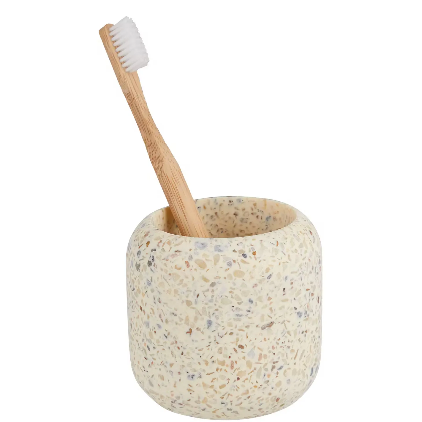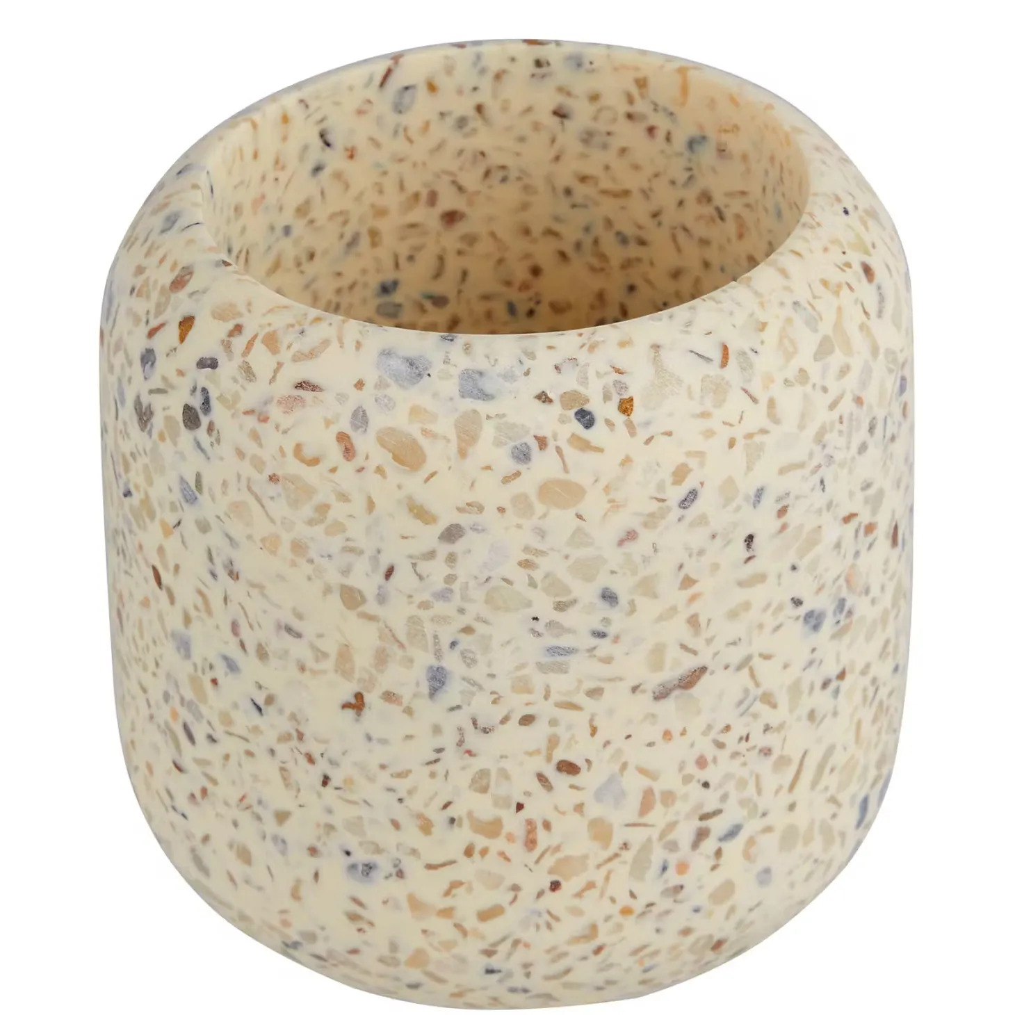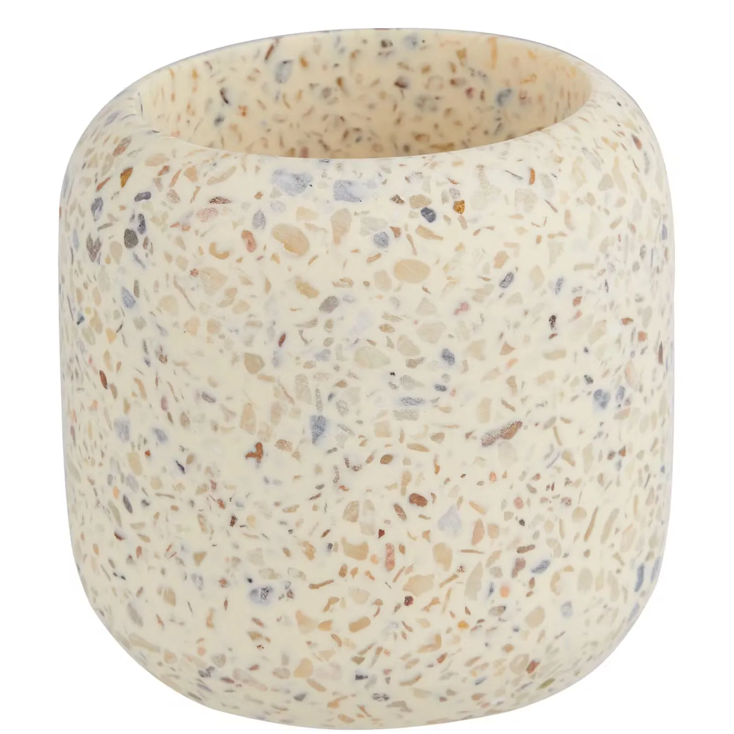 Dein Badezimmer erhält ein stilvolles Upgrade mit dem modernen Paros Zahnputzbecher. Das runde, gesprenkelte Gefäß aus Steinzeug bietet Platz für Zahnbürsten und Zahnpasta und sorgt für Ordnung am Waschbecken. Passende Paros Aufbewahrungsdose und Seifenspender erhältlich – für ein harmonisches Styling in deinem Bad oder in deiner Gästetoilette.