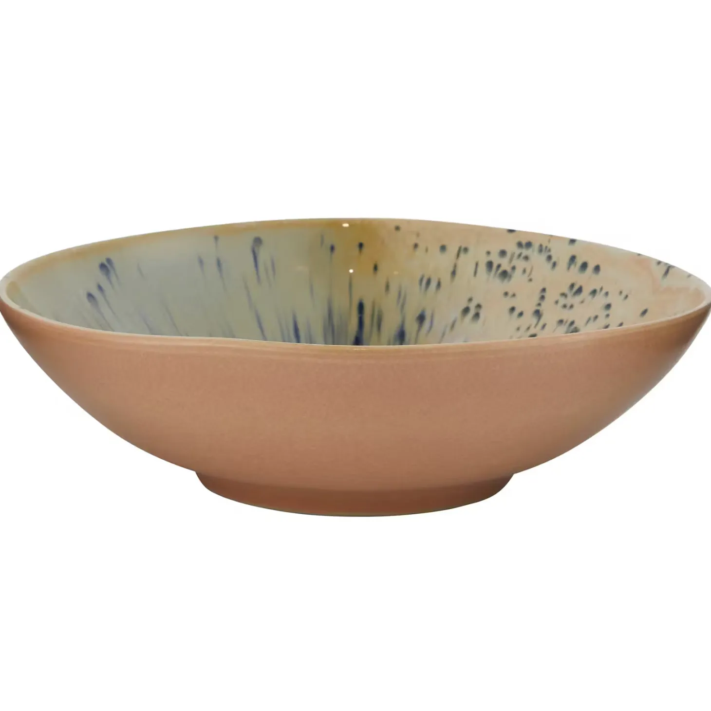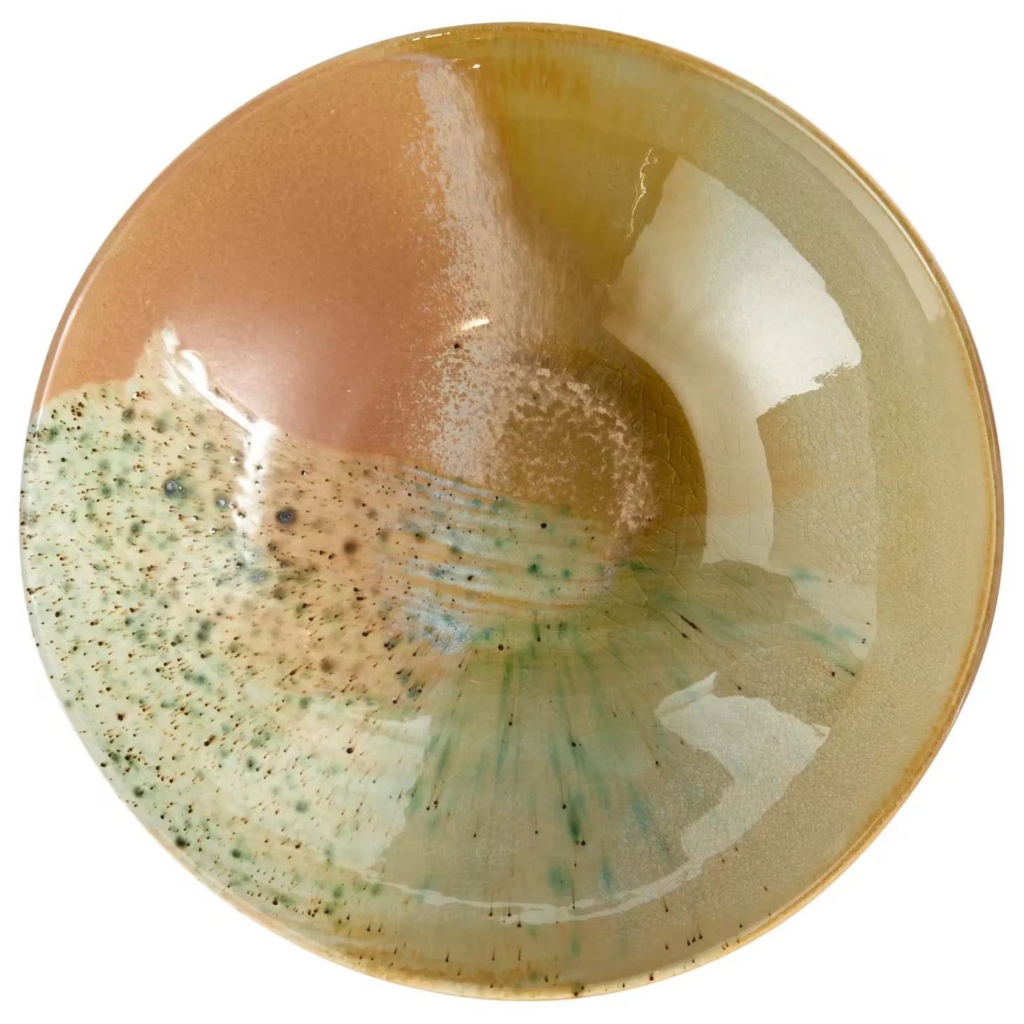 Ein einzigartiges Statement-Piece für deinen gedeckten Tisch: Die Sintra Salatschale 32 cm Durchmesser zieht mit ihren dynamischen Farbverläufen und abstrakten Mustern alle Blicke auf sich. Hinter dieser beeindruckenden Optik verbergen sich natürlich Glasuren mit individuellem Charakter, veredelt durch eine transparente Krakelé Glasur. Erdverbunden und authentisch entsteht so eine besondere Form von Luxus. Der Steinzeug-Teller ist übrigens spülmaschinengeeignet und mikrowellengeeignet, und für den perfekt gedeckten Tisch gibt es aus der Sintra Geschirrserie weitere Teller, Salatschalen und Servierschalen in verschiedenen Farbvarianten.