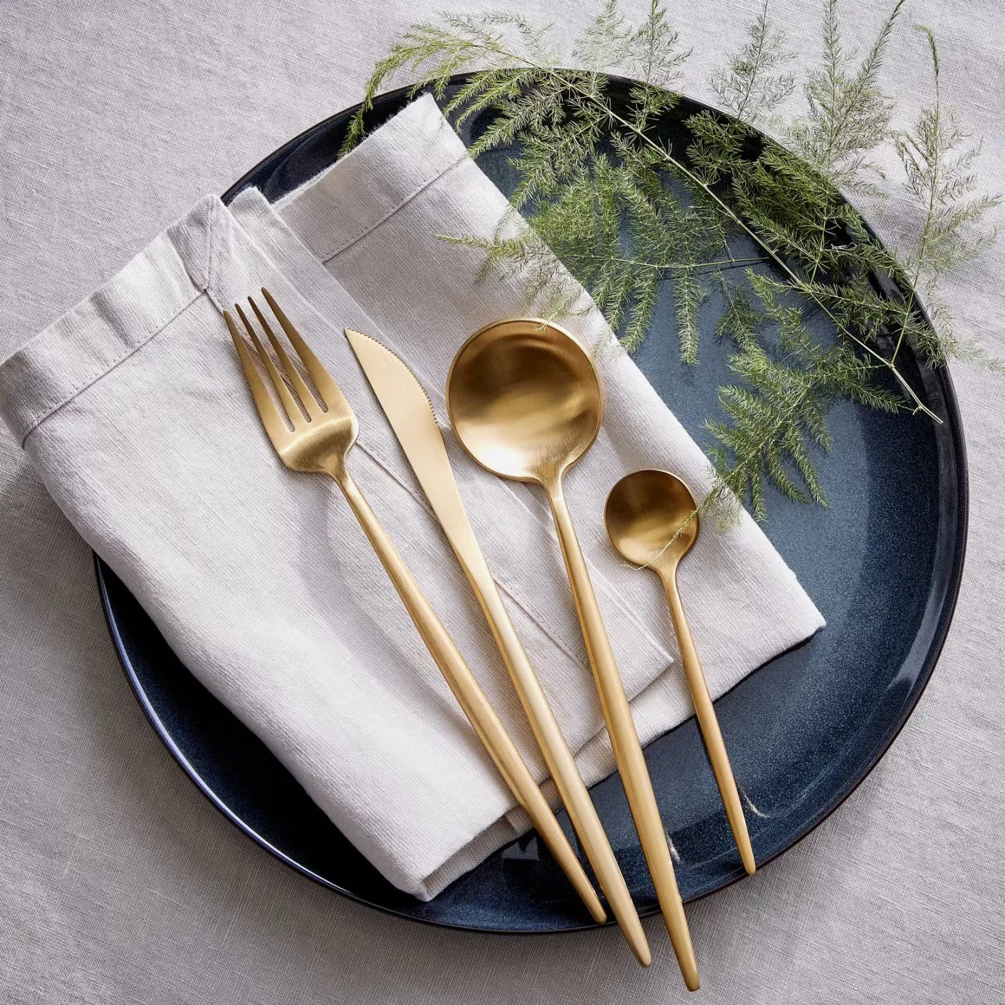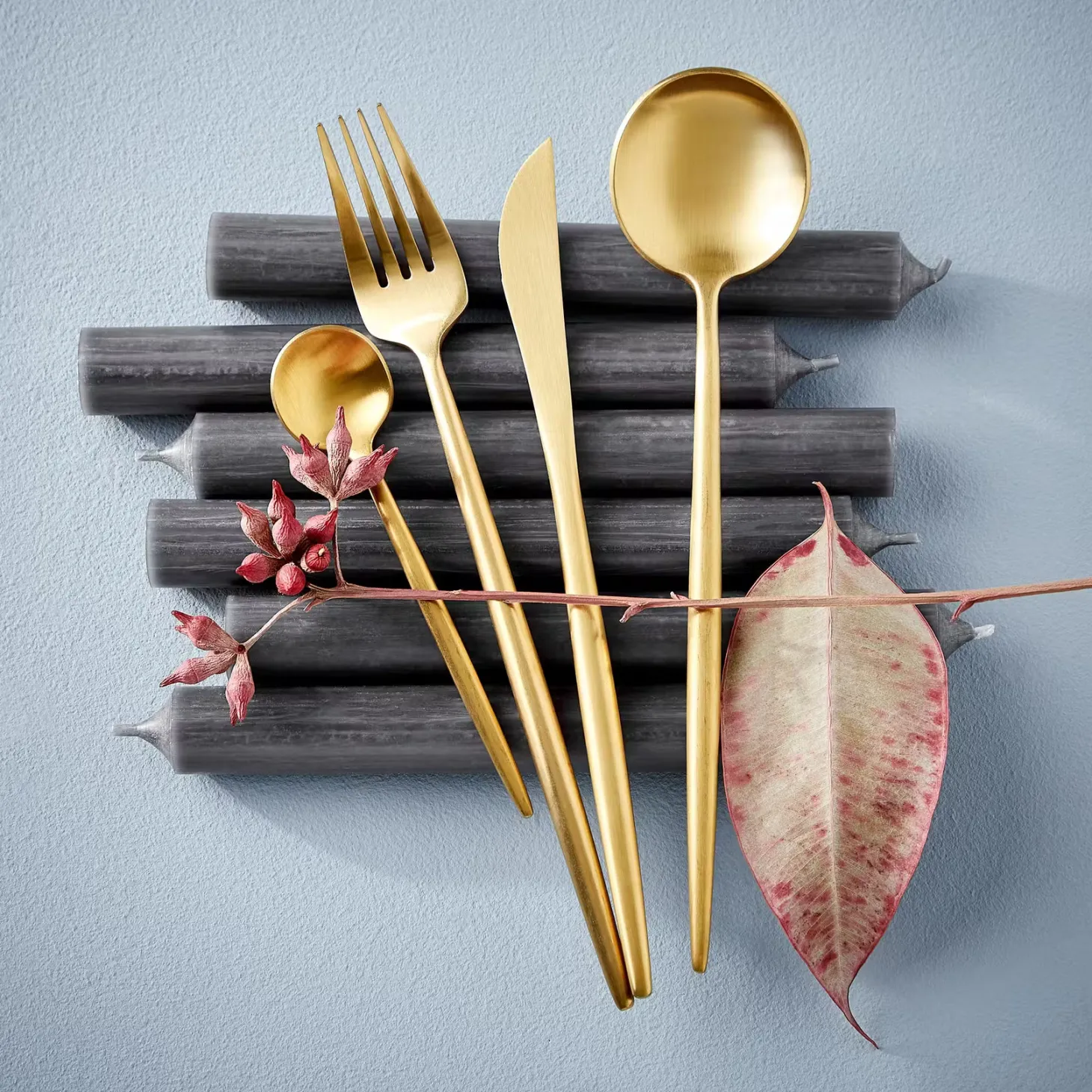 Für einen Wow-Effekt auf dem gedeckten Tisch sorgt das Stiletto Besteck aus Edelstahl. Sein puristisches Design mit spitz zulaufenden Griffen passt in seiner Klarheit perfekt zum nordischen Stil. Doch das edle Besteck sieht nicht nur gut aus: Beim Essen liegen Messer, Gabel und Löffel dank leicht runder Form gut und sicher in der Hand. 4-teiliges Set, weitere Varianten erhältlich.