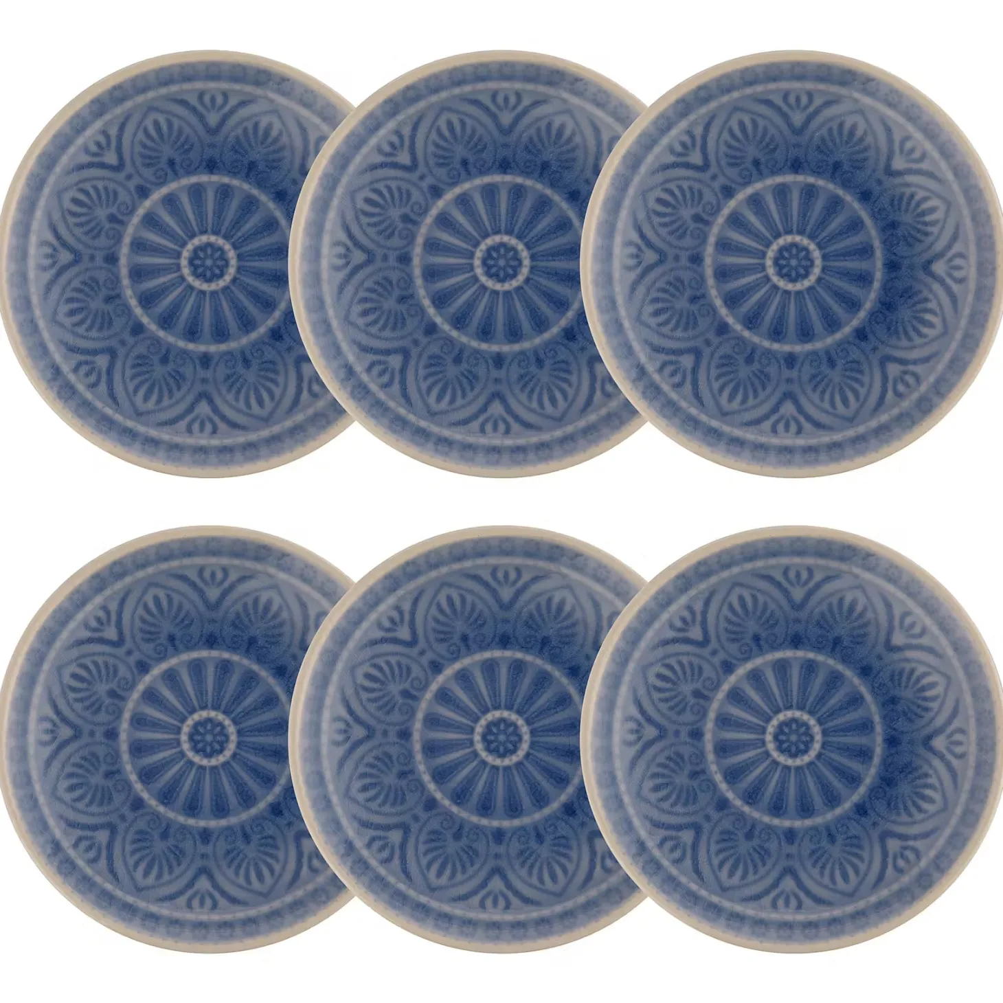 Der prächtige, asiatische Sumatra Teller im 6er-Set mit einem Durchmesser von 14 cm und traditionellem Dekor mit effektvoll glänzender Glasur. Der große Speiseteller aus Steinzeug ist ein echter Blickfang auf Ihrem gedeckten Tisch. Die kostbare Optik des bunten Tellers bietet einen feinen Kontrast zu den sehr scharf gewürzten Speisen, die man traditionell auf der Insel Sumatra reicht.