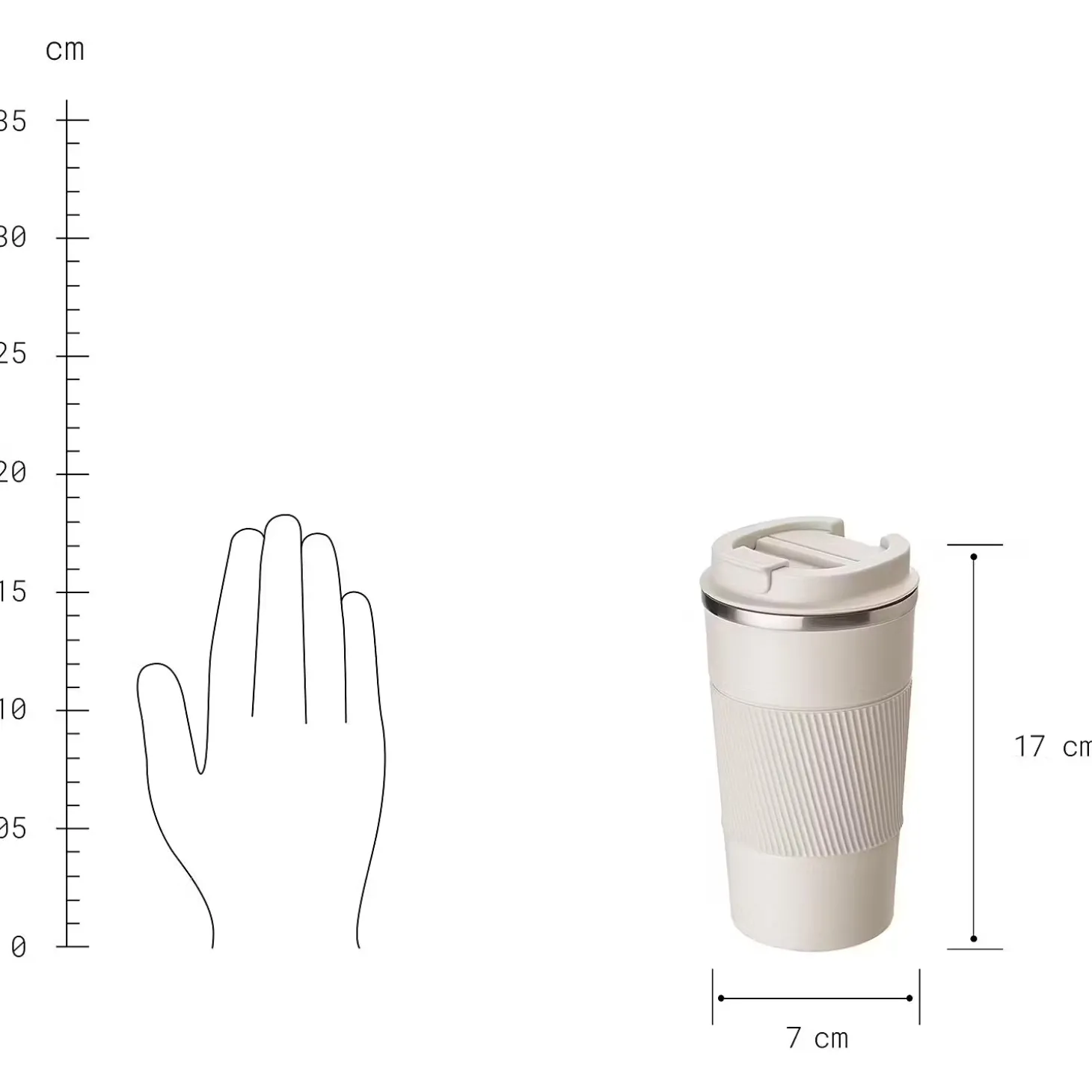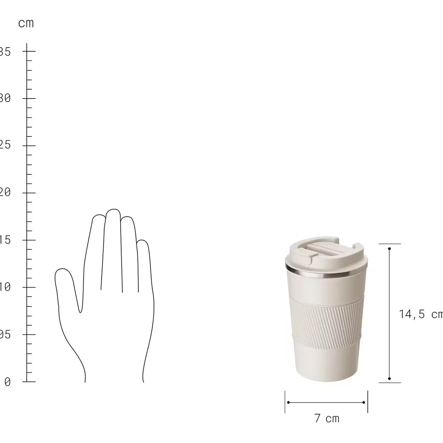 Hält warm und dicht und ist immer wieder verwendbar: Der trendige To Go Kaffeebecher in Beige ist ein echter Profi, wenn es um Kaffee zum Mitnehmen geht. Innen sorgt er mit doppelwandigem Edelstahl dafür, dass Heißgetränke etwa 8 bis 12 Stunden lang warm bleiben. Außen sorgt seine griffige Oberfläche für ein gutes Handling – und einen lässigen Look. In zwei Größen erhältlich.