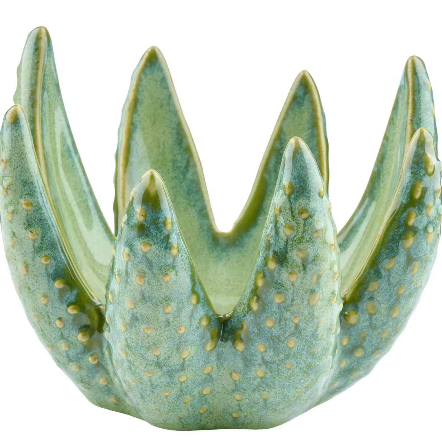 Kerzenhalter wie der Aloe Kerzenhalter aus Steinzeug in Grün machen es dir ganz leicht, natürliche Akzente auf dem gedeckten Tisch oder in deiner Deko zu setzen. Der hübsche Kerzenhalter ist einer Aloe Vera-Pflanze nachempfunden und lässt sich z.B. mit weißen, naturfarbenen oder hellgrünen Kerzen in Szene setzen.