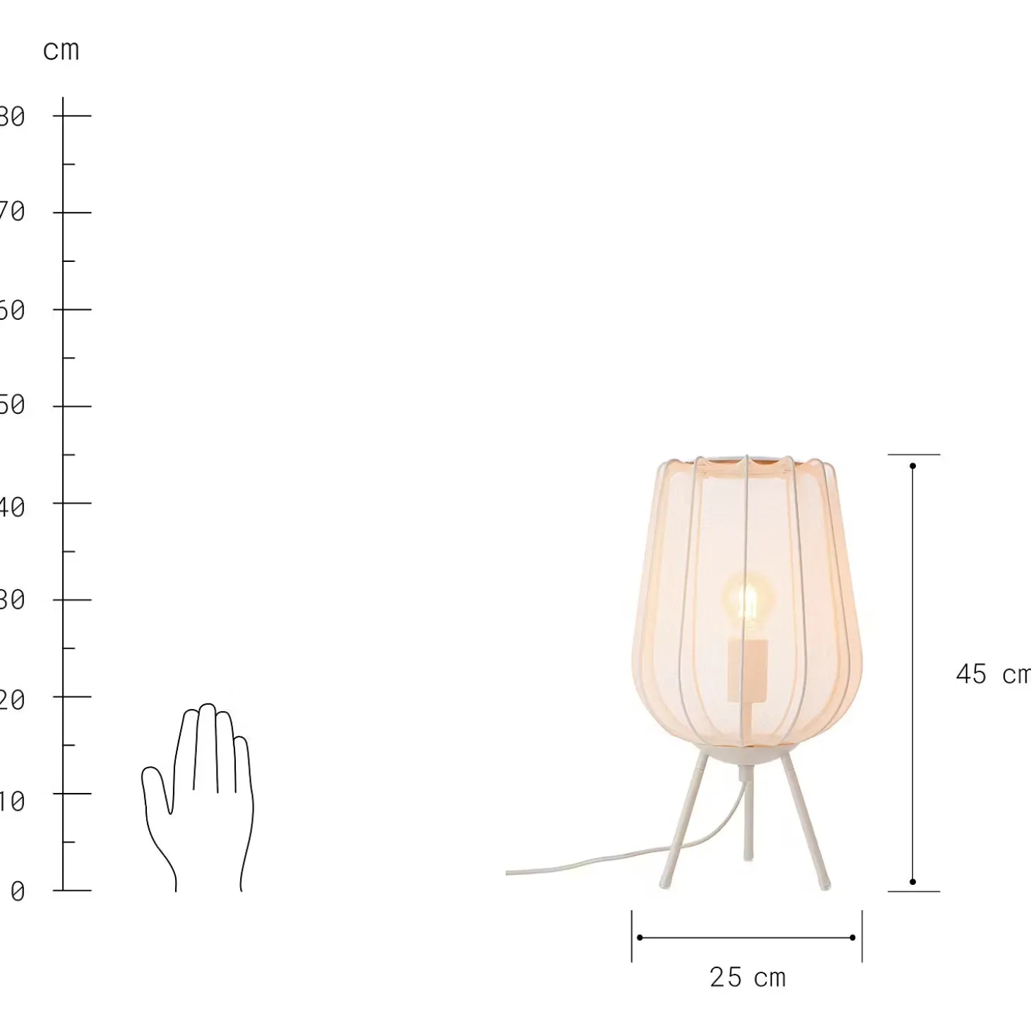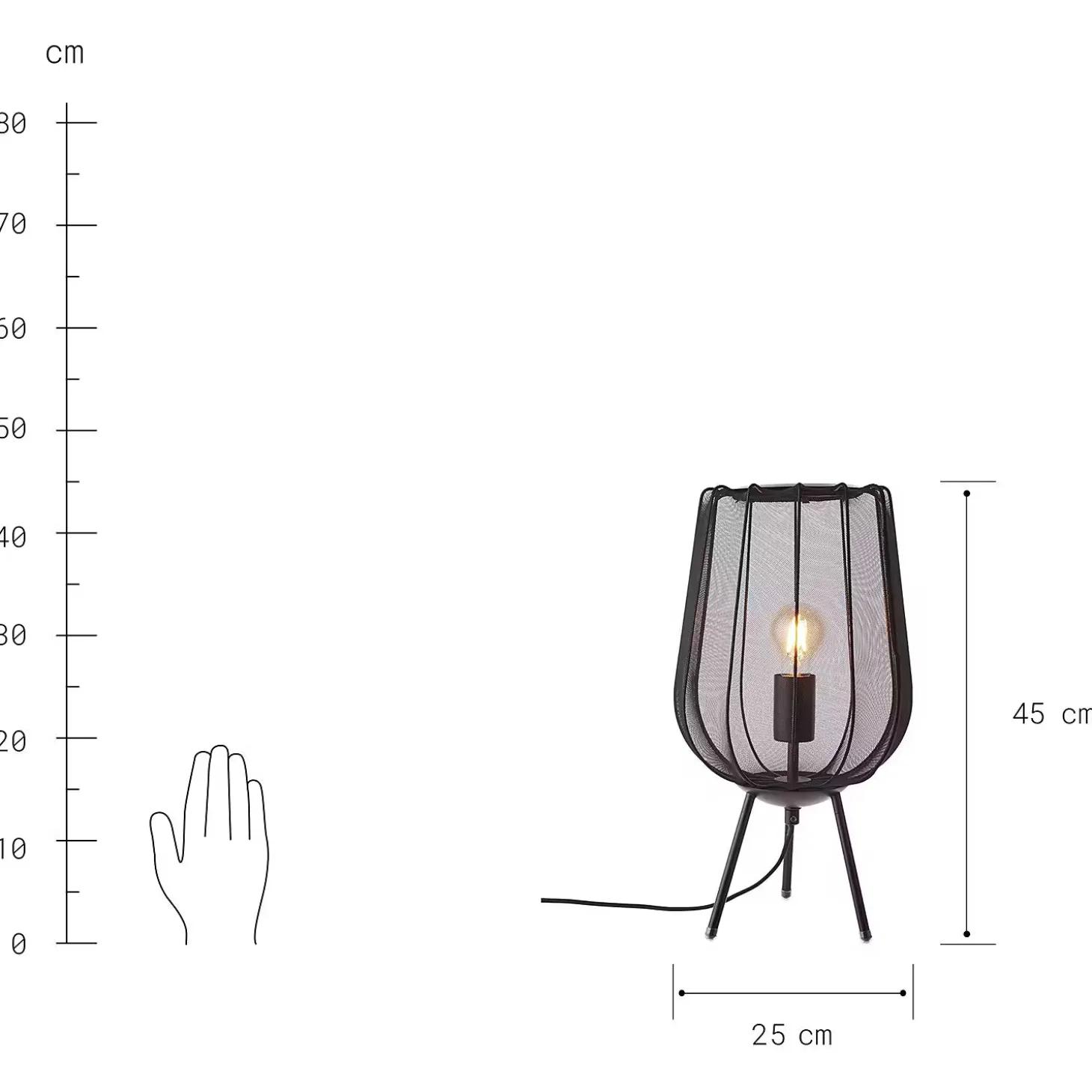 - Weitere Maße: Ø 25 cm, Höhe 45 cm, Kabellänge: 1,5 m