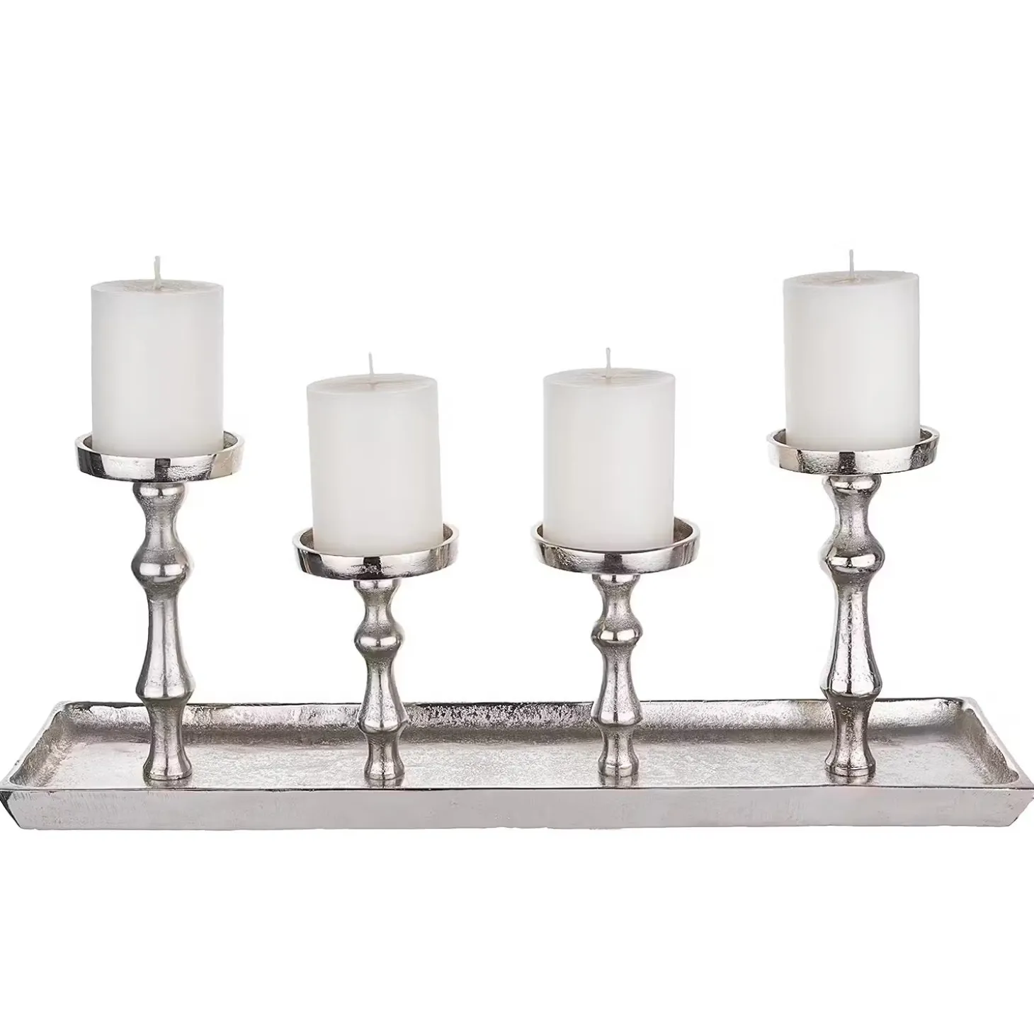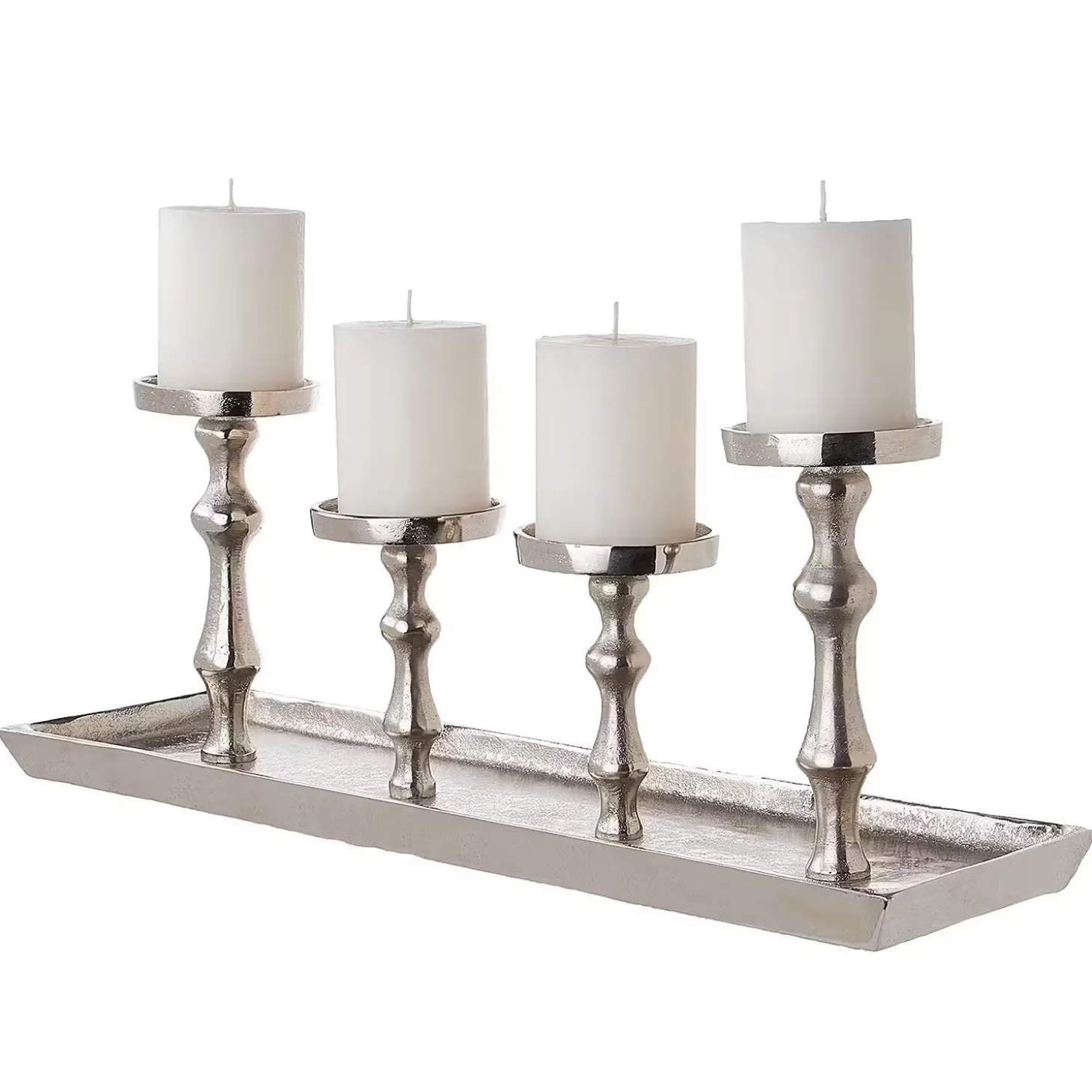Jetzt wird´s opulent: Mit dem Banquet Tablett mit 4 Kerzenhaltern in schillerndem Silber wird Ihr gedeckter Tisch zur festlichen Tafel und Ihre edle Deko zum glamourösen Schmuck.
