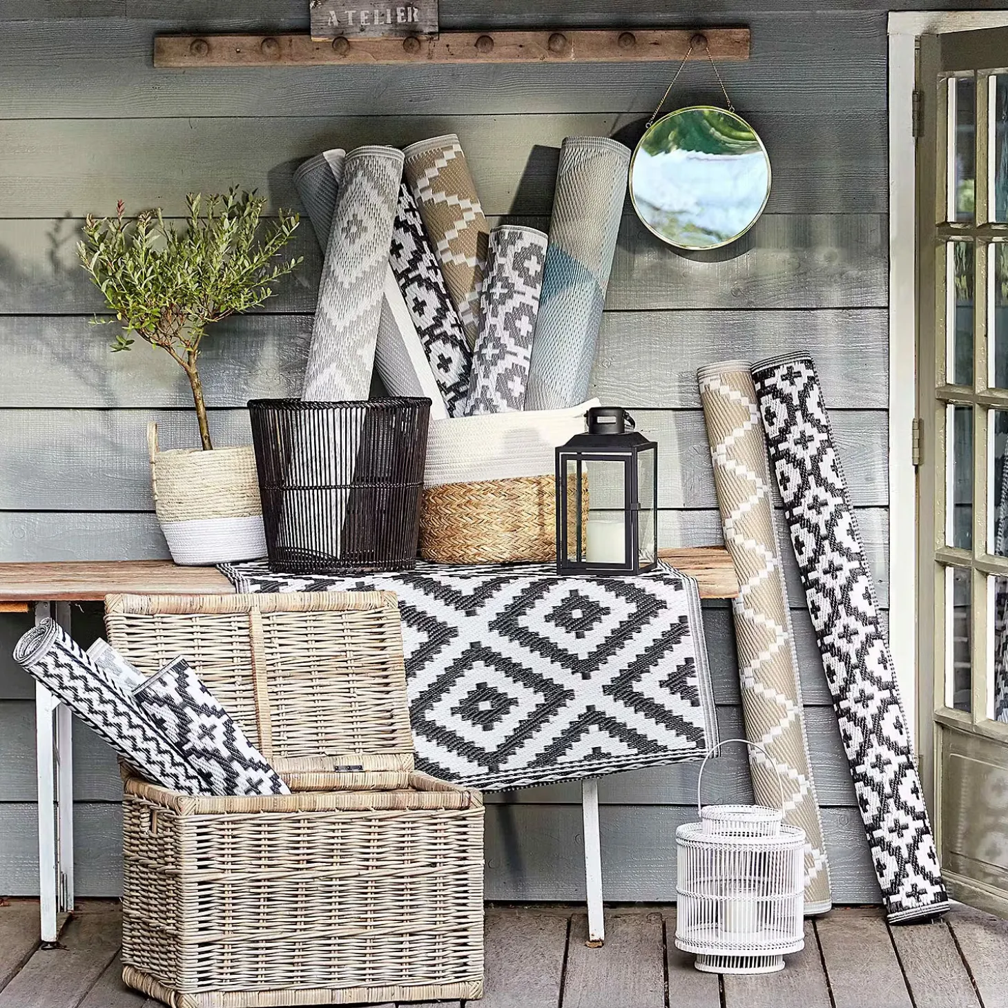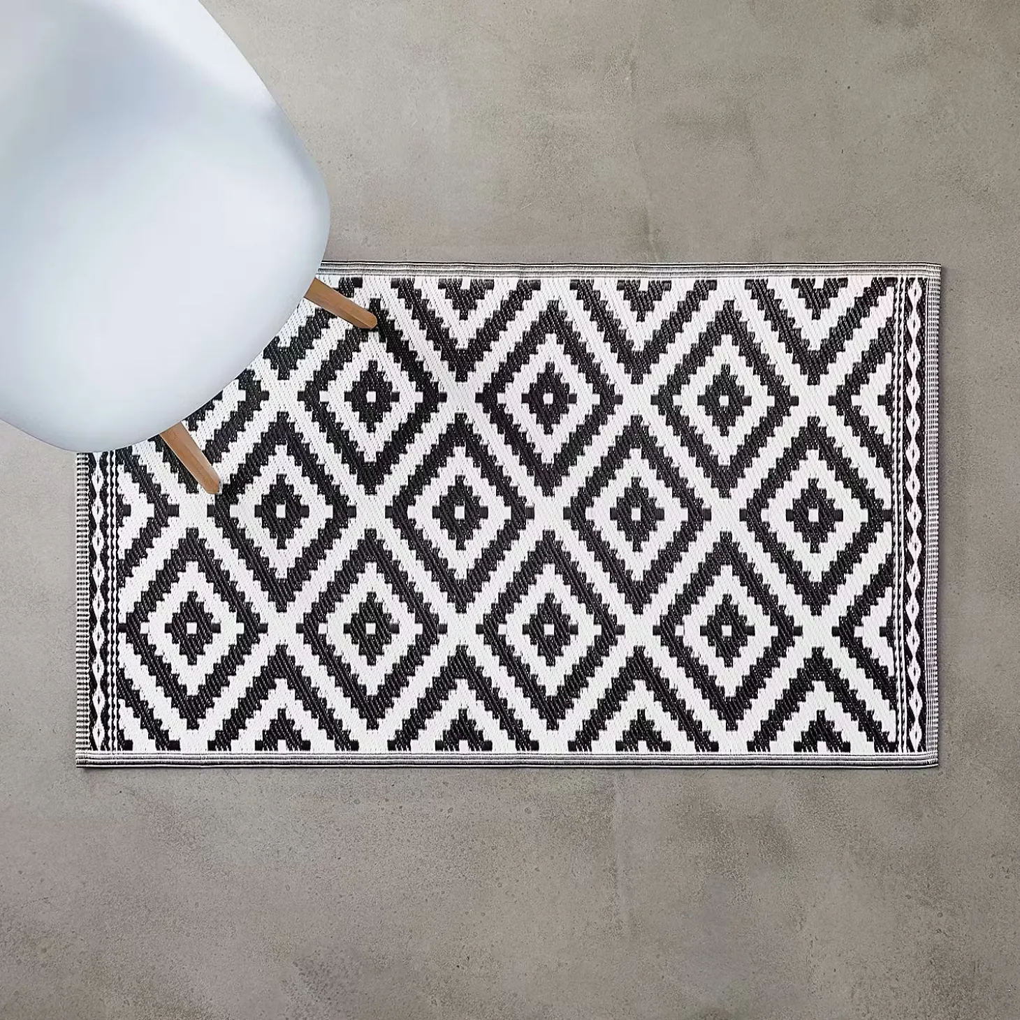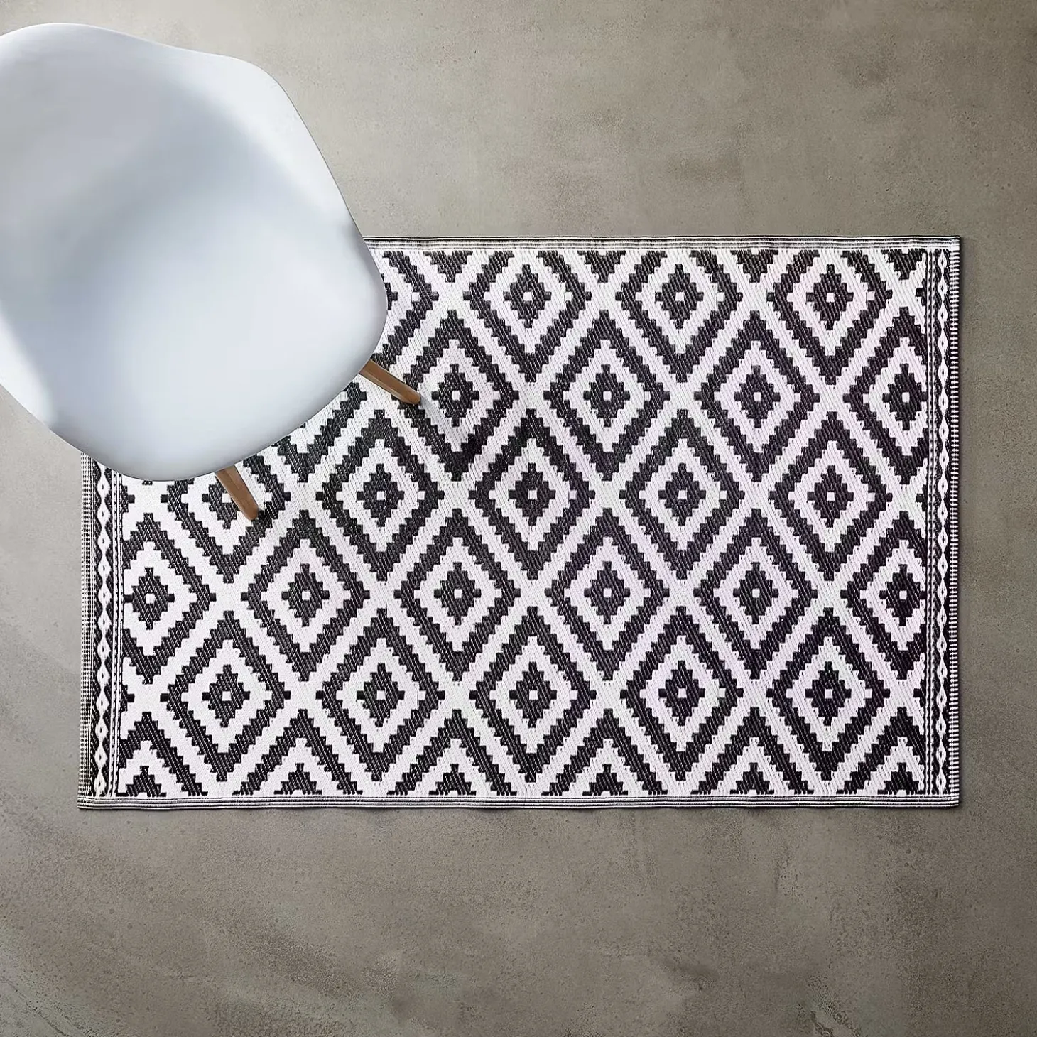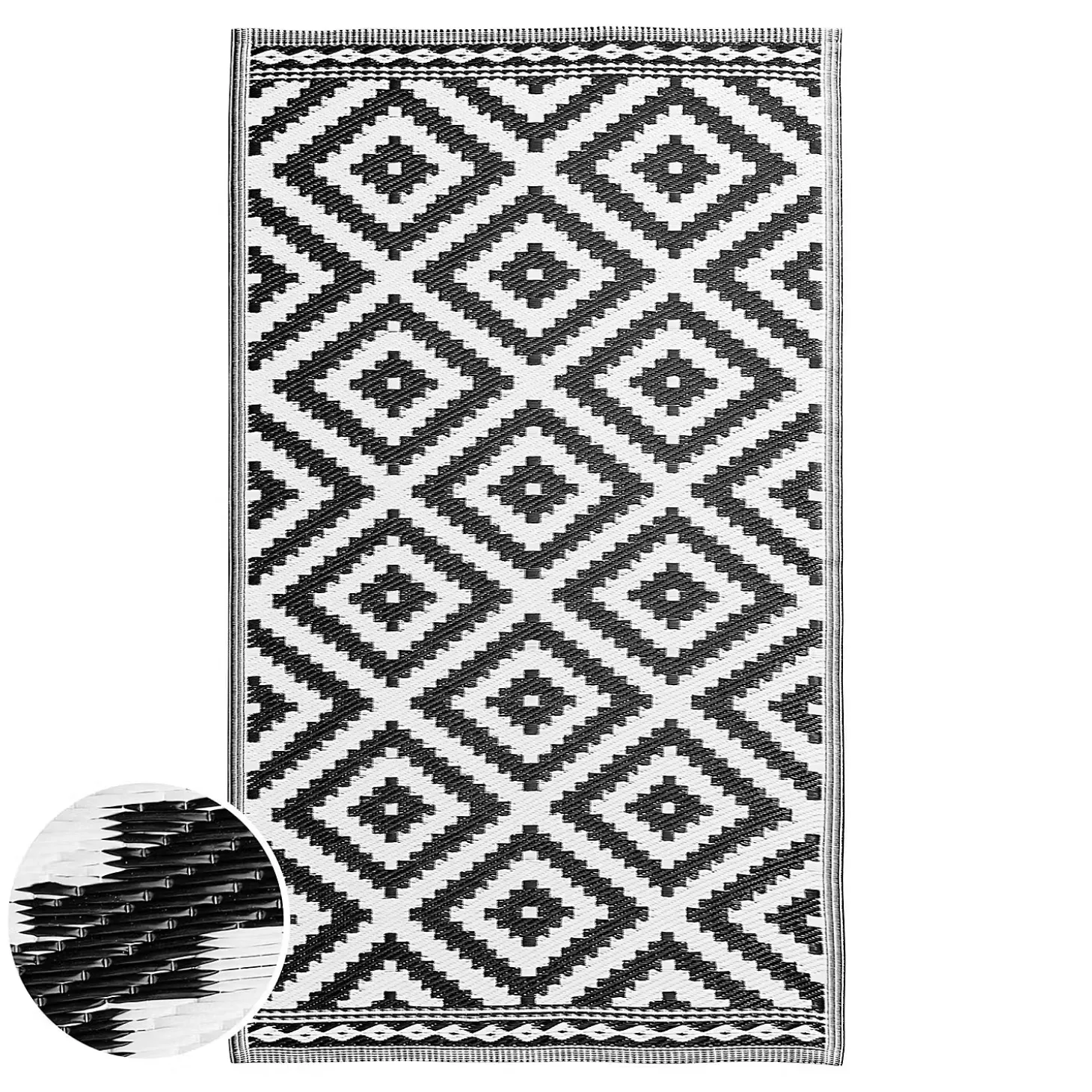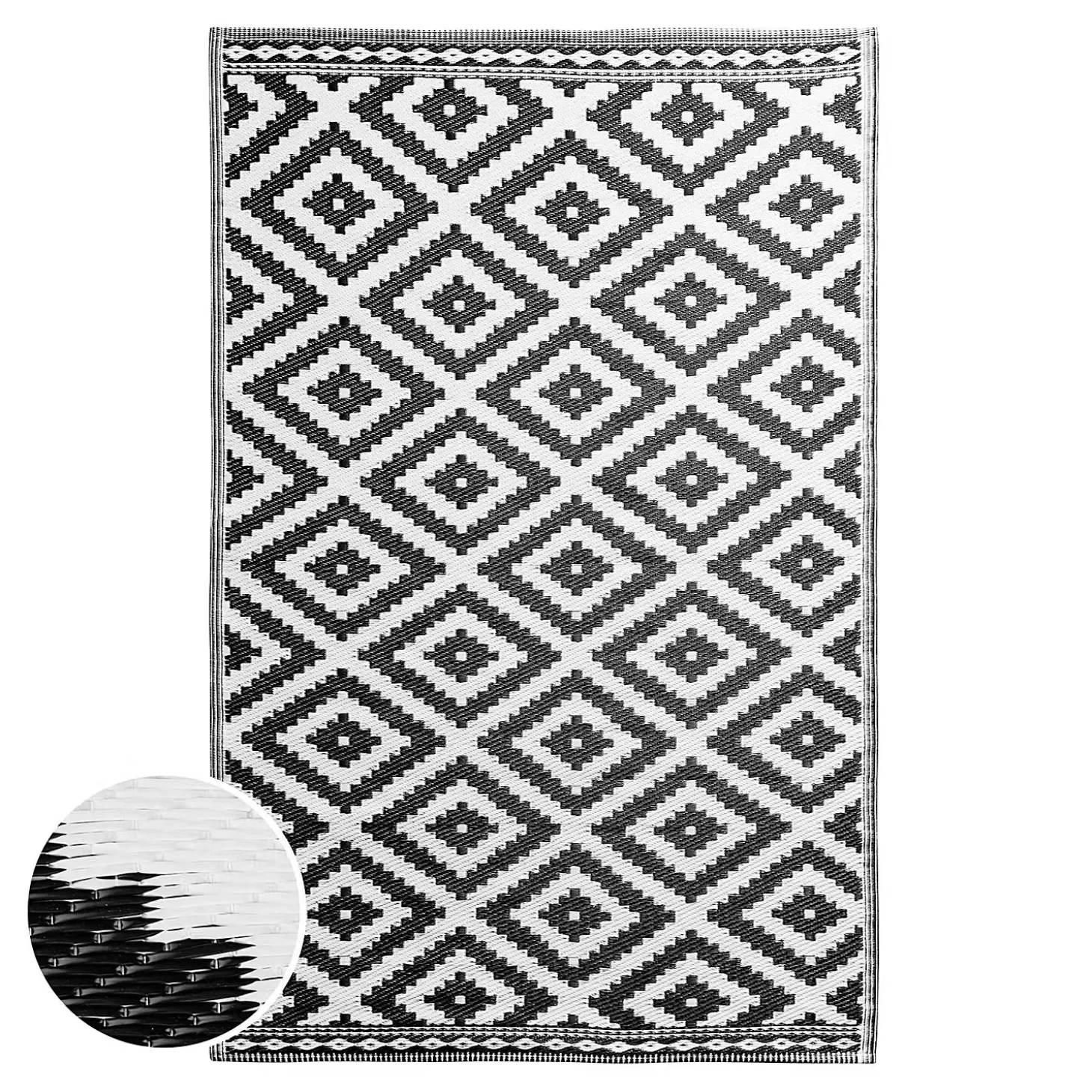Weil Sie auf wohnlich und zugleich pflegeleicht stehen, legen Sie sich den modernen Colour Clash Outdoorteppich mit schwarz-weißem Rauten-Muster und Bastteppich-Struktur zu Füßen. Und das nicht nur auf Ihrem Balkon oder Ihrer Terrasse, sondern gerne auch indoor im Wohnbereich. So läuft es sich drinnen wie draußen spürbar angenehm. Aus robustem Kunststoffgewebe, UV-beständig.