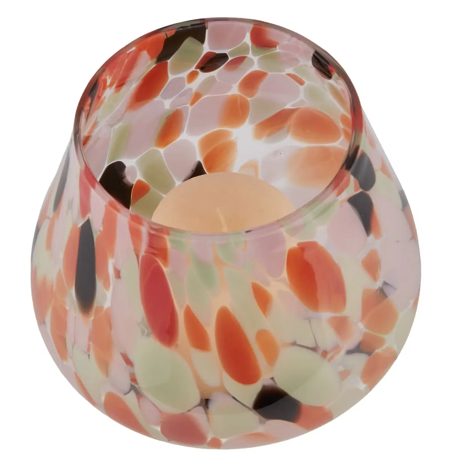 Als wäre farbenfrohes Konfetti in der Bewegung eingefangen worden: Das Confetti Windlicht Donut aus Glas spielt mit lebendigen Farbeffekten und wird so zum fröhlichen Hingucker – zum Beispiel auf dem gedeckten Tisch. Einfach farblich passende Kerzen und Servietten ergänzen, und im Handumdrehen entsteht eine stimmungsvolle Tischdeko.