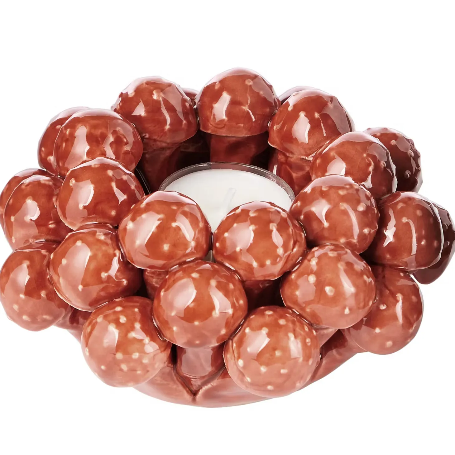Wie frisch aus der Erde gesprossen wirken die vielen kleinen Pilze beim Enchanted Forest Teelichthalter. Dieses kunstvoll gestaltete Deko-Objekt und Tischaccessoire ist in Braun gehalten und aus Dolomit gefertigt. Du nutzt es als Blickfang oder kombinierst es mit Vasen, Windlichtern oder Laternen, z.B. aus der selben Farbfamilie.