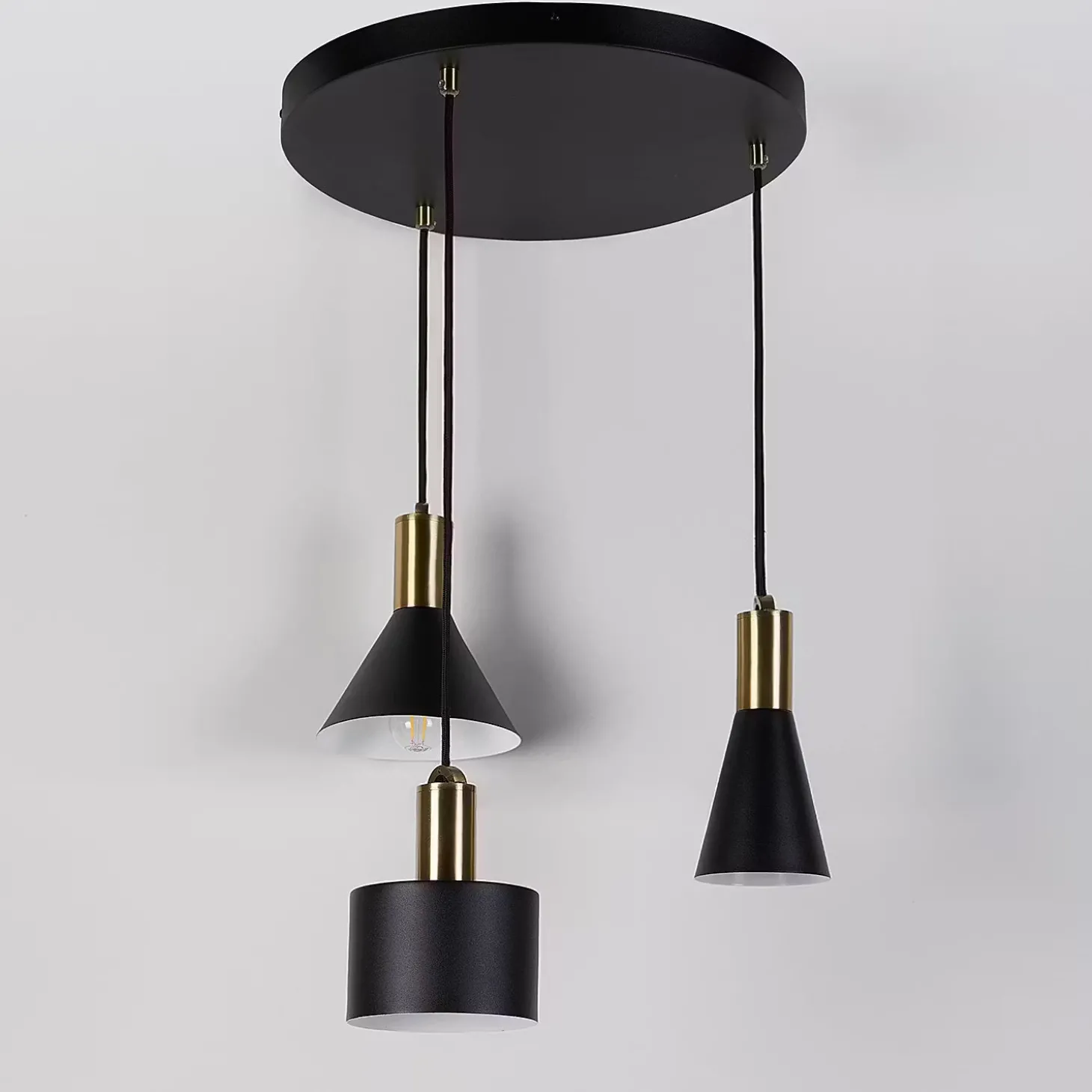 Inspiriert dich dazu, dein Zuhause mit Licht zu gestalten: Mit der höhenverstellbaren Inspyr Hängeleuchte 3-flammig kannst du deinen Wohnbereich modern aufwerten. Die Hängelampe kombiniert dabei drei unterschiedliche Leuchtenelemente und setzt für einen coolen Look auf reduziertes Design, schwarzes Metall mit matter Oberfläche und Textilkabel. Für den rundum stimmigen Look sind außerdem Inspyr Wandleuchten, Tischleuchten, Stehleuchten und Pendelleuchten erhältlich.