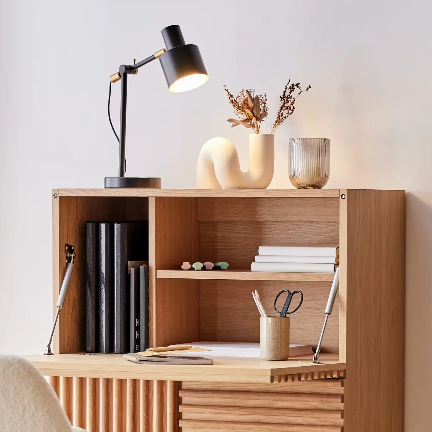Moderne Formensprache mit klaren Linien: Die verstellbare Isak Schreibtischleuchte ist eines der schönsten Beispiele, wie skandinavisches Design einen aufgeräumten Look mit Funktionalität verbindet. Das macht die Schreibtischlampe aus Metall zu einem Highlight in deinem Zuhause, z.B. im Homeoffice oder auch auf dem Nachttisch. Für deine stimmige Einrichtung und deine individuellen Räumlichkeiten umfasst die Isak Leuchtenserie Tisch-, Steh-, Wand- sowie drei- und vierflammige Pendelleuchten in Schwarz und in Creme – ideal zum Kombinieren.