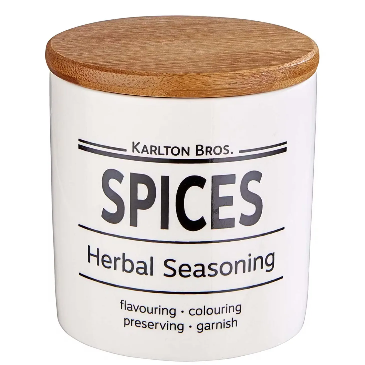 Die Karlton Bros. Vorratsdose Spices im skandinavischen Landhausstil ist Ihr treuer Begleiter beim Kochen und Abschmecken. Die Vorratsdose mit Bambusdeckel und Silikonrand ermöglicht eine trockene Lagerung Ihrer Gewürze und Kräuter, sodass die feinen Aromen besonders lange erhalten bleiben. Das Aufbewahrungsdöschen mit edlen Gewürzen immer griffbereit, können Sie Ihre Gerichte abschmecken, verfeinern und garnieren und anschließend Ihre Gewürzen stilvoll in der Küche oder im Vorratsschrank lagern. Passend zur Gewürzdose aus Porzellan bietet die Karlton Bros. Serie auch viele weiter Aufbewahrungsartikel im reinen Stil Skandinaviens.