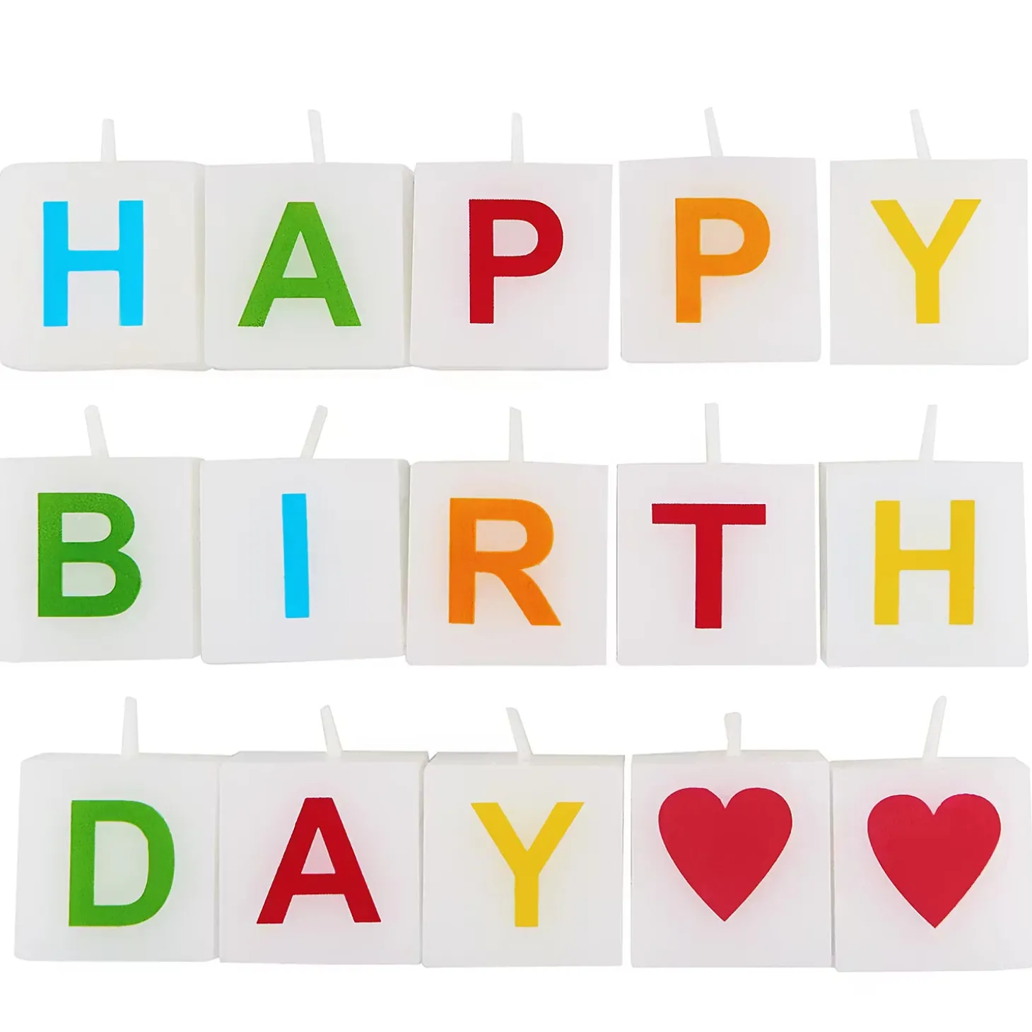 Für einen leuchtenden Start ins neue Lebensjahr steht die Love Letters Kerze Happy Birthday. Fünfzehn weiße Kerzen in Würfelform ergeben gemeinsam den Schriftzug „Happy Birthday“, die auf einer Seite je einen bunten Buchstaben oder Herz tragen.
