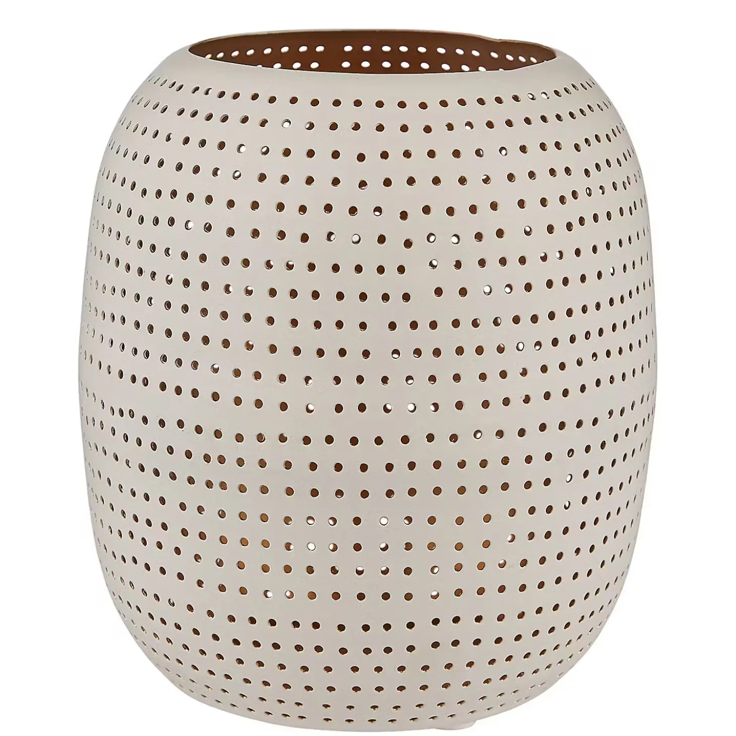 Aus Eisen gefertigt, mit vielen kleinen Öffnungen versehen und in Weiß gehalten: Das Luminous Windlicht in zeitloser Form ist ein echter Allrounder, wenn es ums Dekorieren, Kombinieren und Inszenieren geht. Heute wertest du damit deinen Frühstückstisch auf, morgen unterstreichst du mit dem Windlicht die gemütliche Stimmung in deinem Wohnzimmer und übermorgen schaffst du einem behaglichen Lichtakzent auf deinem Balkon – und das alles mit ein und demselben Windlicht.