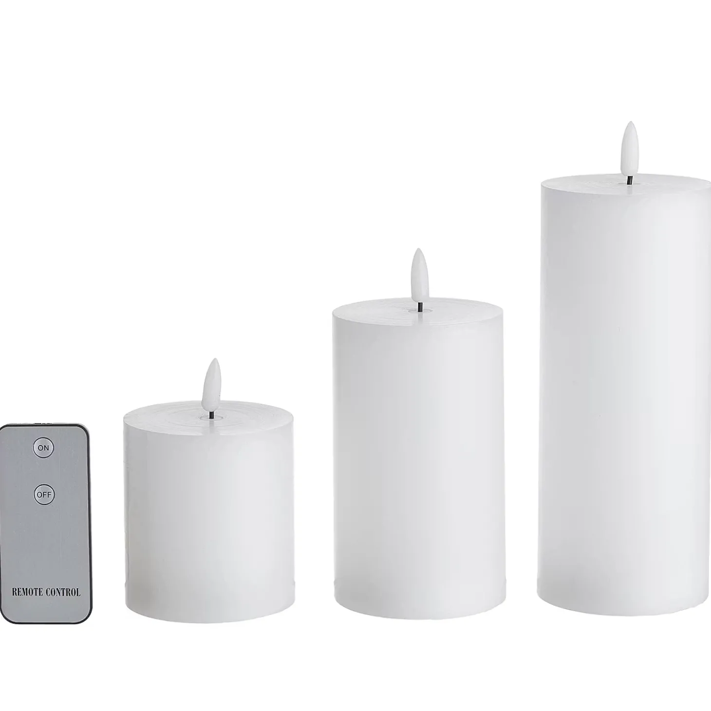 Auf brennende Kerzen sollte man immer ein wachsames Auge haben. Entspannter geht`s mit dekorativen Nordic Light LED-Kerzen (3er Set, unterschiedliche Größen): Ohne offene Flamme flackern sie dauerhaft schön – auch bei Zugluft und dort, wo Sie keine echten Kerzen anzünden können. Einfach die batteriebetriebenen LED Kerzen mit der Fernbedienung einschalten – und schon genießen Sie den stimmungsvollen Kerzenschein-Effekt.