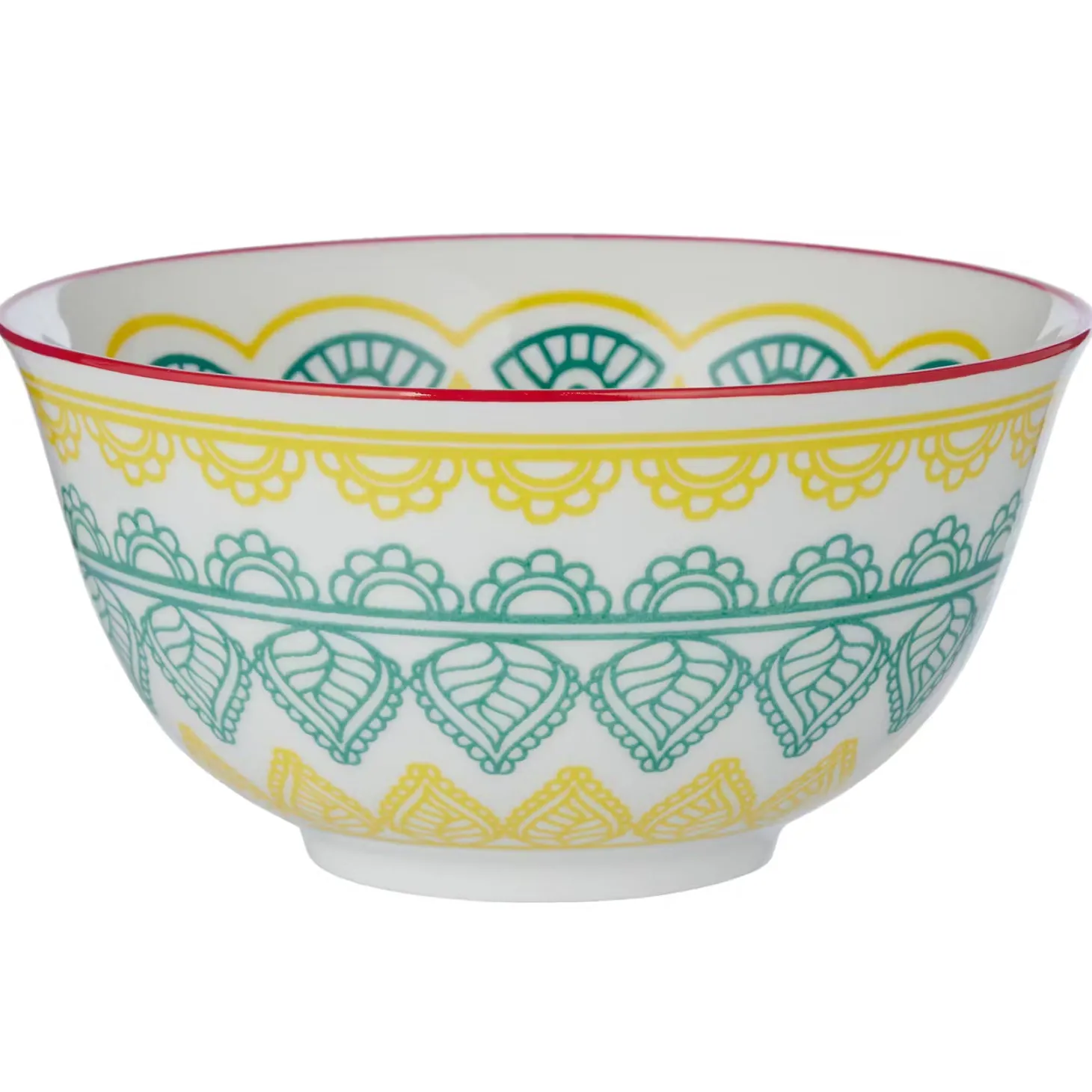 Schale mit Stil: Das bunte Ornaments-Geschirr im 6er-Set passt in jede moderne Küche und ist ein stylischer Blickfang auf Ihrem Esstisch. In dieser Porzellanschale können Sie Ihren Gästen leckere Kleinigkeiten servieren. Vielseitig einsetzbar: Als Müslischale, als Suppenschale, für Süßigkeiten, Chips und andere Snacks. In verschiedenen Varianten und Größen erhältlich.