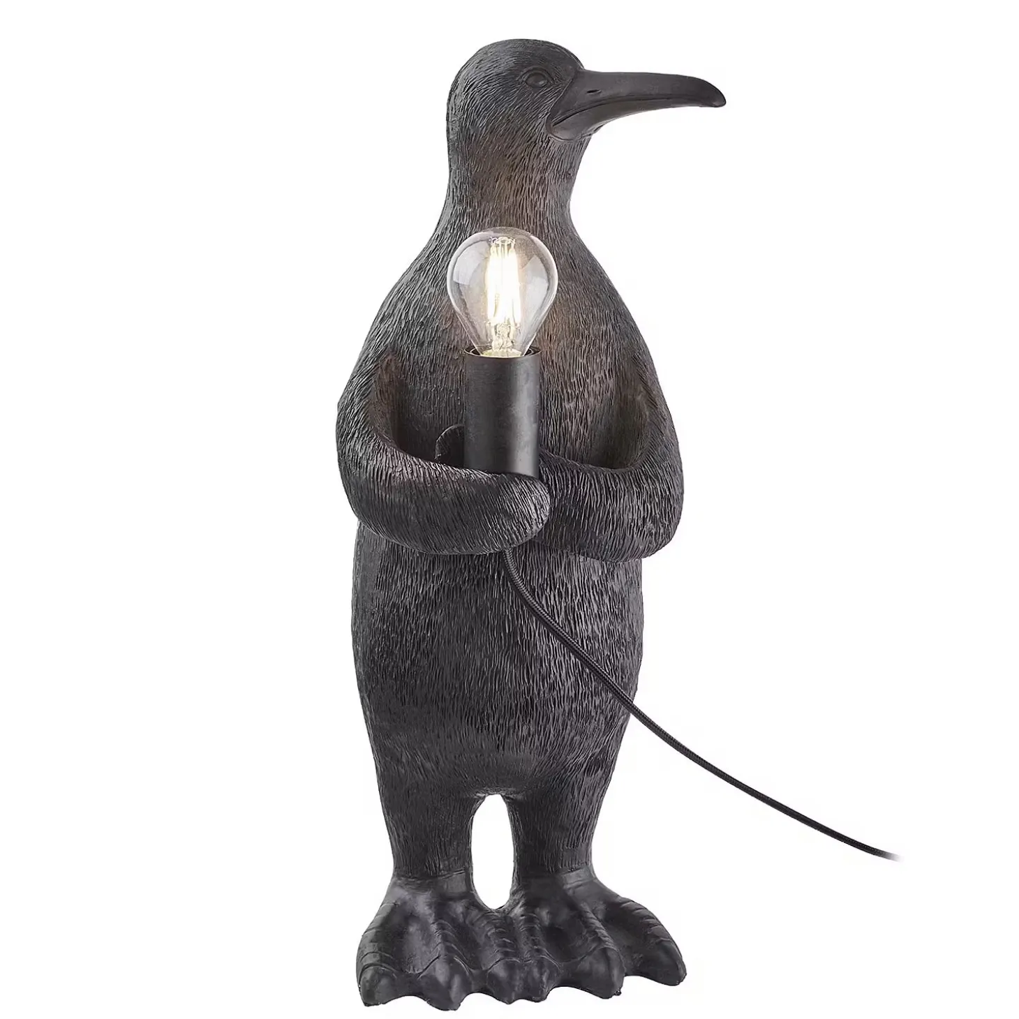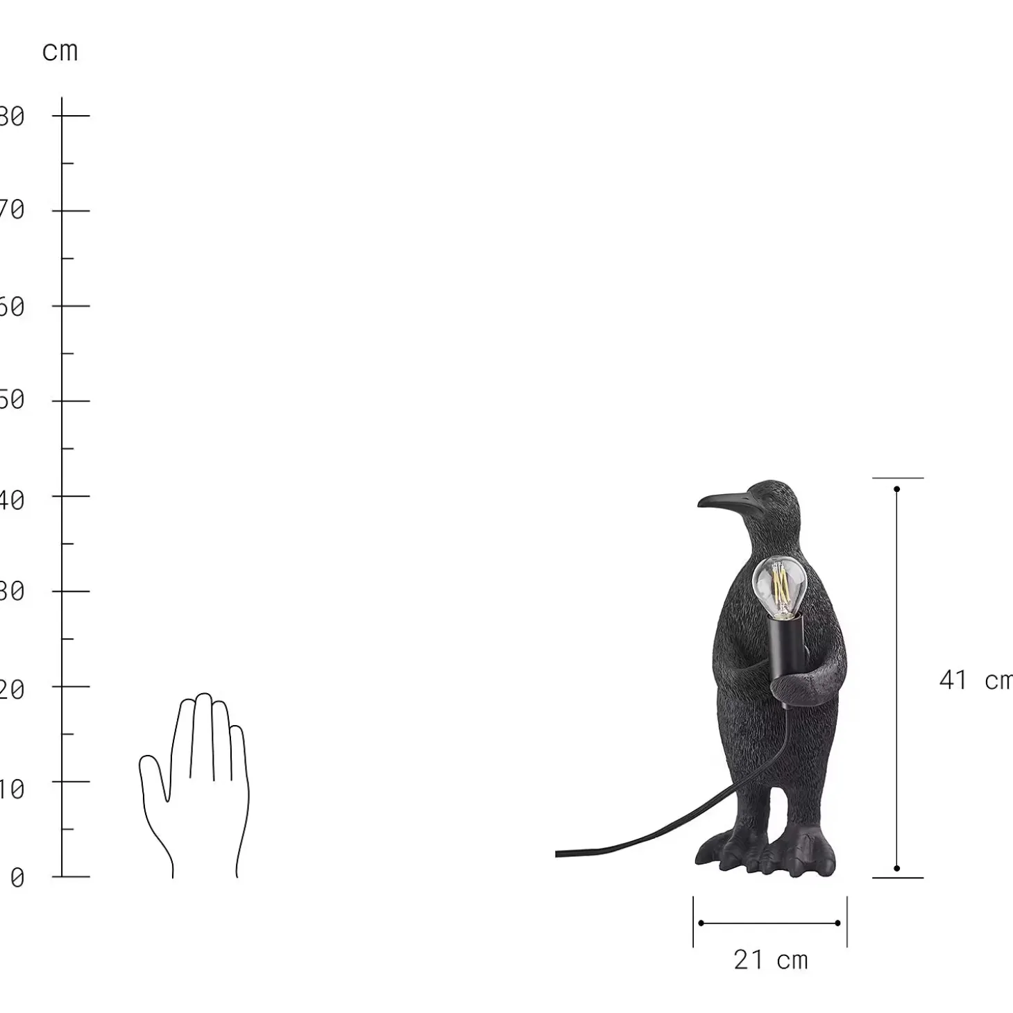 Einfach cool: Die Rinaldo Tischleuchte Pinguin in mattem Schwarz präsentiert sich mit lässigem Selbstbewusstsein. Am besten kommt diese außergewöhnliche Leuchte dort zu Geltung, wo sie sofort ins Auge fällt und wirken kann, etwa auf einer Kommode oder einem Beistelltisch im Wohnzimmer. Oder Sie nutzen diesen Hingucker, um Ihren Flur oder Ihr Home Office modern zu stylen. In zwei Größen erhältlich.