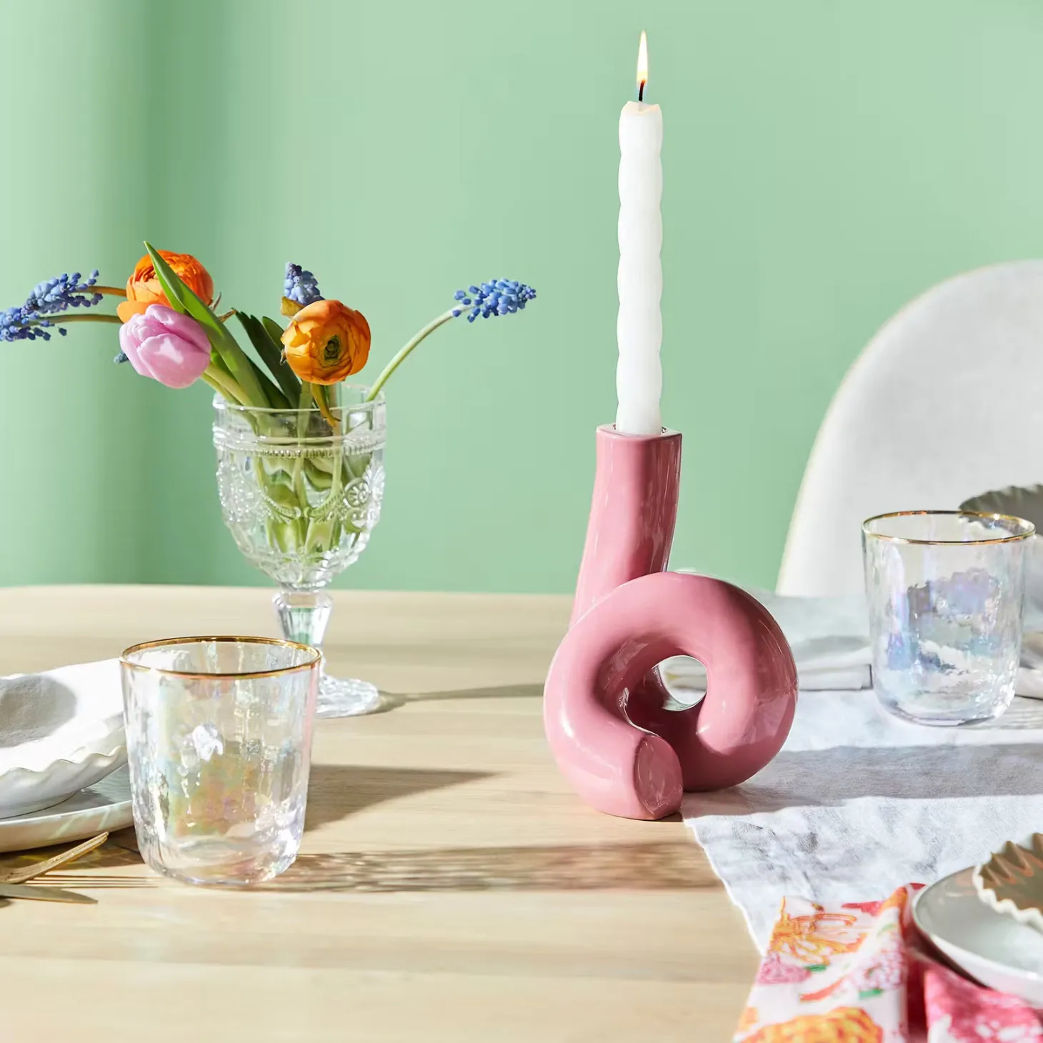 Der Rotate Kerzenhalter aus Steingut hat den Dreh raus: Seine geschlungene Form ist ganz auf einer Linie mit der modernen Formensprache von Vasen und anderen Wohnaccessoires.