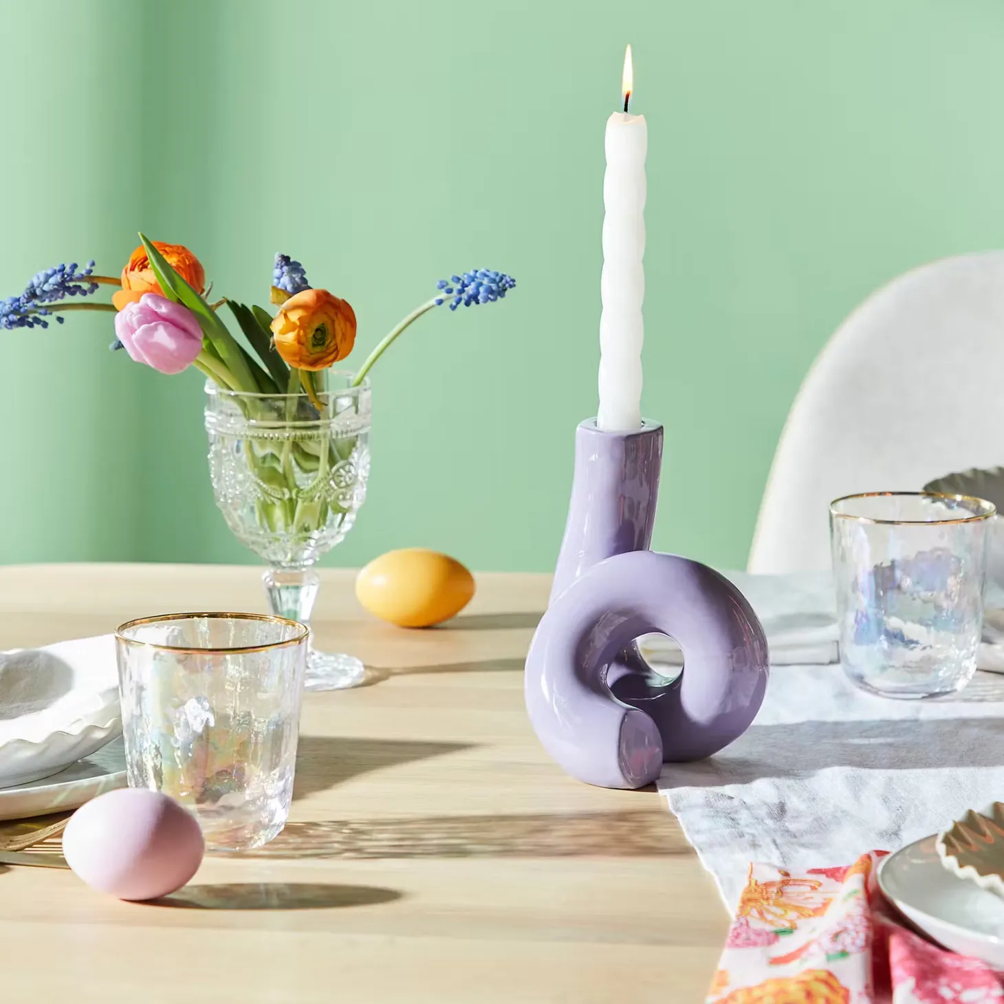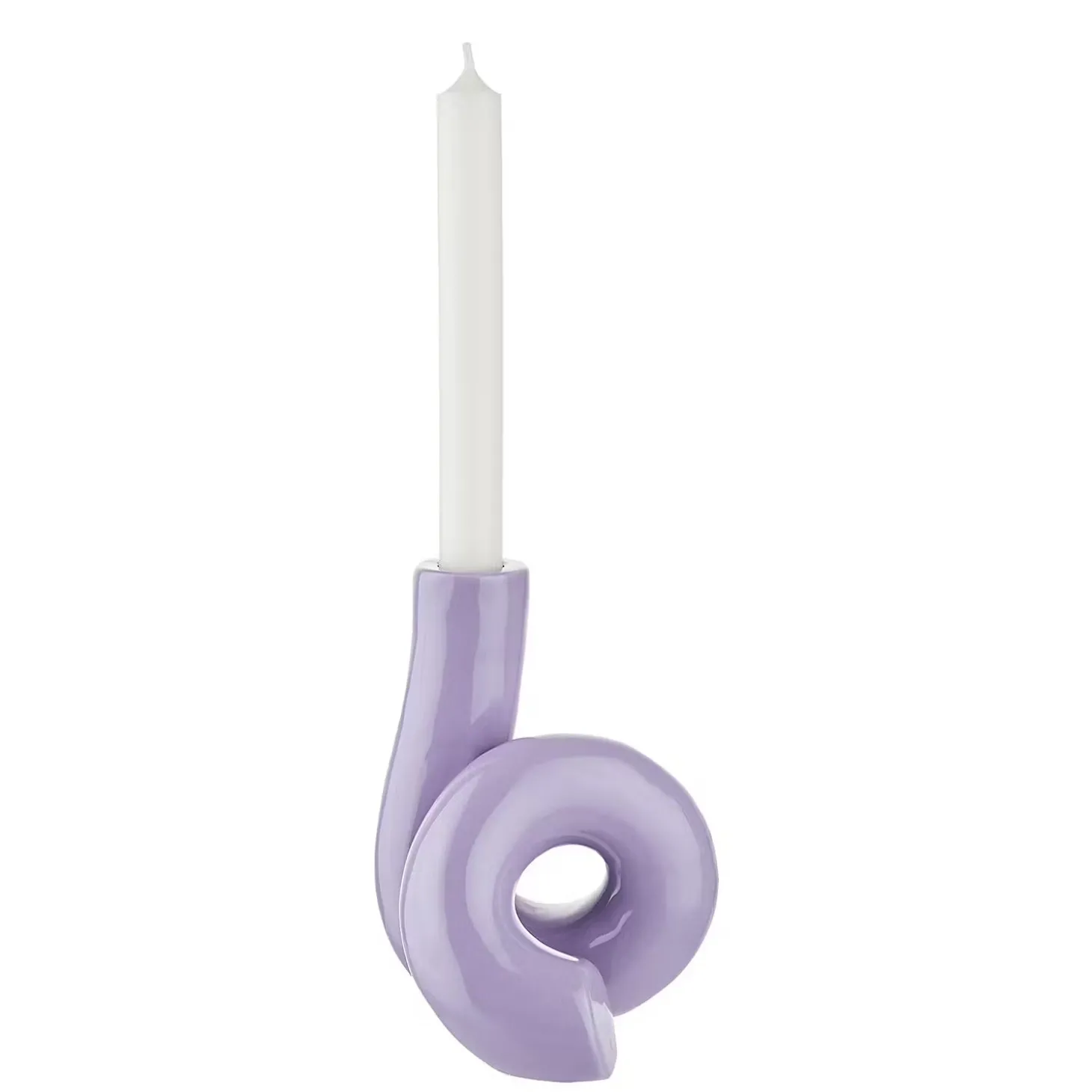 Der Rotate Kerzenhalter aus Steingut hat den Dreh raus: Seine geschlungene Form ist ganz auf einer Linie mit der modernen Formensprache von Vasen und anderen Wohnaccessoires. In Blau und in Lila erhältlich.