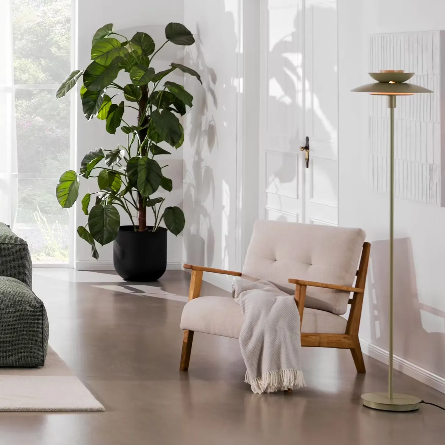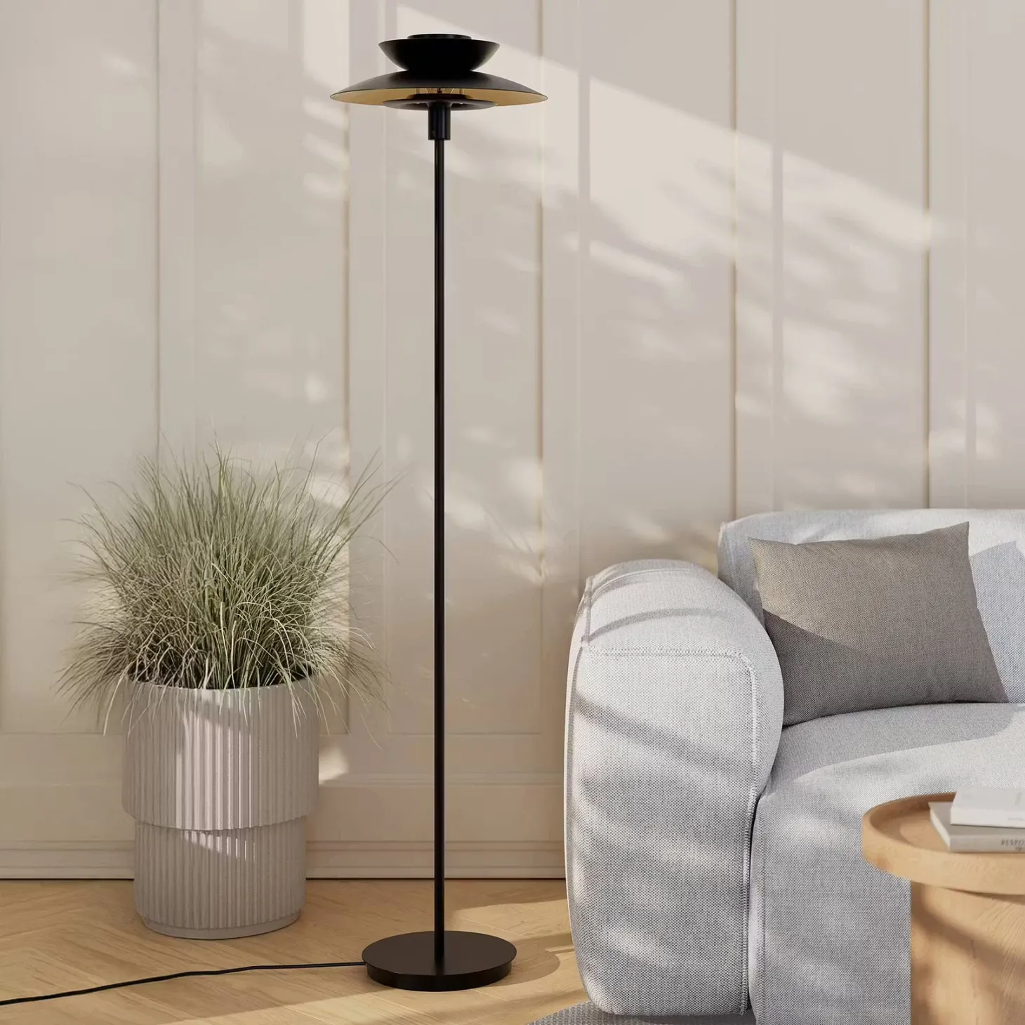 Asiatisch angehaucht, dabei puristisch und modern: So lässt sich das angesagte Design der Singapur Stehleuchte aus Metall zusammenfassen. Die Liebe zum Detail erkennst du bei dieser Stehlampe außerdem an den goldenen Akzenten und am Textilkabel – raffinierte Extras, die den Look abrunden. So setzt du mit der Singapur Stehleuchte einen selbstbewussten Akzent z.B. in deinem Wohnbereich oder Flur. Für die verschiedenen Bereiche in deinem Zuhause umfasst die Singapur Serie Hängeleuchten, 3-flammige Pendelleuchten, Tischleuchten und Stehleuchten in Salbei und Schwarz, teilweise auch in Beige – ideal zum Kombinieren.