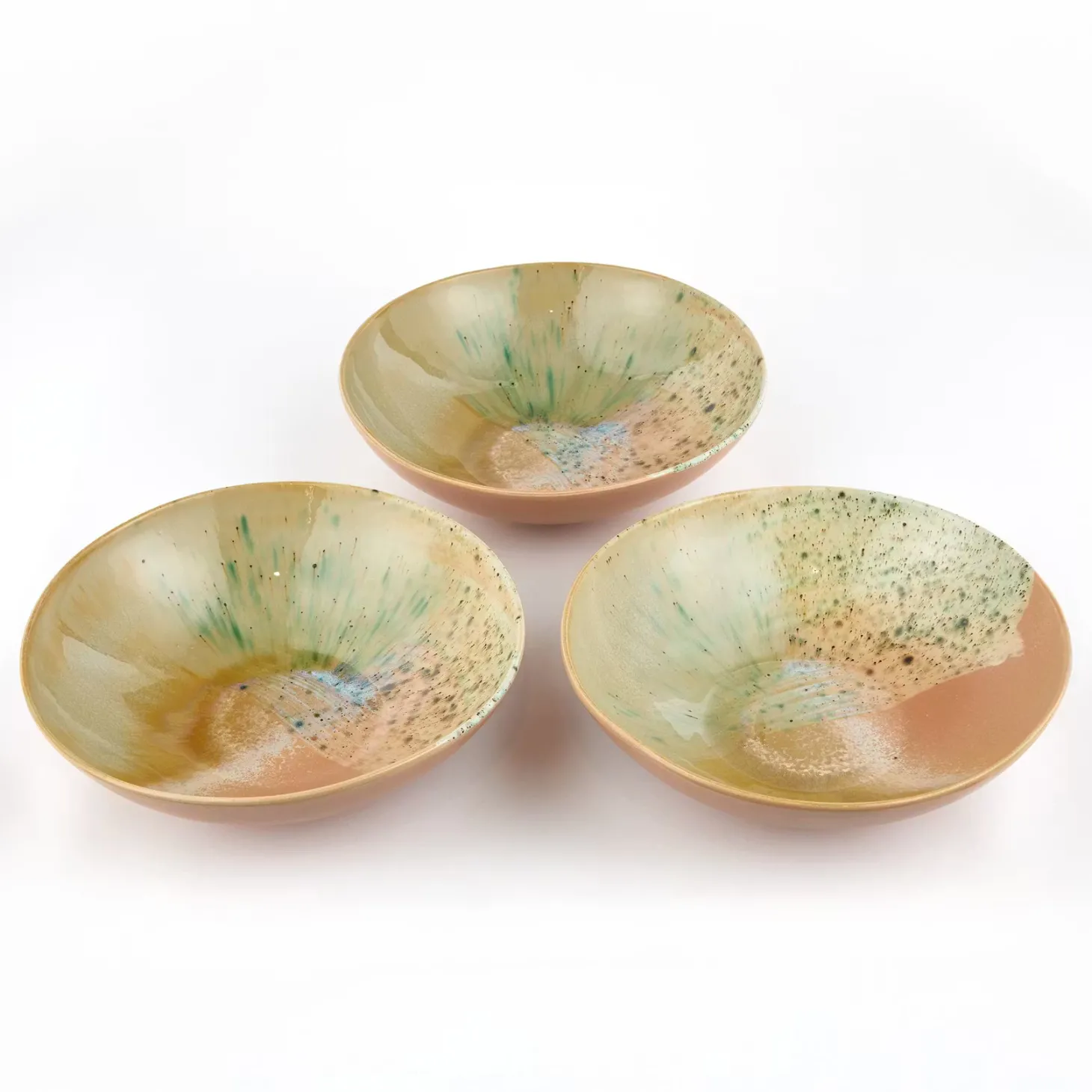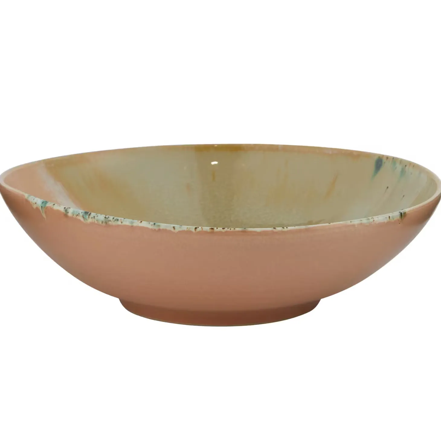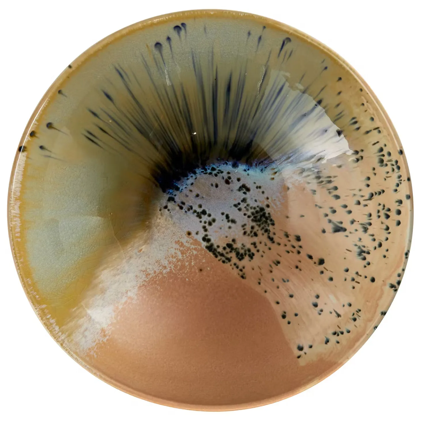 Ein einzigartiges Statement-Piece für deinen gedeckten Tisch: Die Sintra Salatschale 32 cm Durchmesser zieht mit ihren dynamischen Farbverläufen und abstrakten Mustern alle Blicke auf sich. Hinter dieser beeindruckenden Optik verbergen sich natürlich Glasuren mit individuellem Charakter, veredelt durch eine transparente Krakelé Glasur. Erdverbunden und authentisch entsteht so eine besondere Form von Luxus. Der Steinzeug-Teller ist übrigens spülmaschinengeeignet und mikrowellengeeignet, und für den perfekt gedeckten Tisch gibt es aus der Sintra Geschirrserie weitere Teller, Salatschalen und Servierschalen in verschiedenen Farbvarianten.
