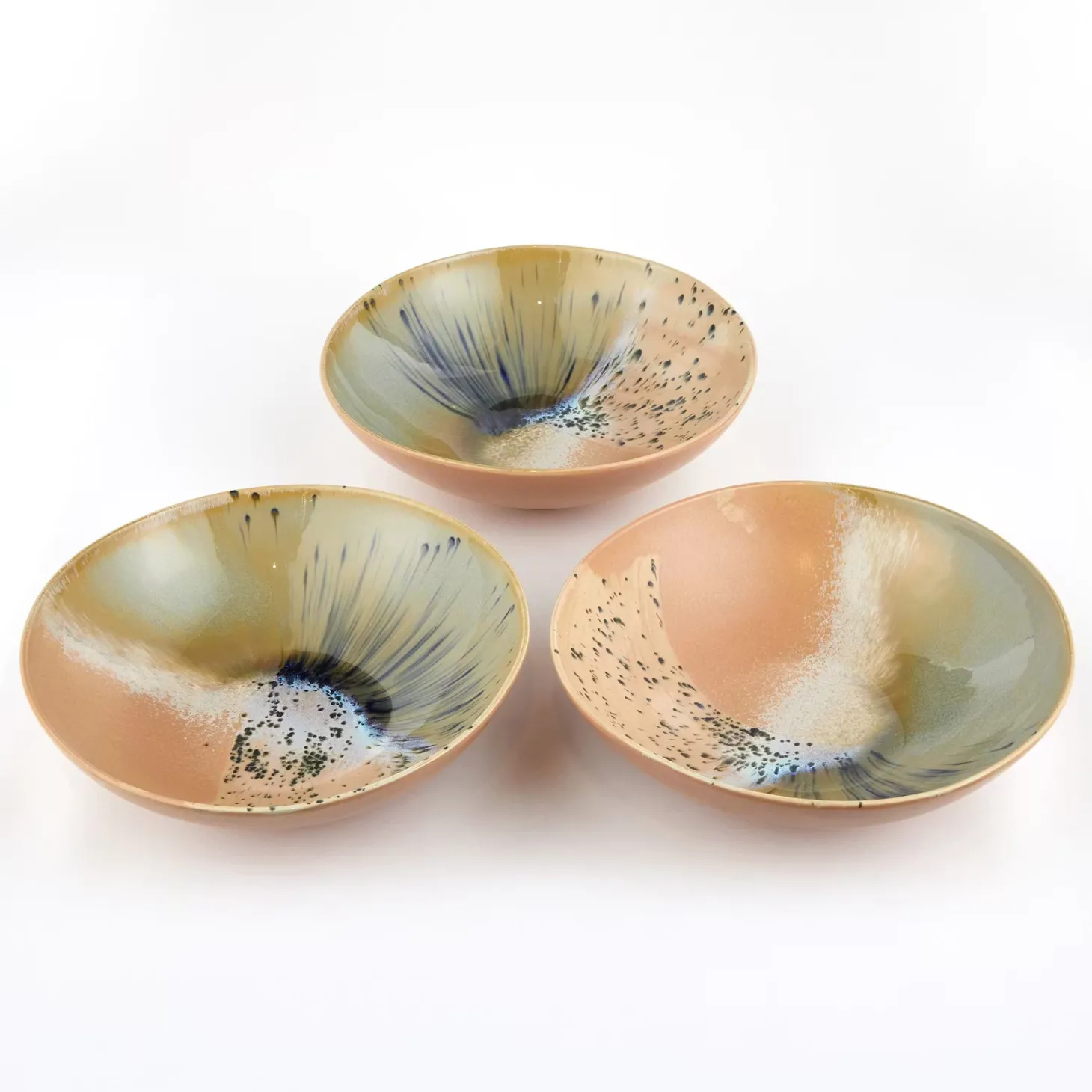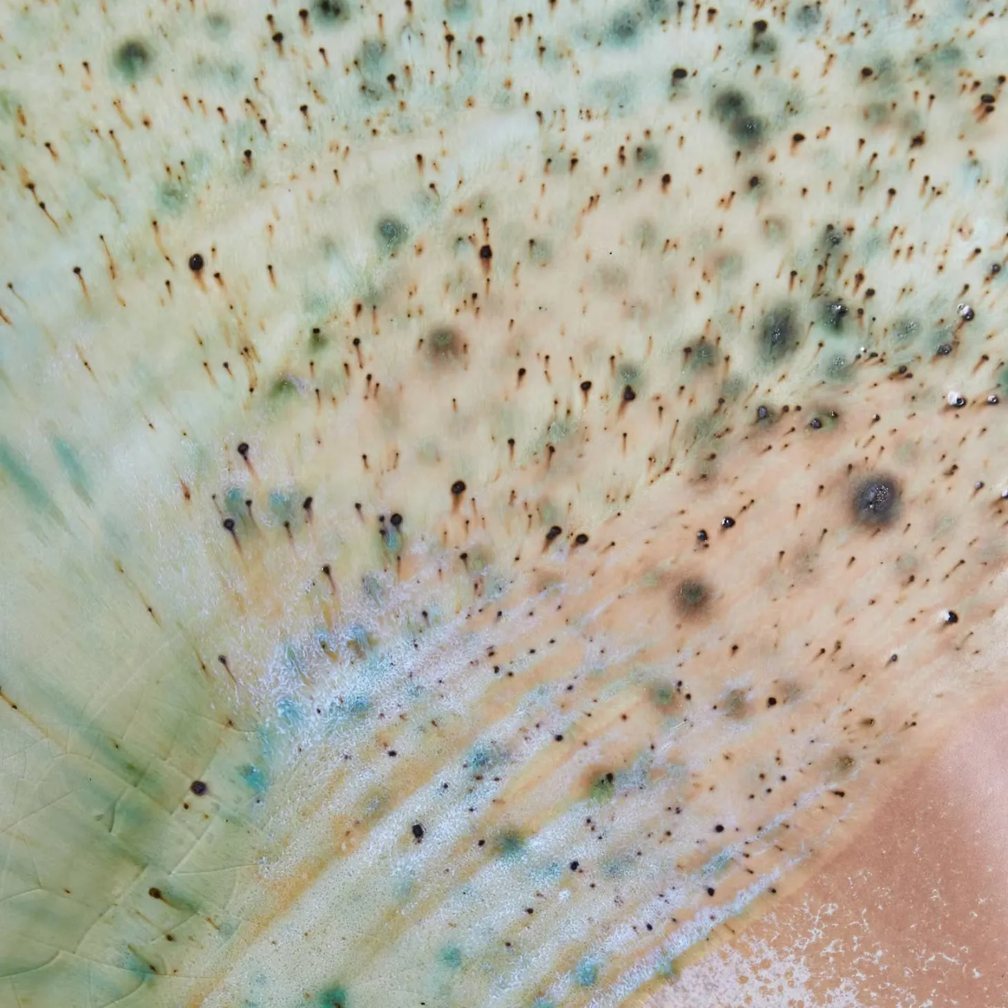 - Material: Steinzeug, reaktive Krakelé Glasur