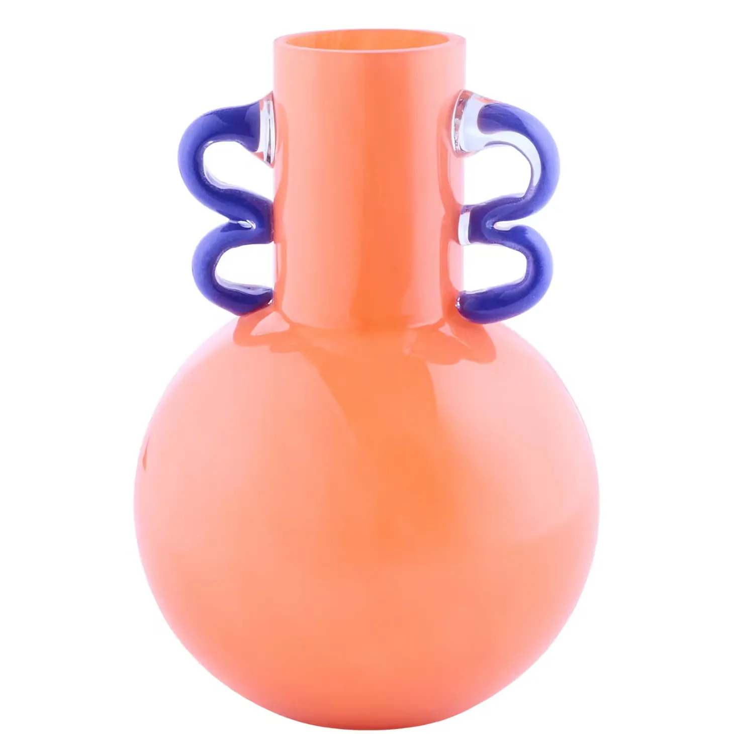 Poppig mit farbigen Henkeln kommt die Sling Glas Vase in Orange und Blau daher. Die hübsche Glasvase bringt Farbe in dein Zuhause und steht für deine zu Liebe zu erfrischenden Wohnaccessoires.