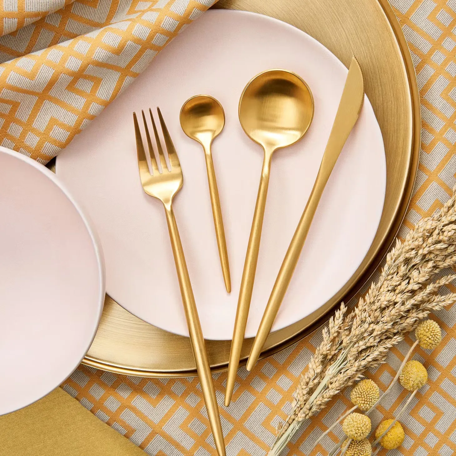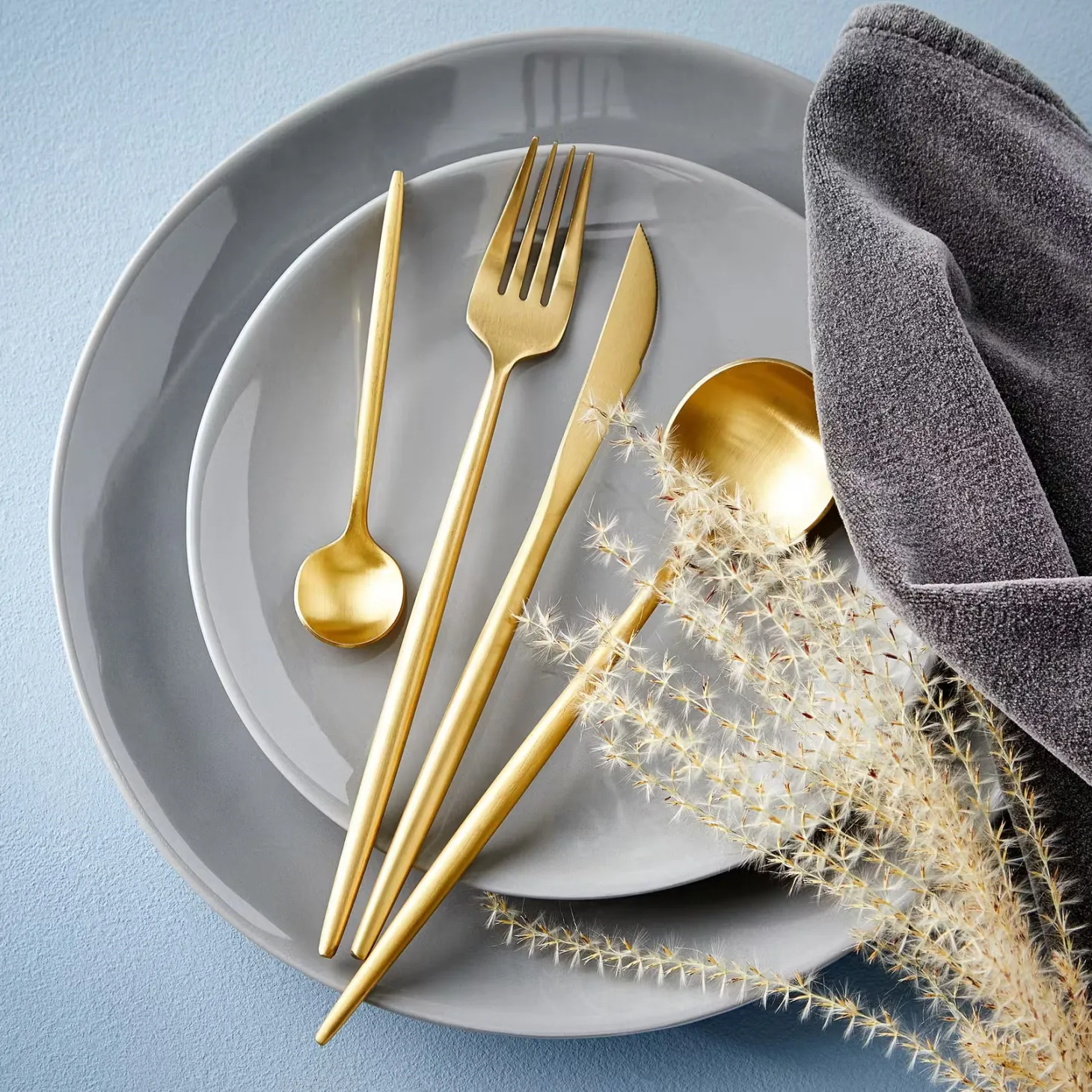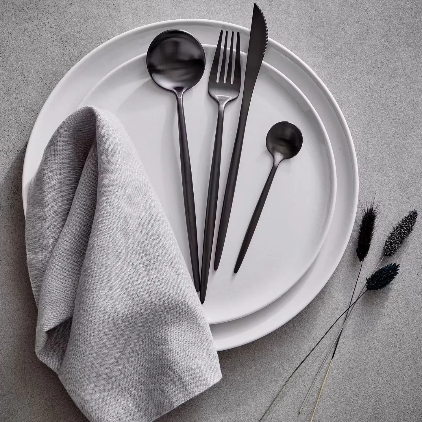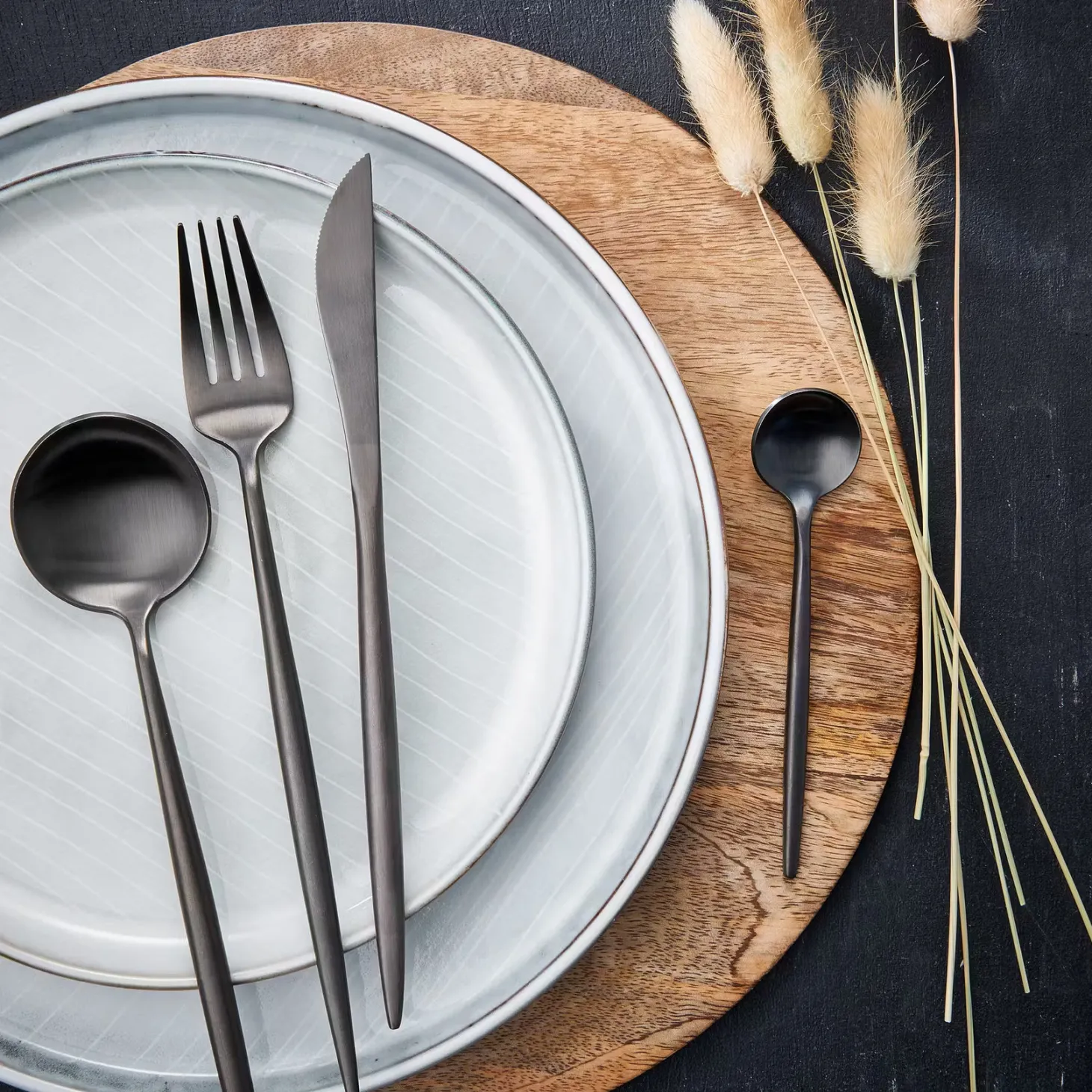Für einen Wow-Effekt auf dem gedeckten Tisch sorgt das Stiletto Besteck aus Edelstahl. Sein puristisches Design mit spitz zulaufenden Griffen passt in seiner Klarheit perfekt zum nordischen Stil. Doch das edle Besteck sieht nicht nur gut aus: Beim Essen liegen Messer, Gabel und Löffel dank leicht runder Form gut und sicher in der Hand. 4-teiliges Set, weitere Varianten erhältlich.