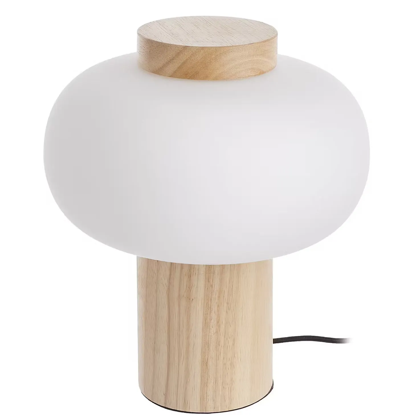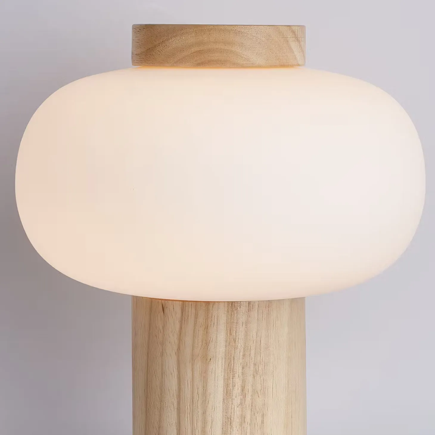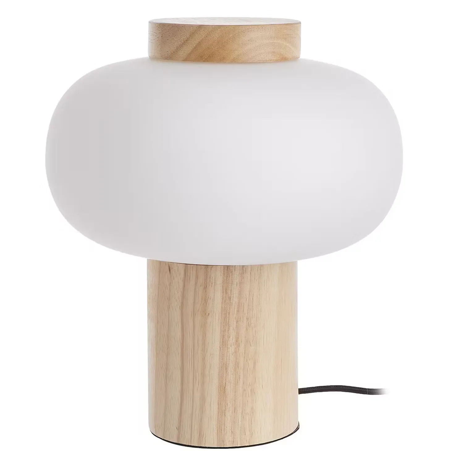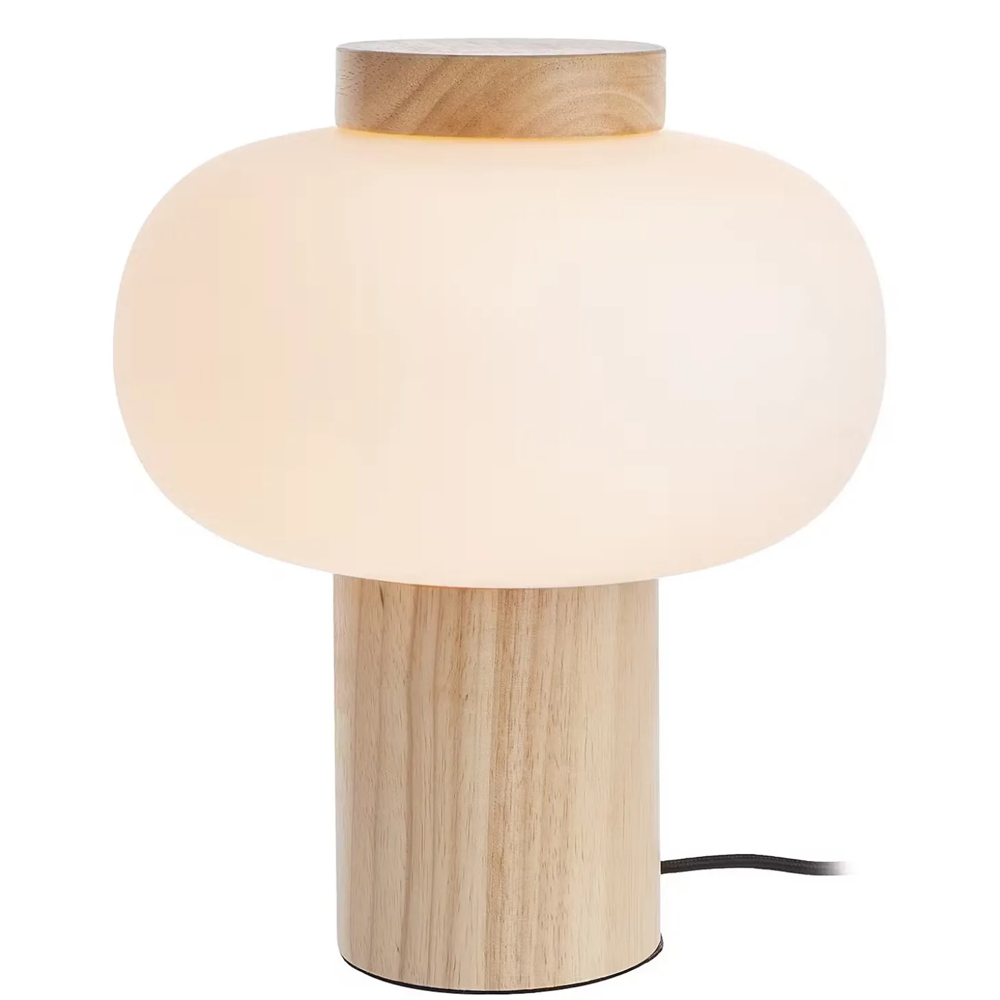 Weißes Glas trifft naturfarbenes Holz bei der modernen Taavi Tischleuchte, die mit Gummibaumholz, also einem nachwachsenden Rohstoff, hergestellt ist. Damit die Schönheit von Glas und Holz wirken kann, besinnt sich das Design auf klare, reduzierte Formen. So entsteht eine Tischlampe, die sich vielseitig kombinieren und nutzen lässt, z.B. im Wohnbereich oder Schlafzimmer.
