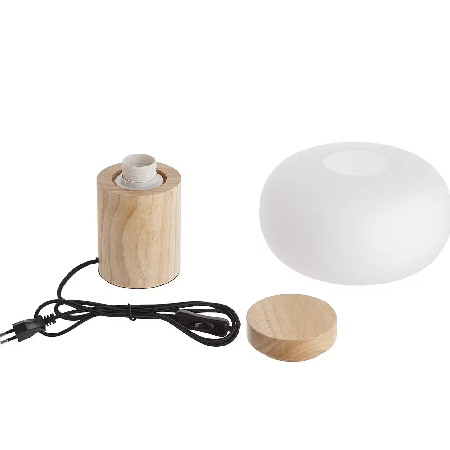 - Material: Gummibaumholz, Milchglas